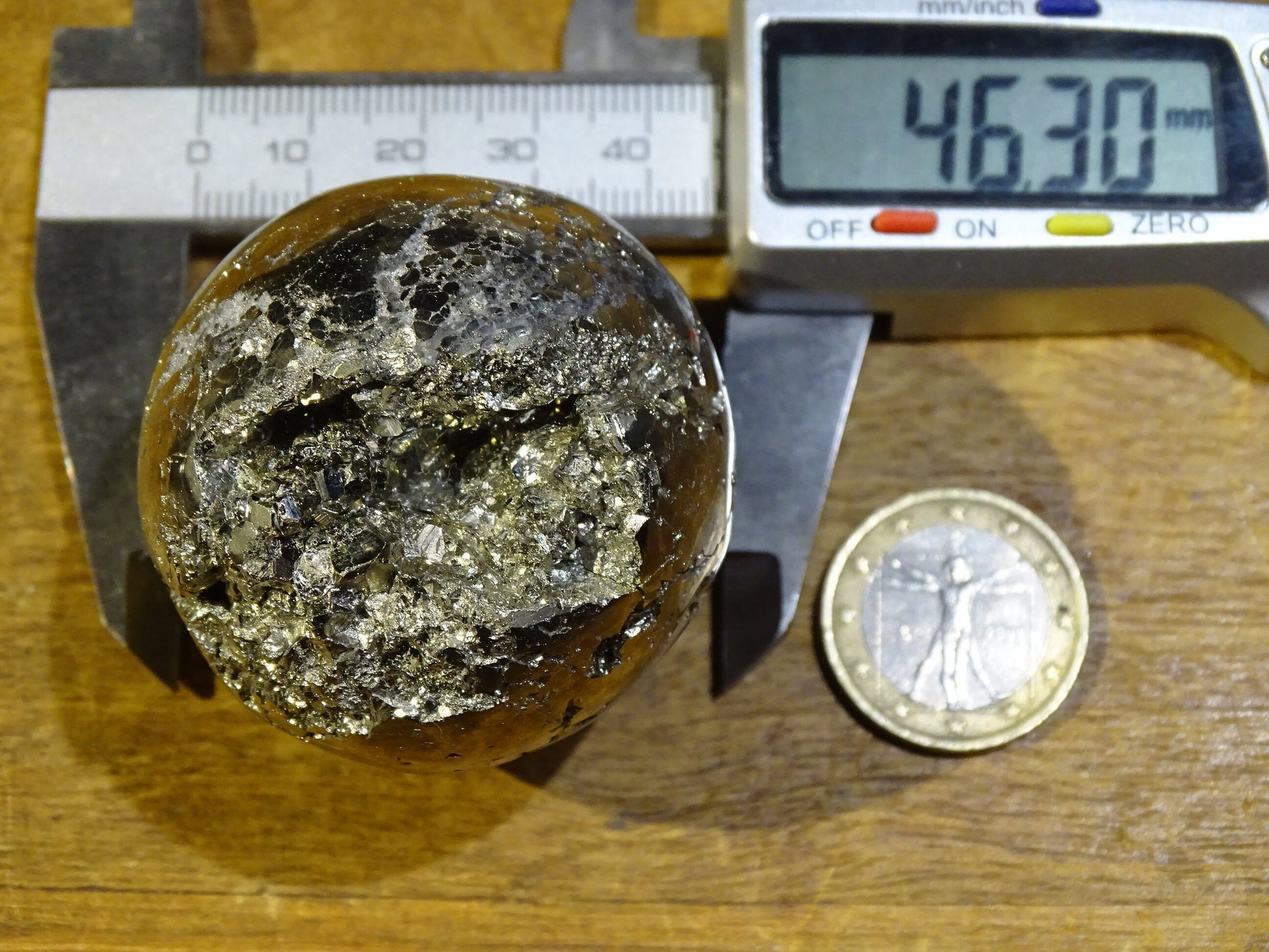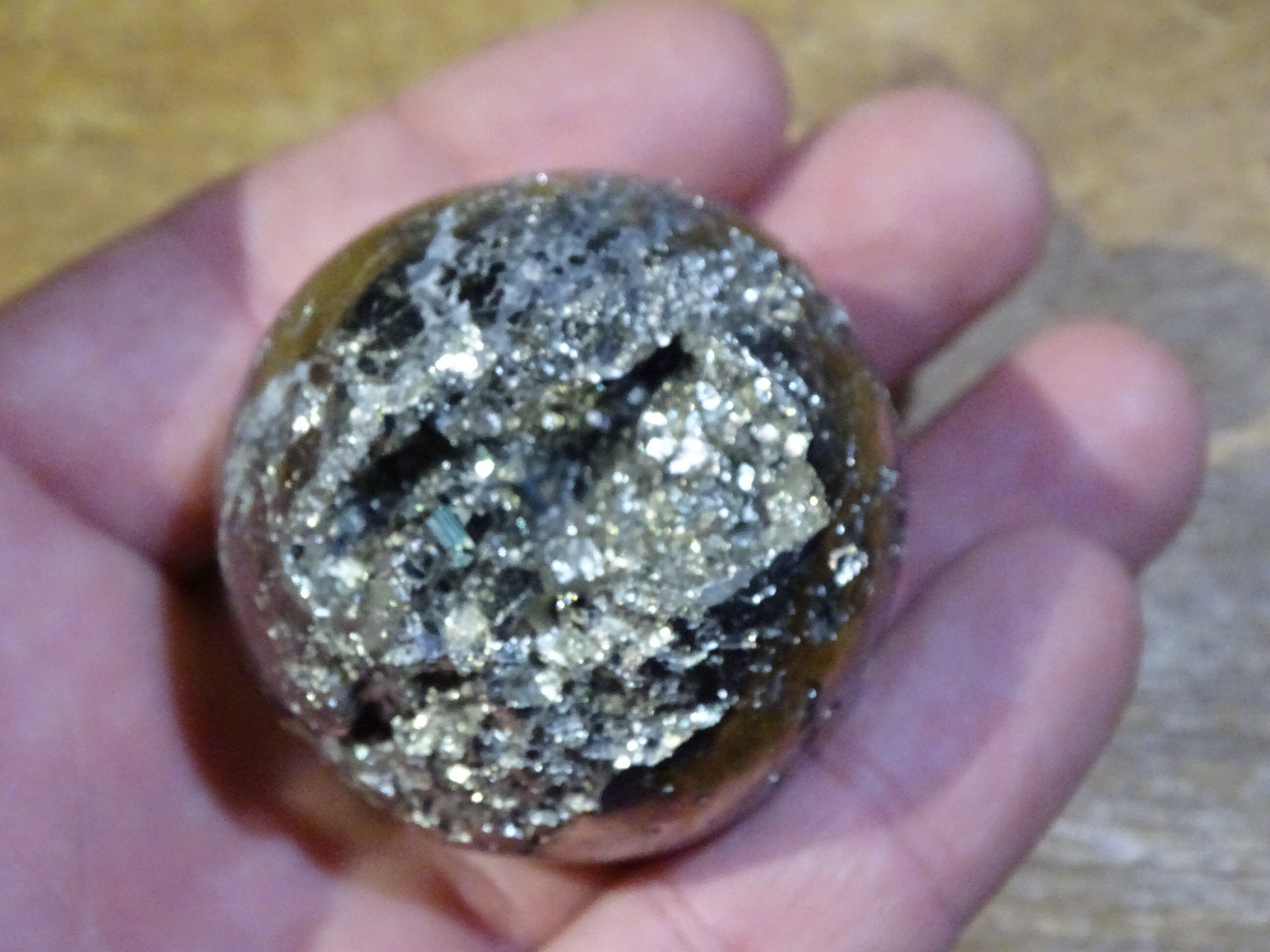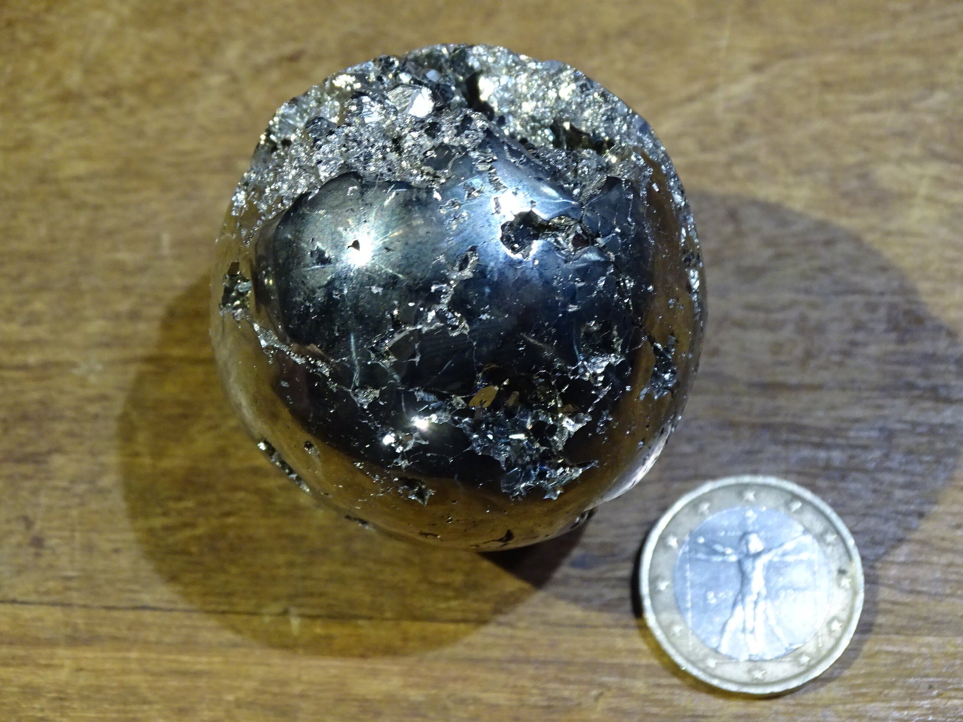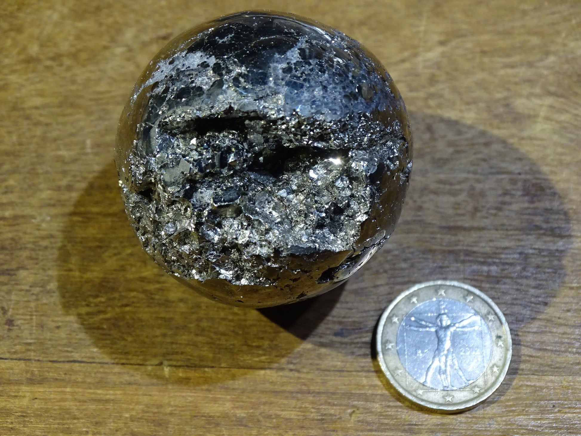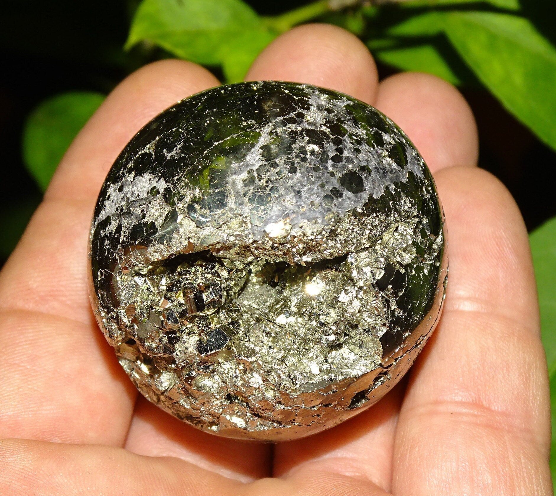 Pyrite cristal du pérou, sphère de 58 millimètres - 280 grammes. une pierre naturellement belle ! Parfait pour la lithothérapie, collection, exposition...!