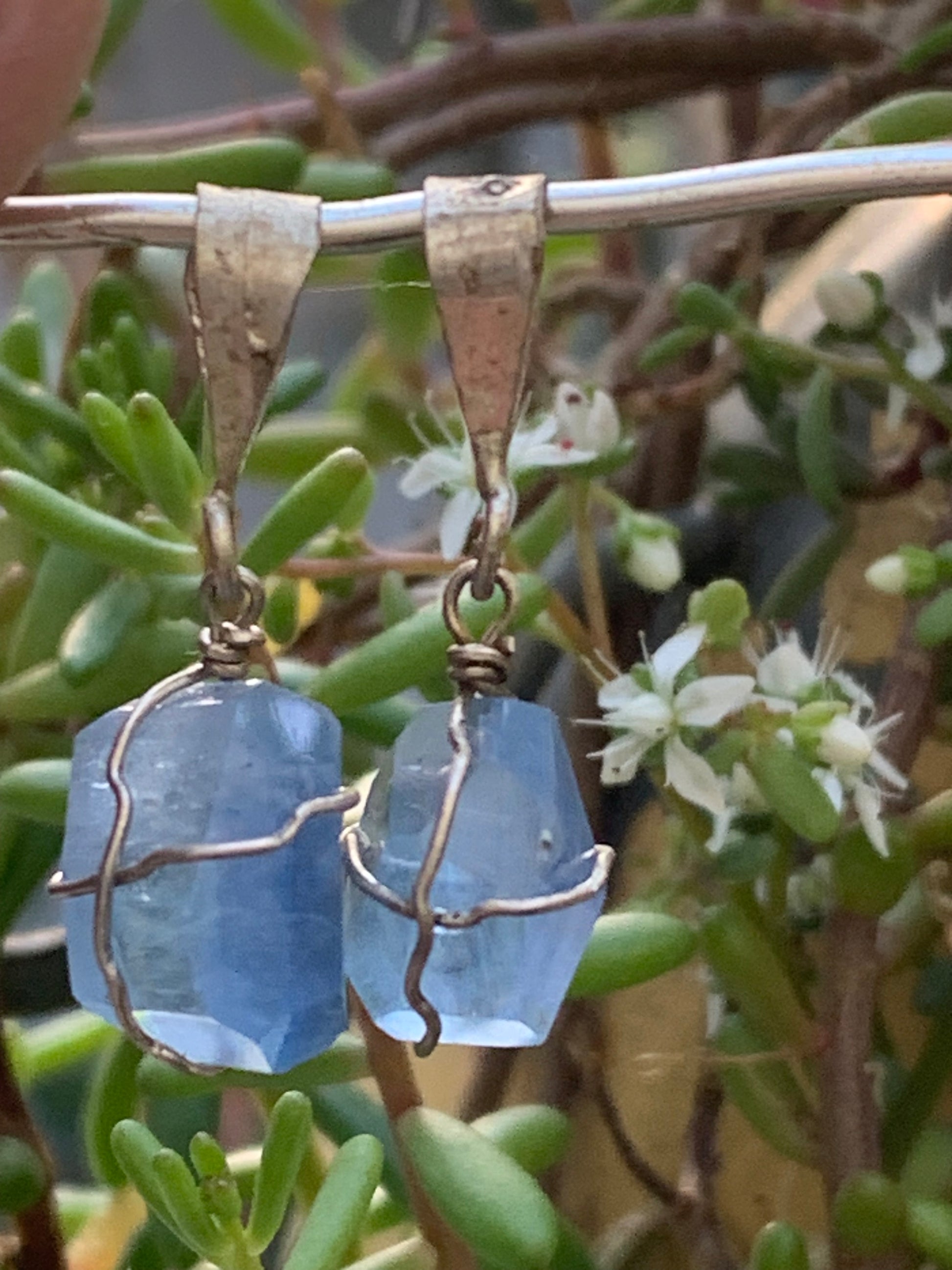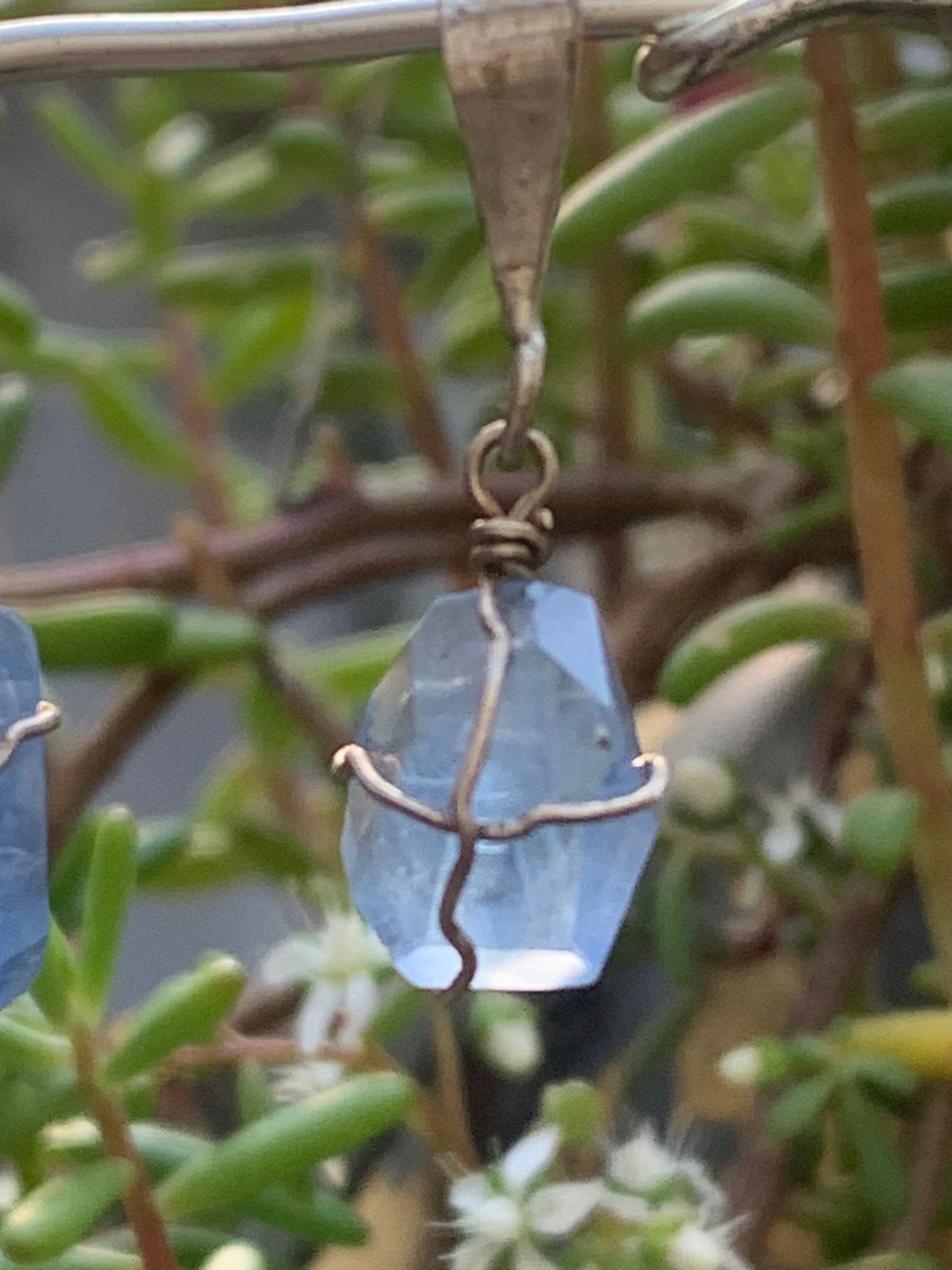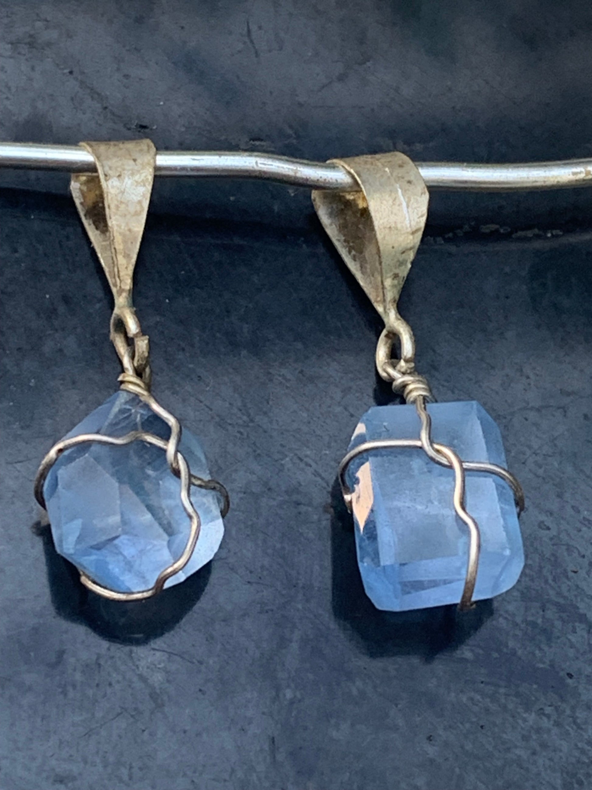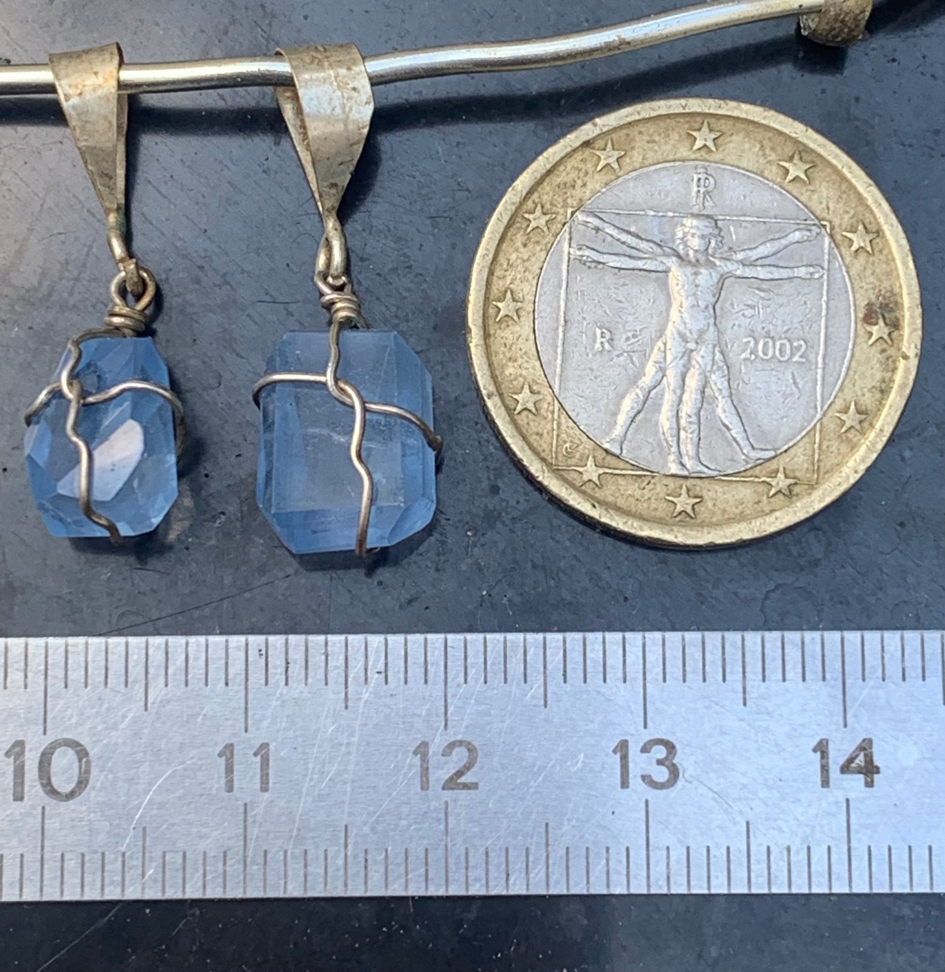 Topaze bleue, 2 pendentifs au choix en Argent, de 26mm de hauteur x 9 de largeur x 9 d'épaisseur. Vendu avec cordon réglable de couleur noire offert !