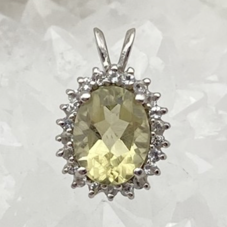 Quartz/ Cristal Lemon | Collection Retro' | Pendentif en Argent serti d'une pierre gemme de forme de ovale, entouré d'Oxyde, 16 x 10 mm !