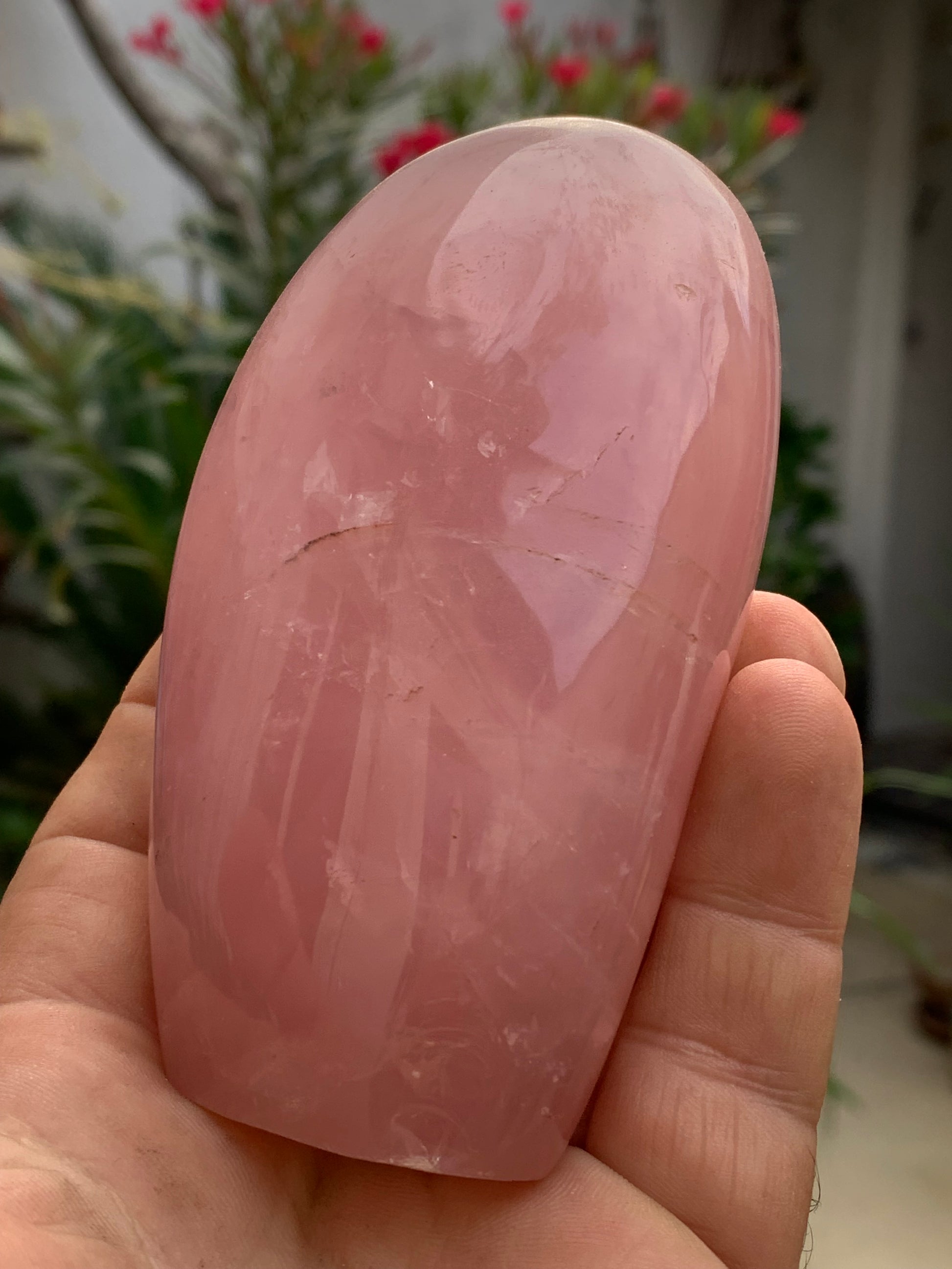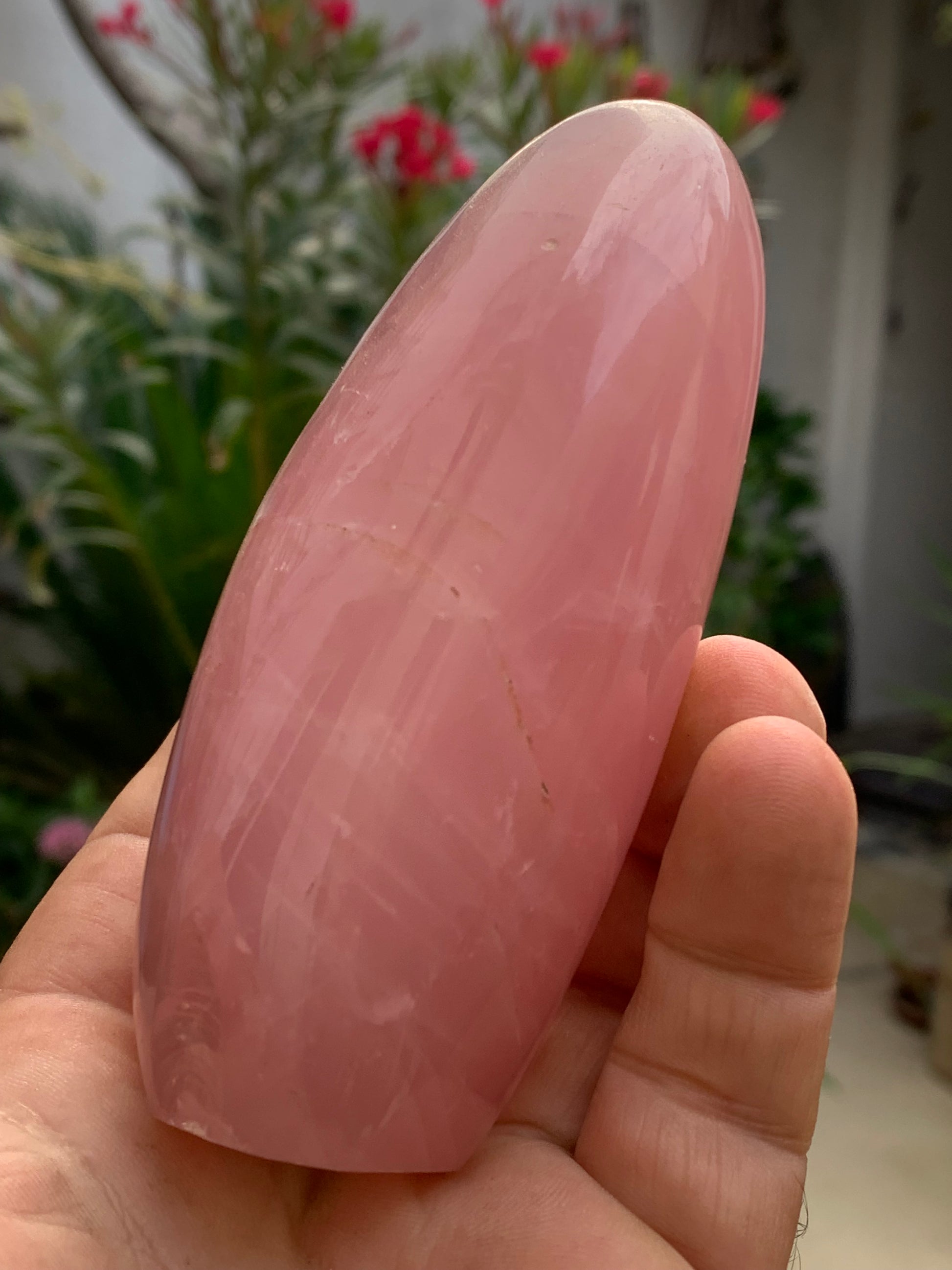 Quartz rose, forme libre de 108 x 62 x 46 millimètres - 447 grammes. Superbe qualité, parfait pour vos collections, expositions...