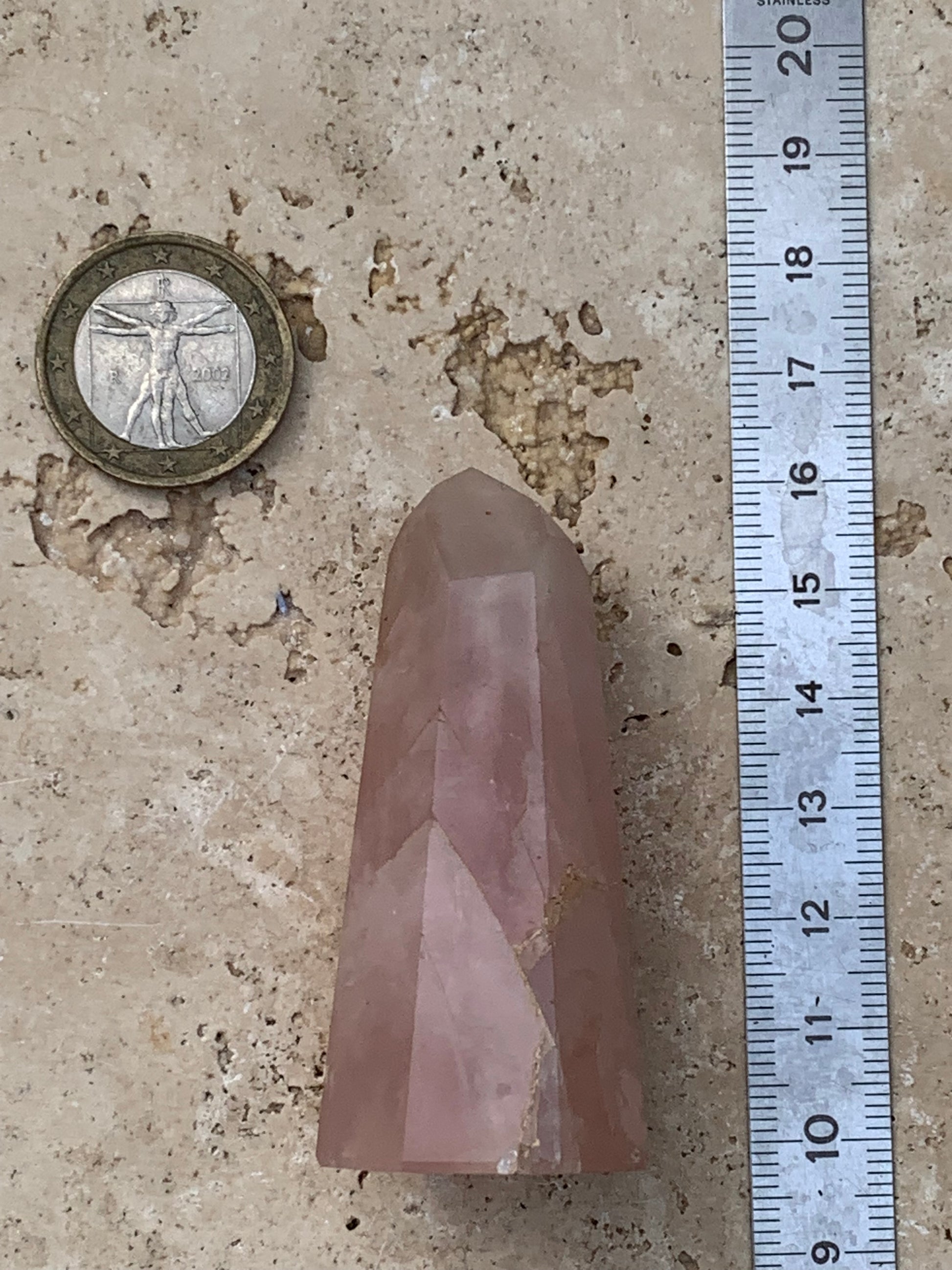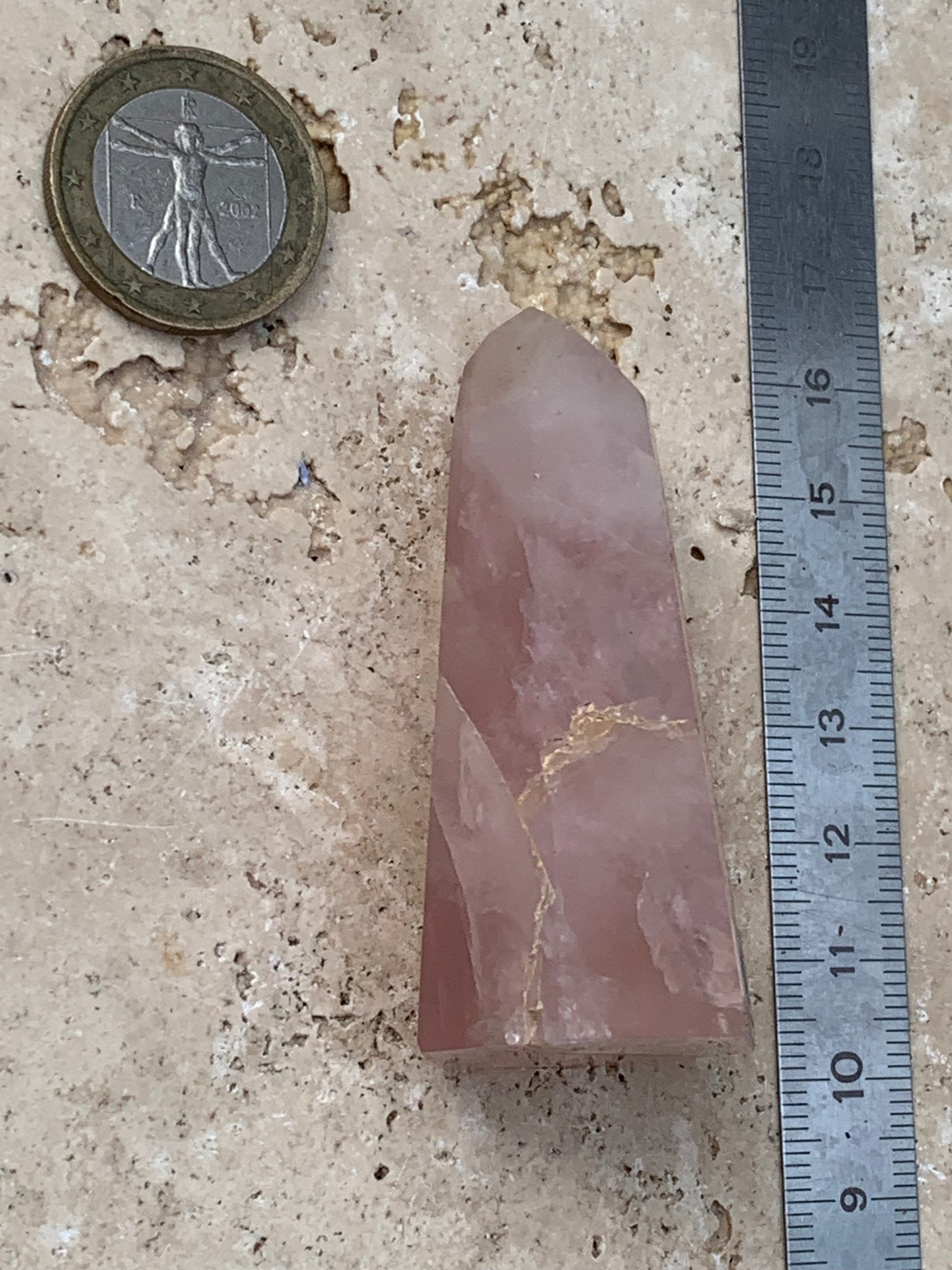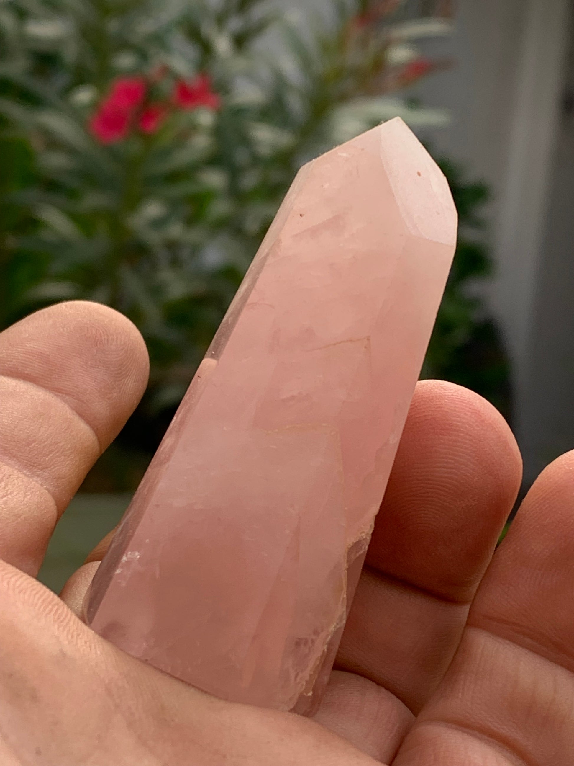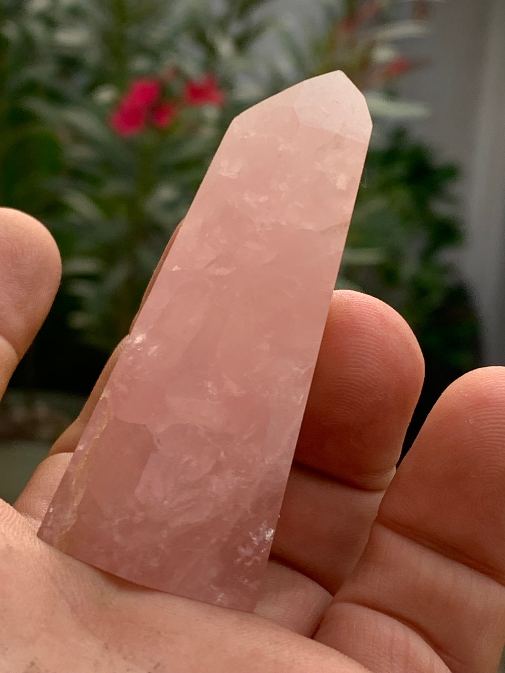 Quartz rose, pointe laser de 62 x 28 x 24 millimètres - 58 grammes. Superbe qualité, parfait pour vos collections, expositions...