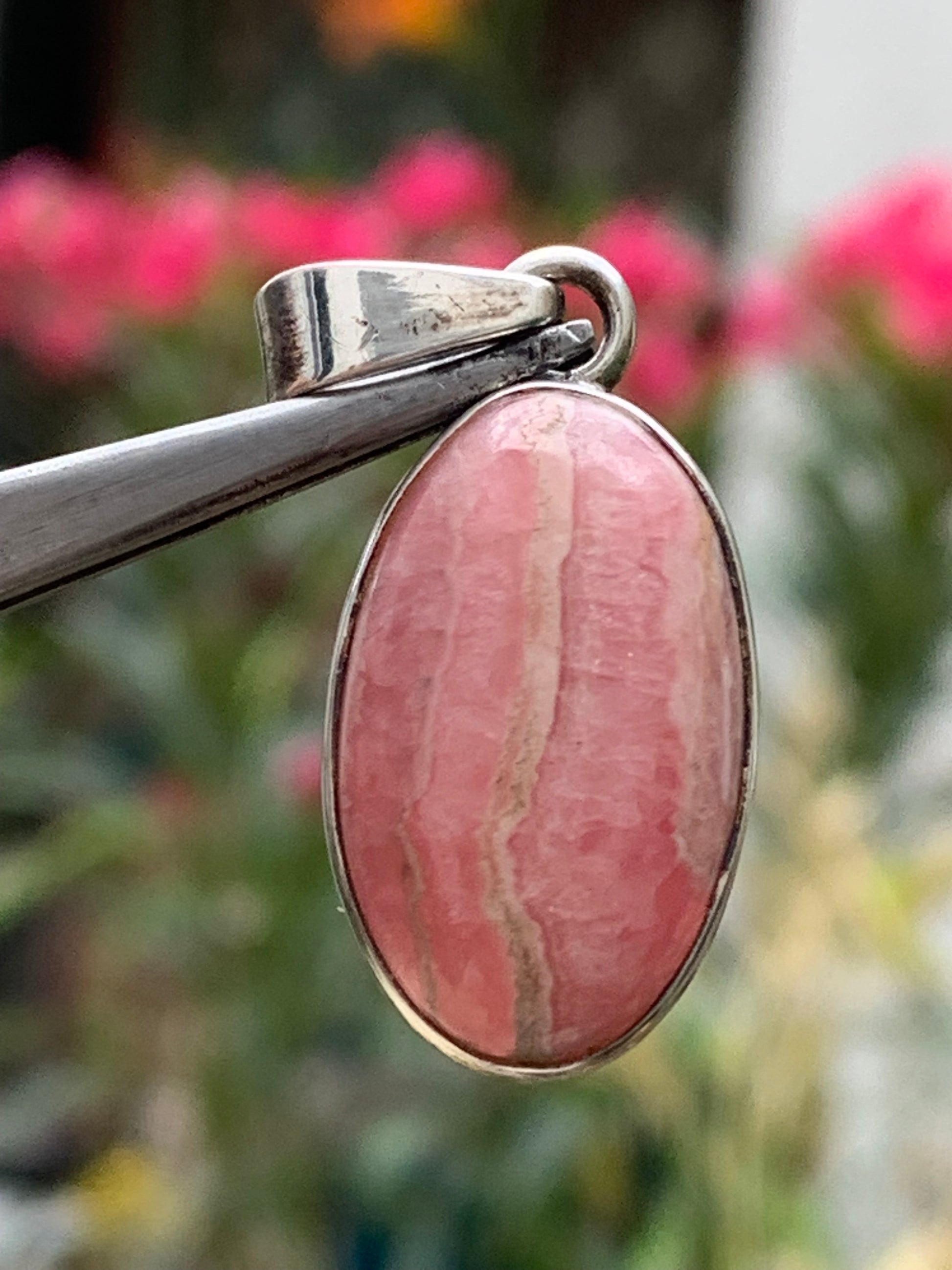 Rhodochrosite ! Pendentif en Argent de 35mm x15 x7 fait par Gem & Zen. Vendu avec un cordon réglable de couleur noire !