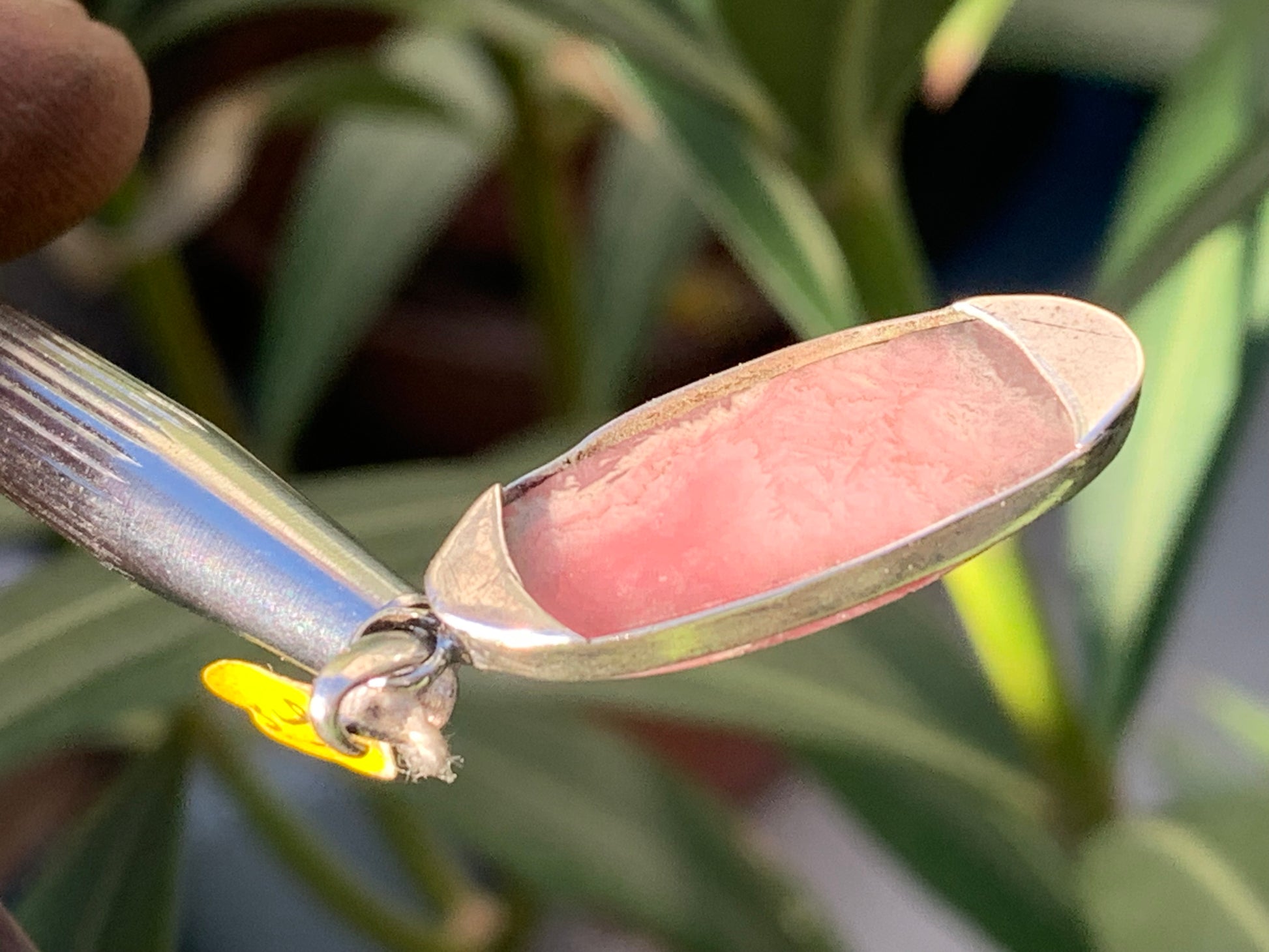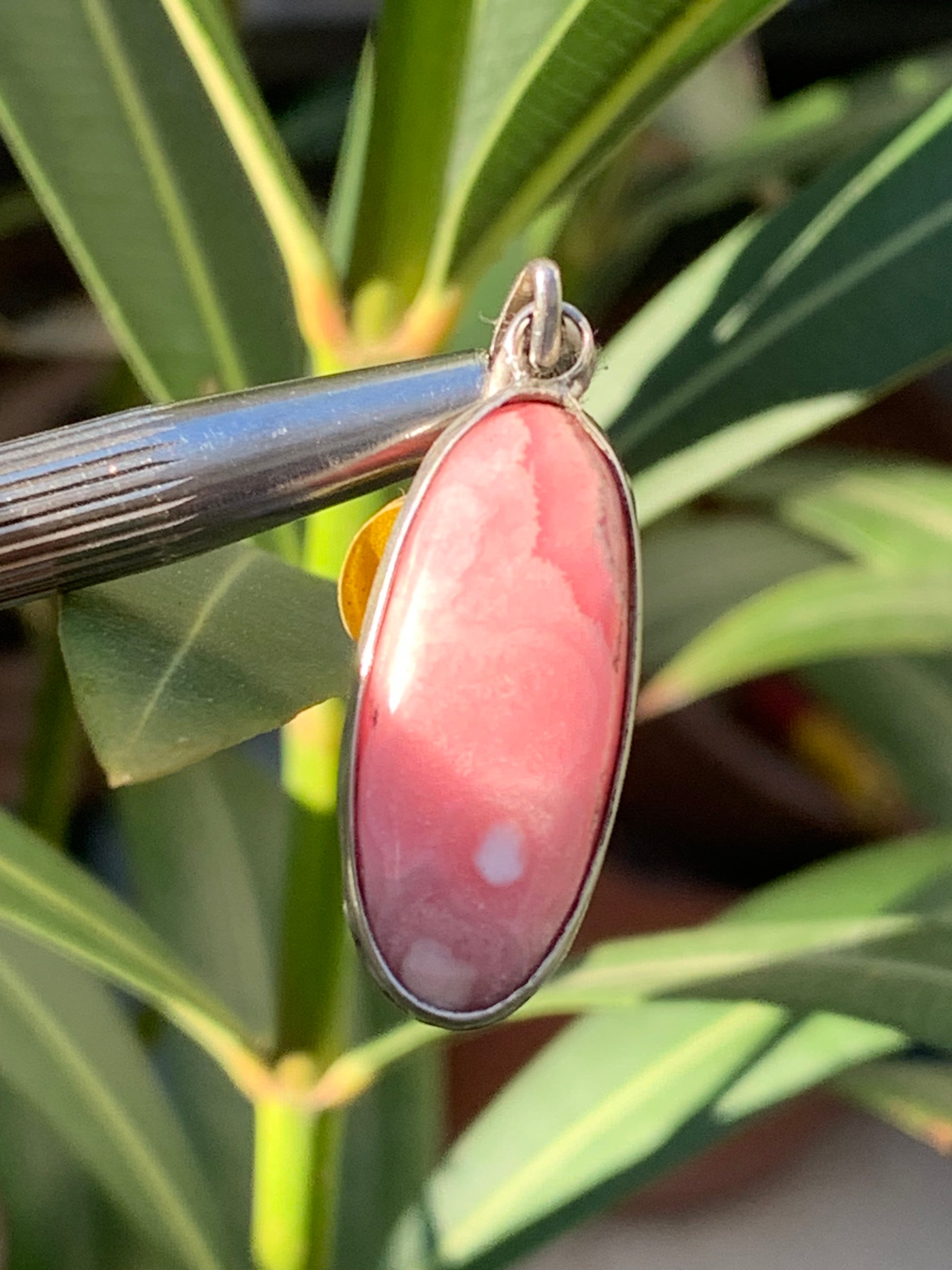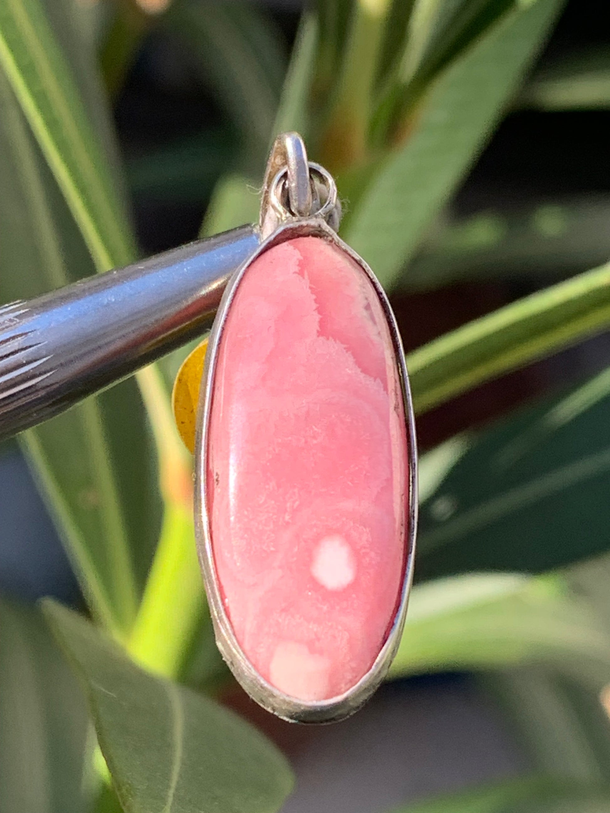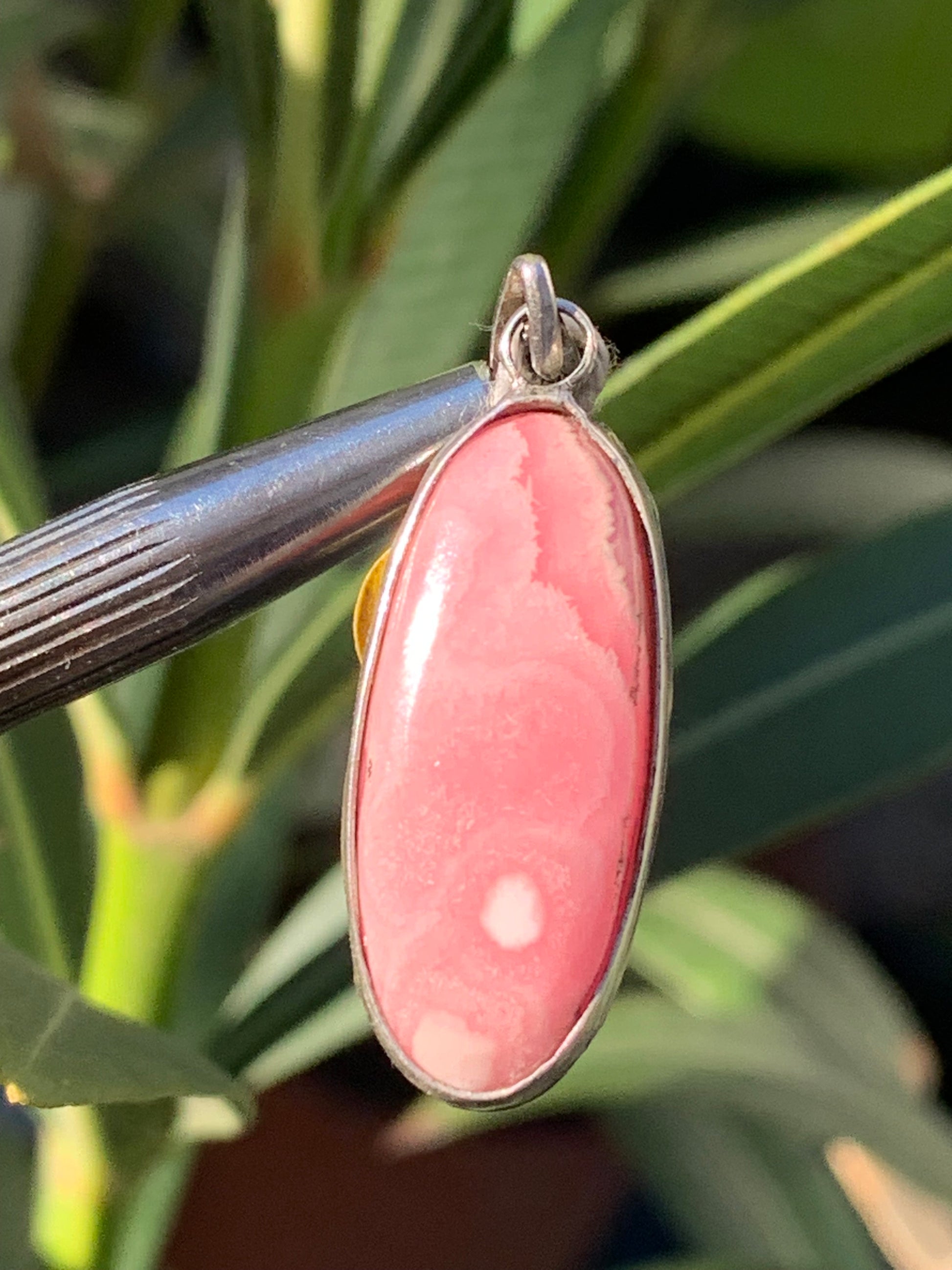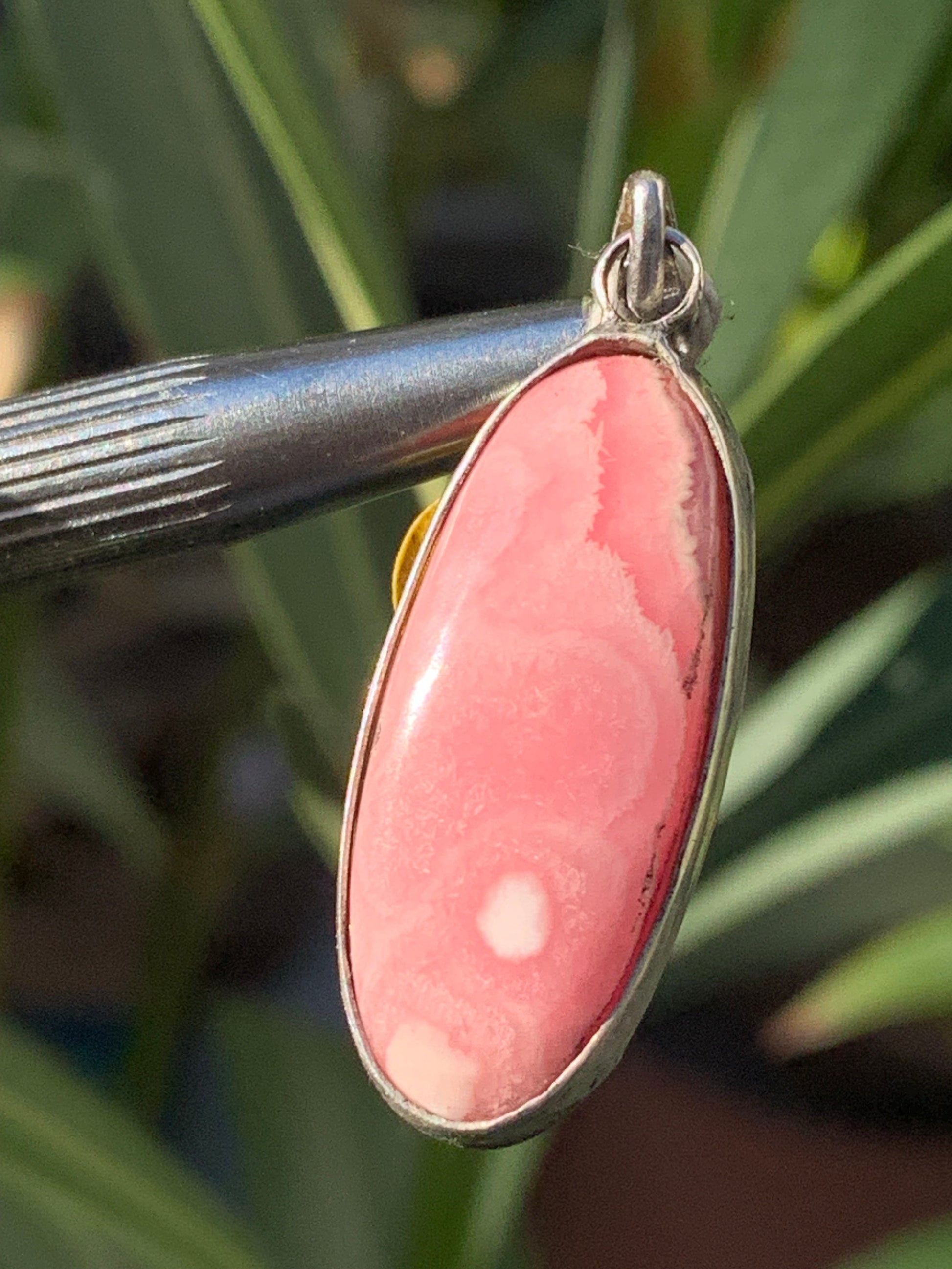 Rhodochrosite ! Pièce unique en Argent de 35 mm x 12 x 5. Vendu avec un cordon réglable de couleur noire !