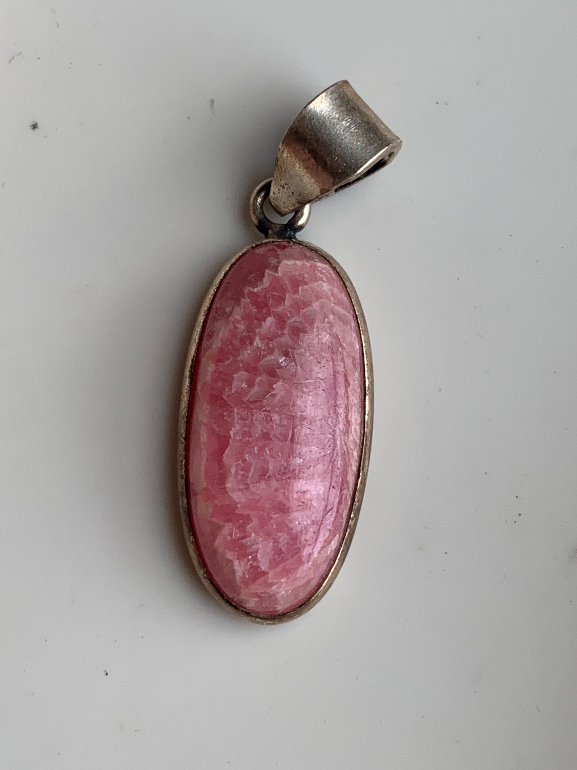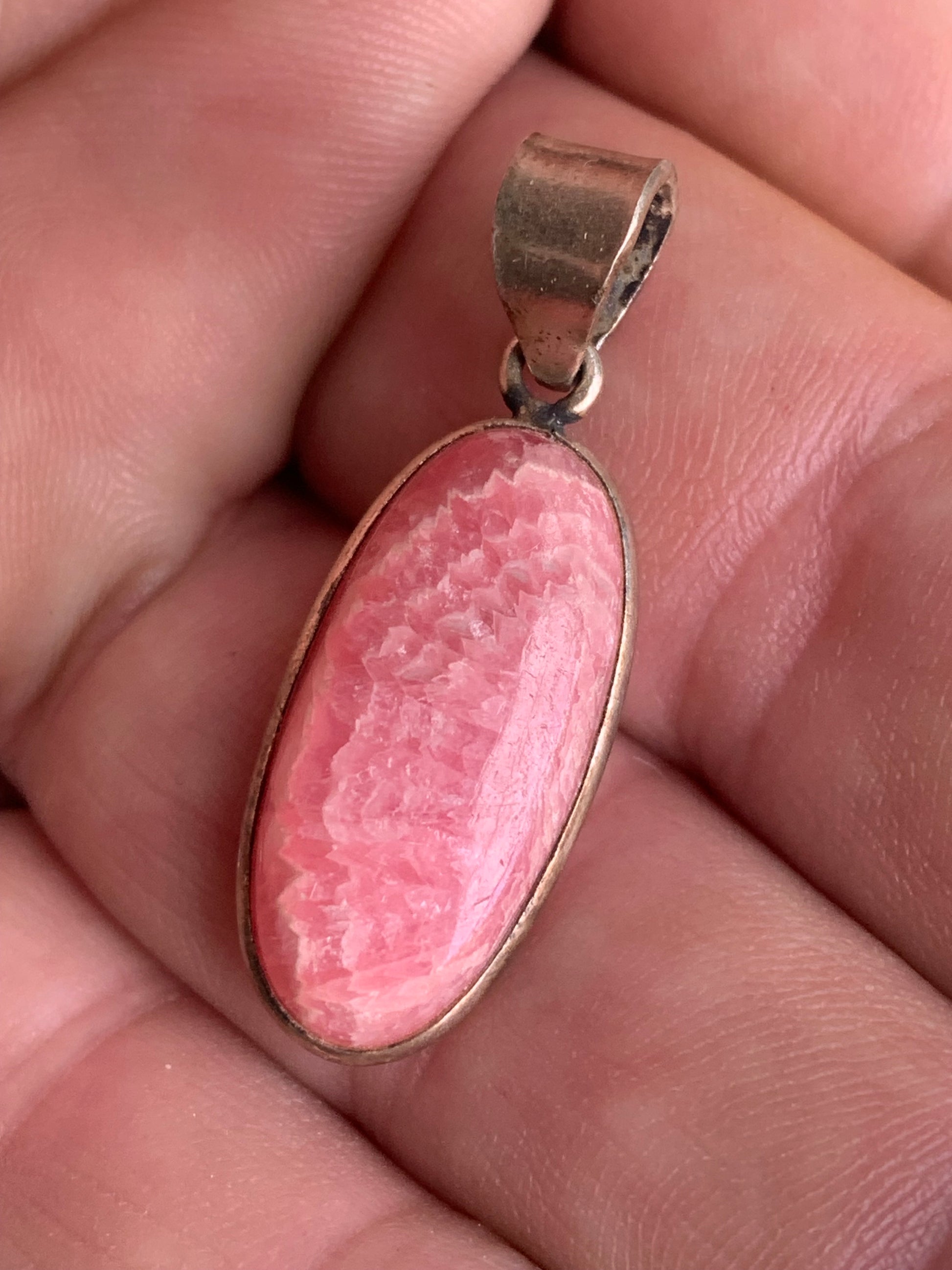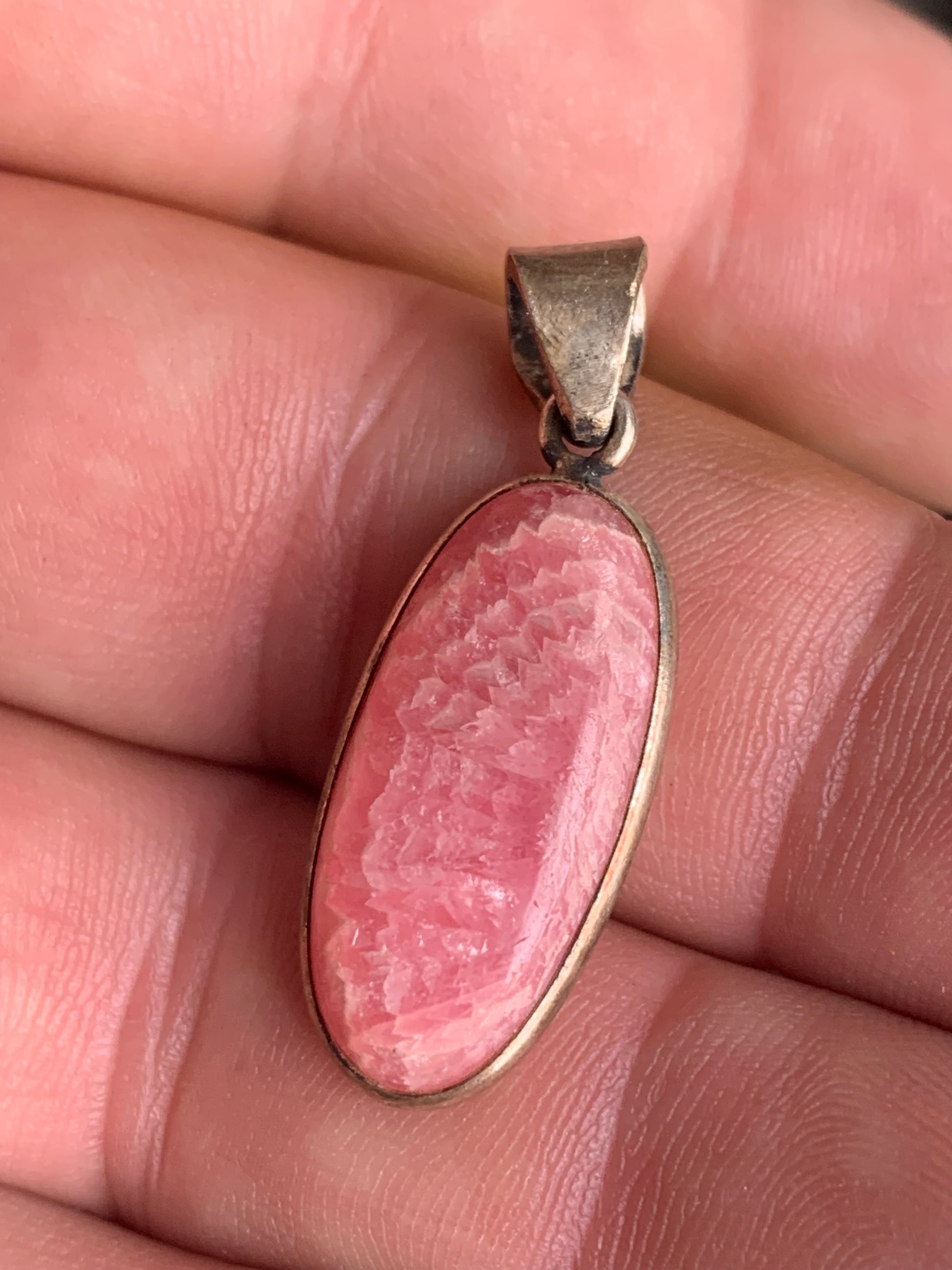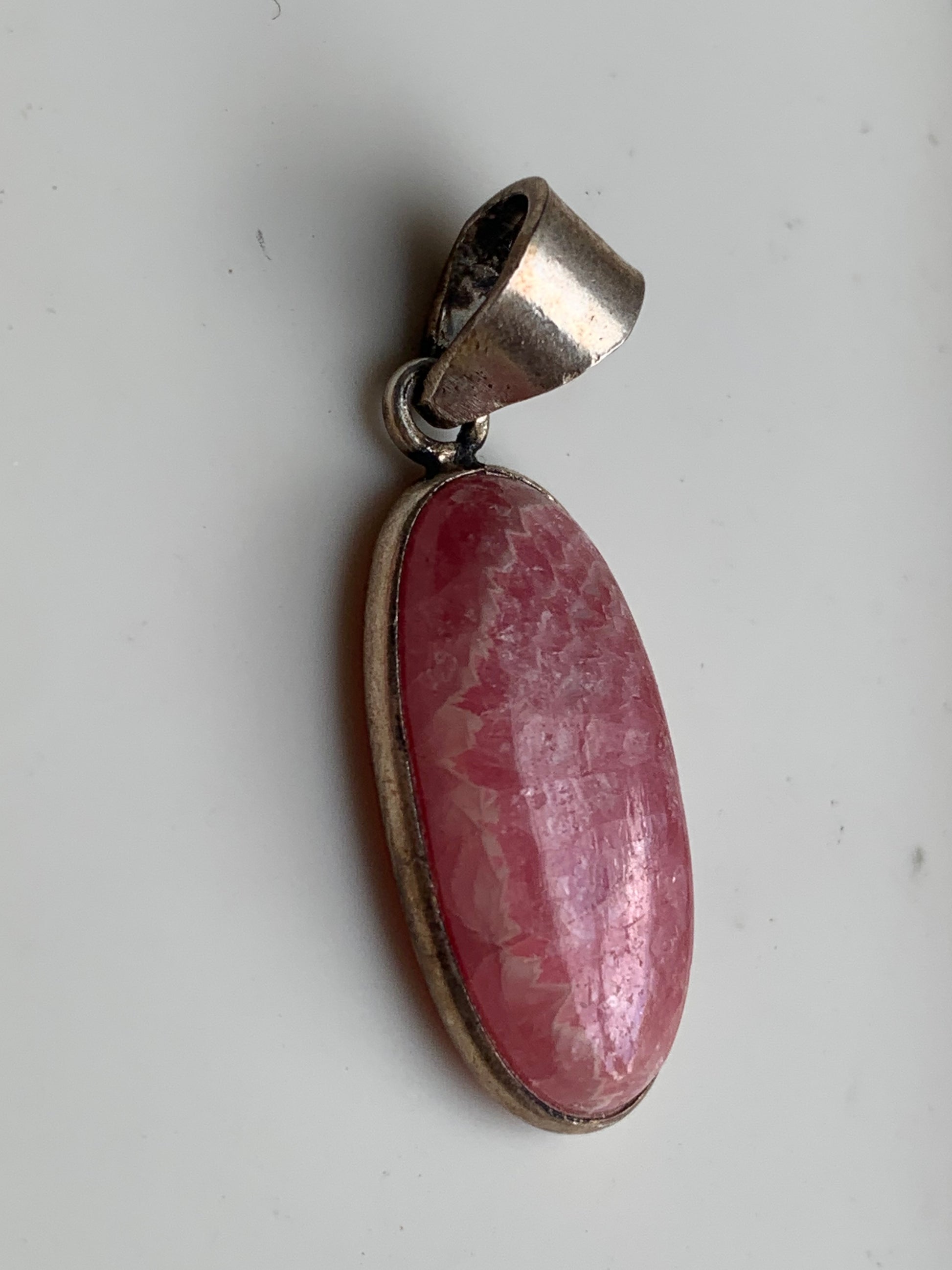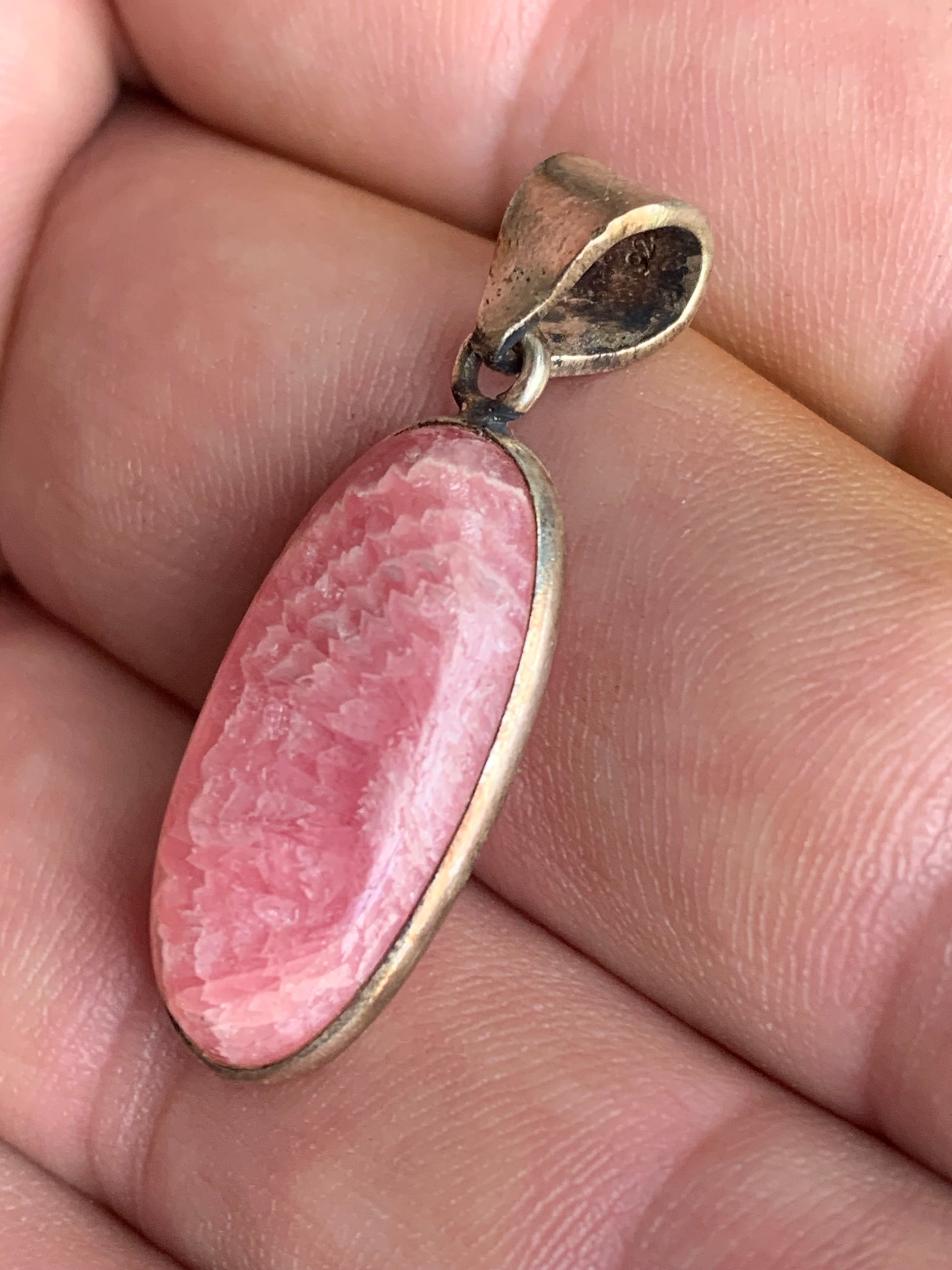 Rhodochrosite ! Pendentif en Argent de 42 mm x 11 x 7. Vendu avec un cordon réglable de couleur noire !