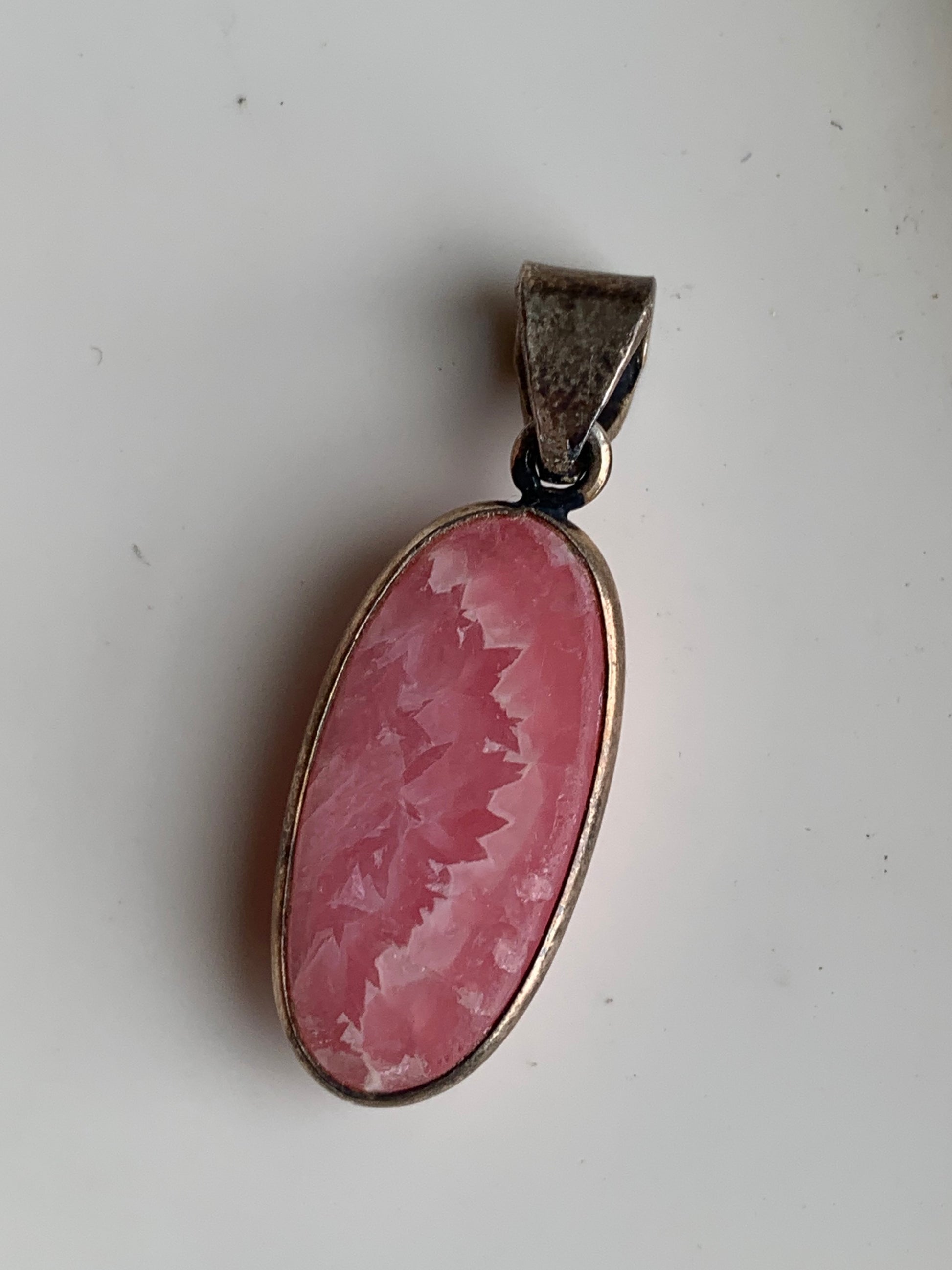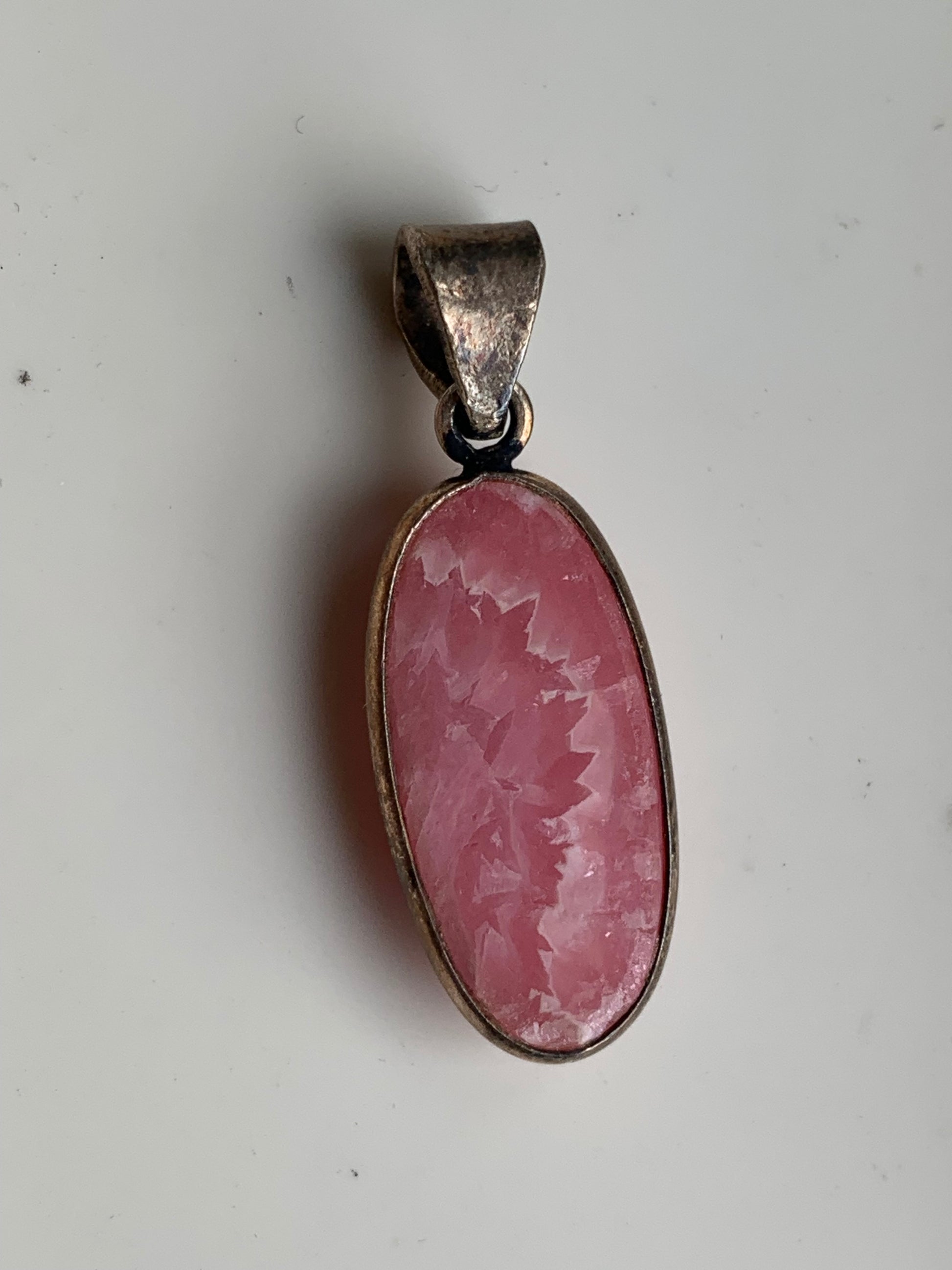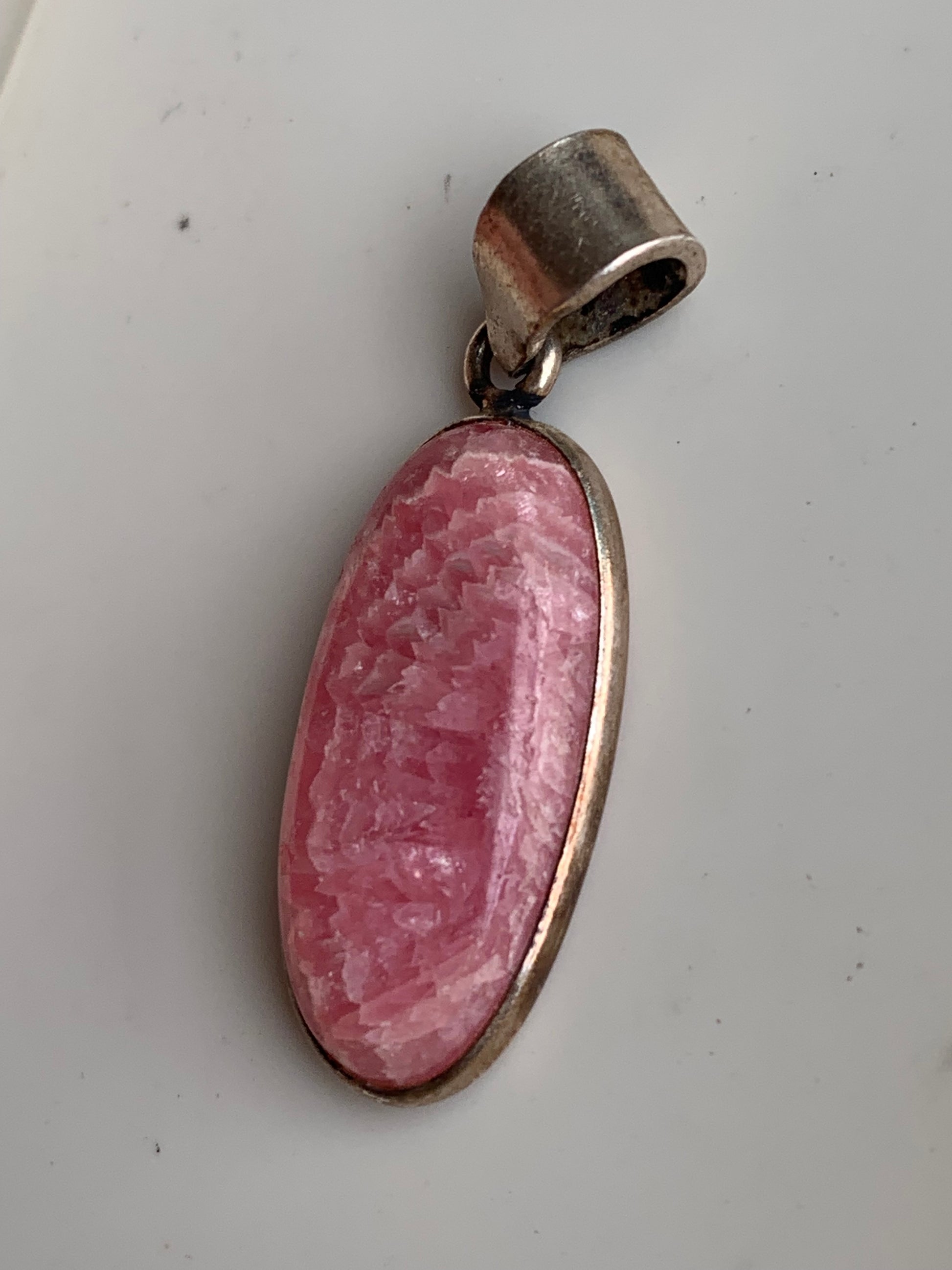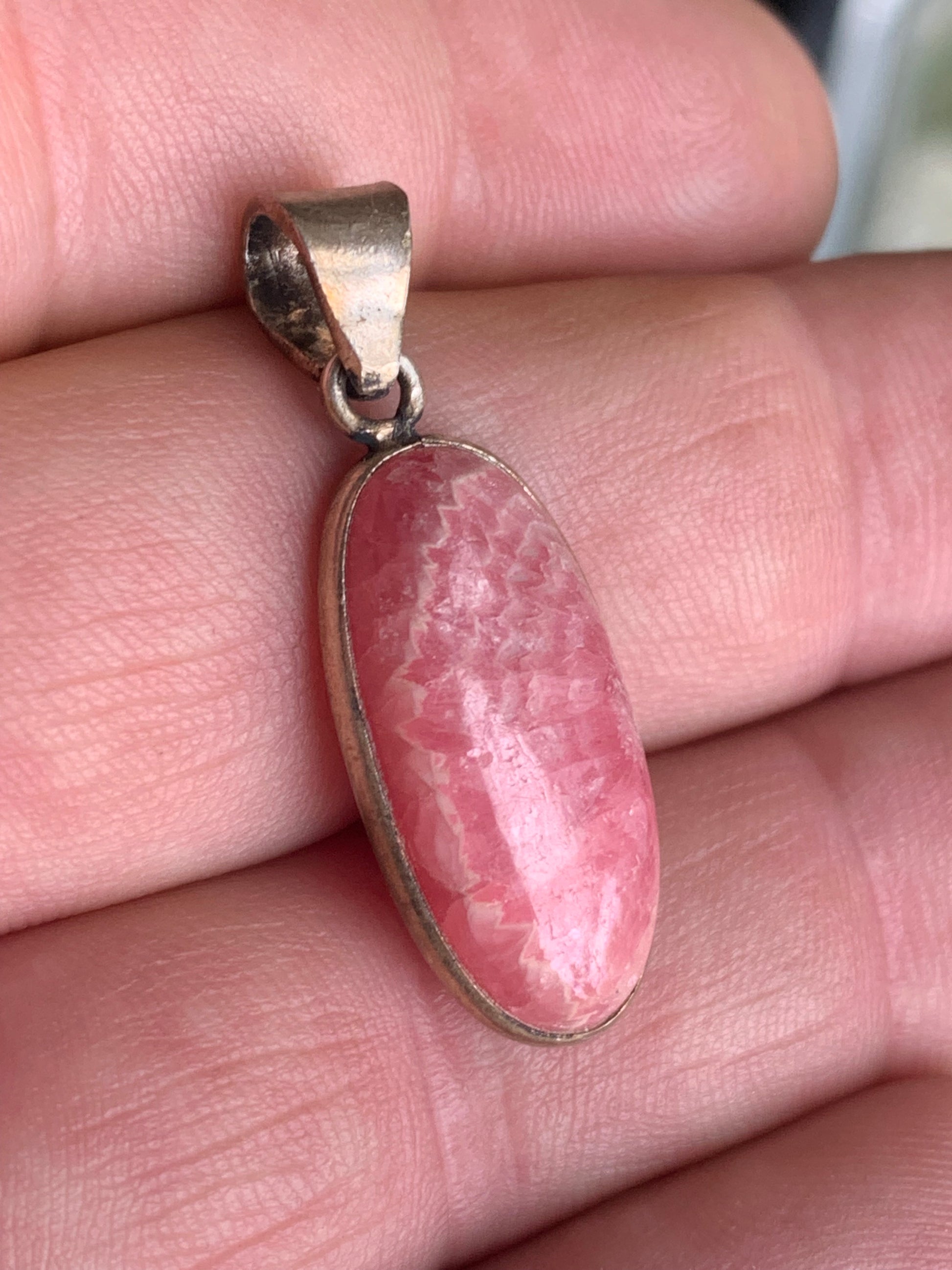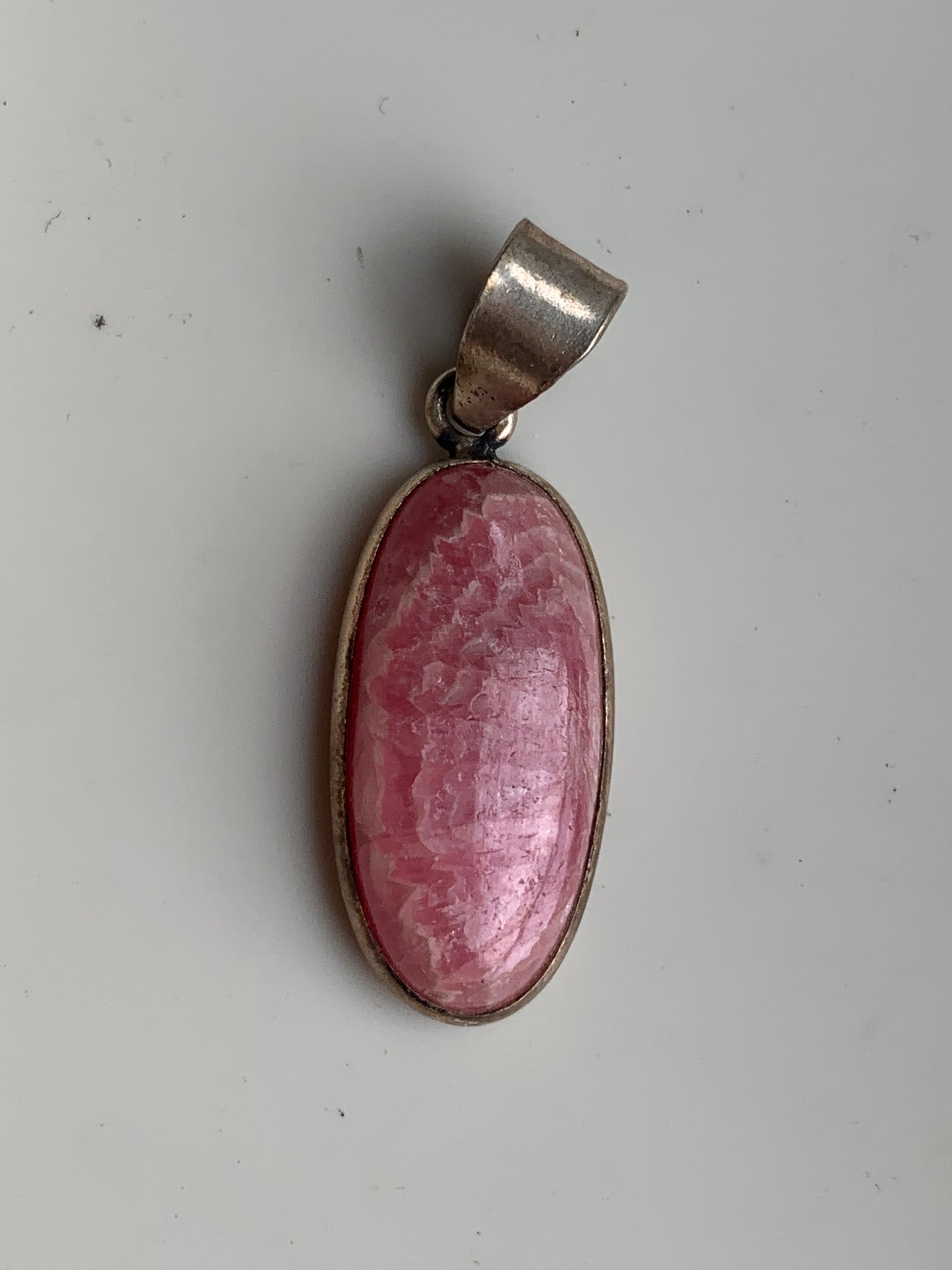 Rhodochrosite ! Pendentif en Argent de 42 mm x 11 x 7. Vendu avec un cordon réglable de couleur noire !