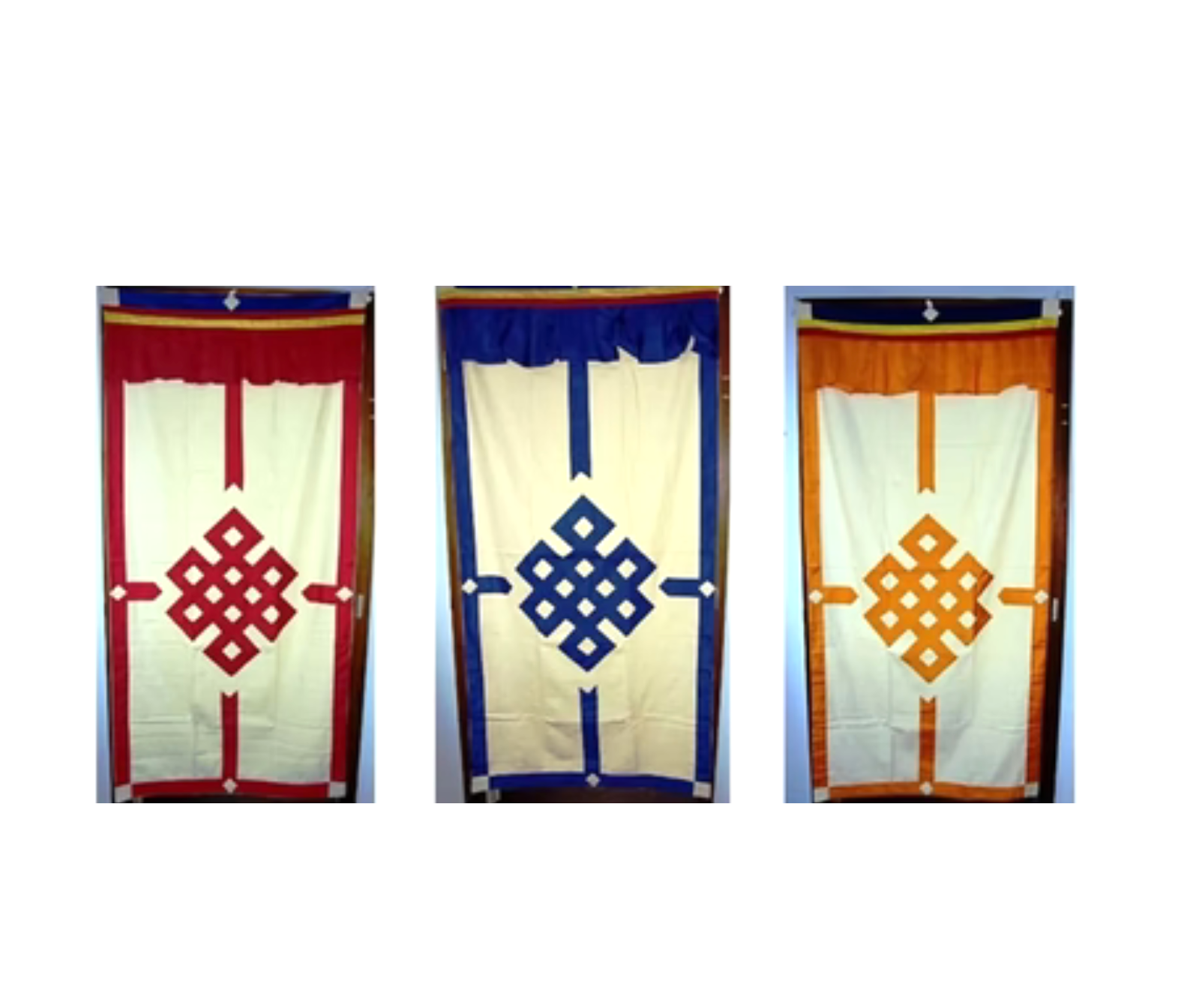 Rideaux Tibétain, 178x85 centimètres, 100% coton. Ils sont utilisés comme décorations pour l'autel, dans le "Gompa" (salle de méditation) ou à la maison.