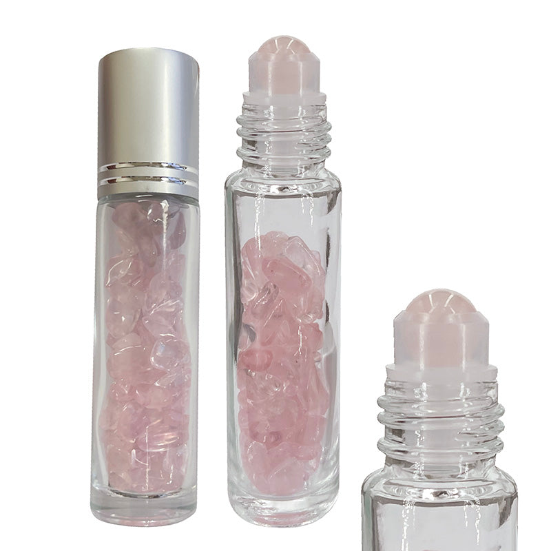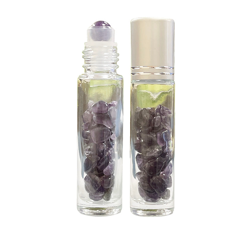 Roll-on/ Fiole de minéraux - 5 modèles : améthyste - cristal de roche - quartz rose - oeil de tigre + Fiole d'ambre ! Parfait pour la préparation d'elixir !