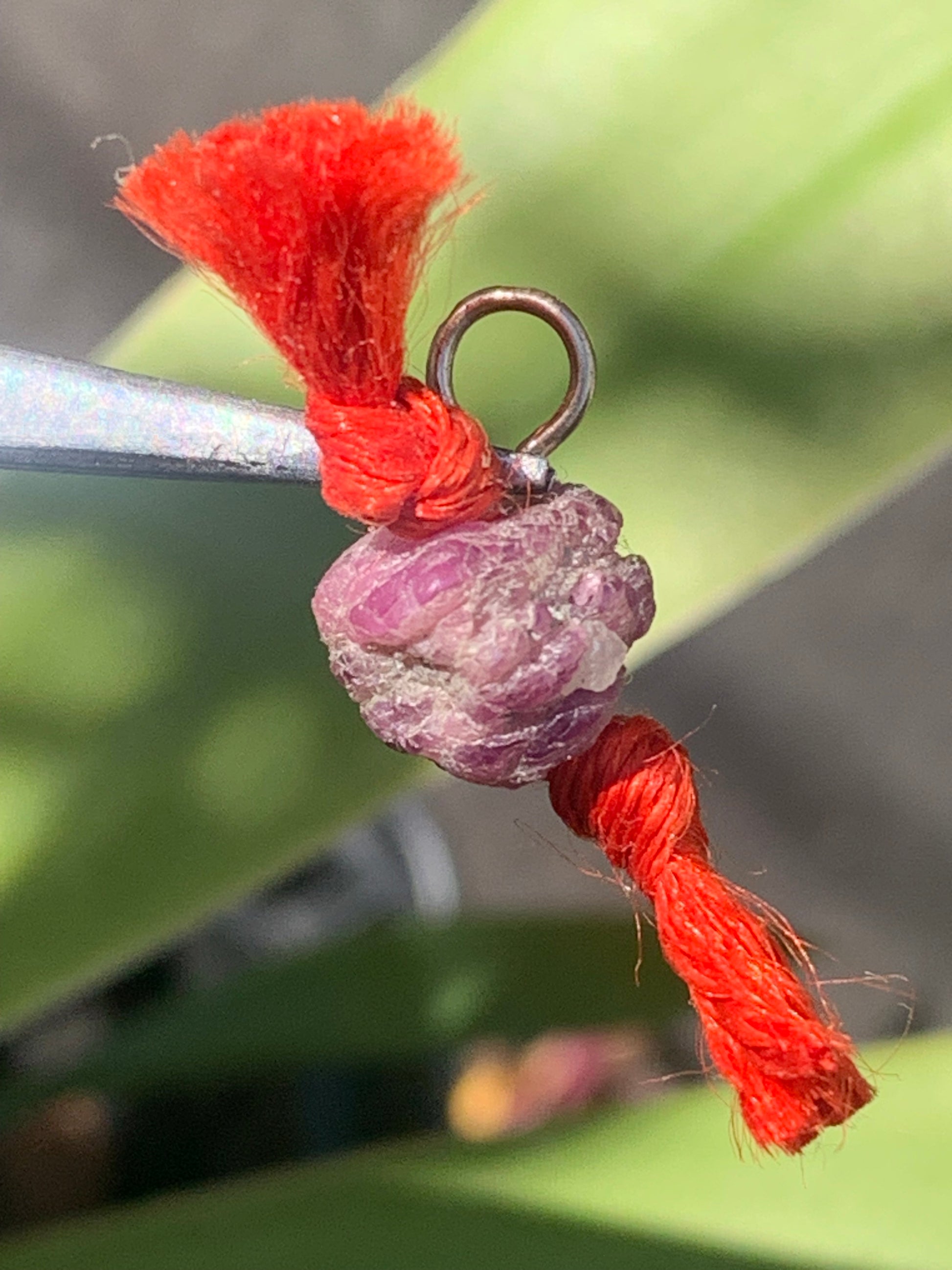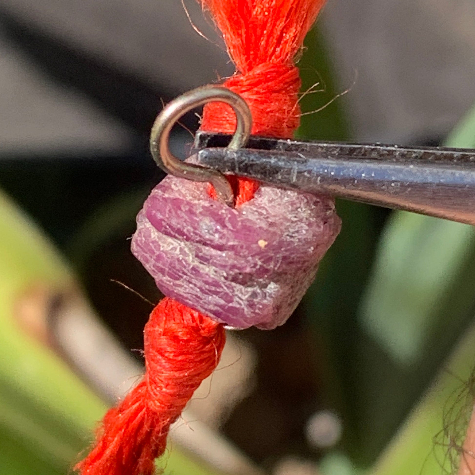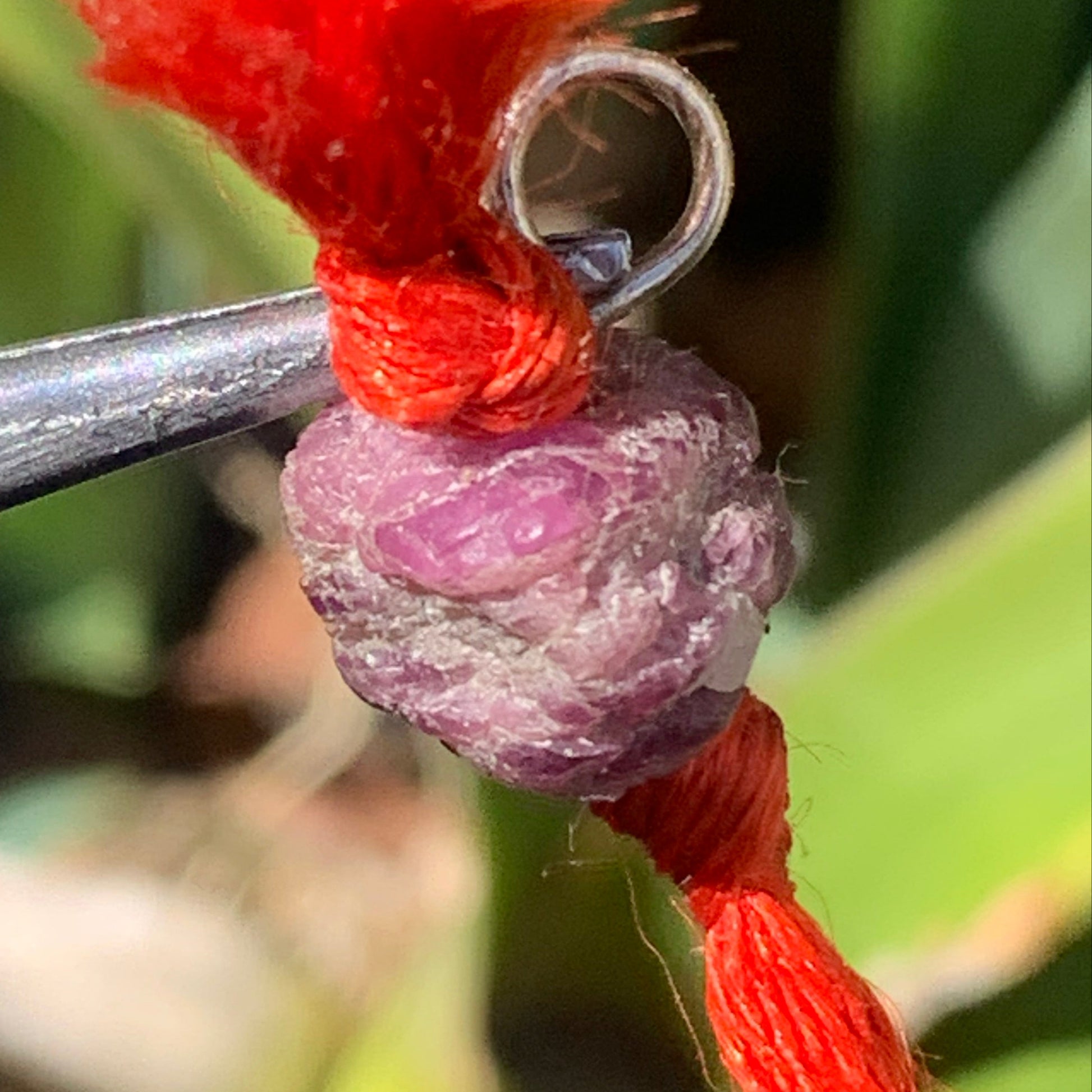 Rubis, cristal percĂ© de 11mm x9 x8 - 1,4 grammes . Superbe corindon de rubis prĂȘt Ă porter, vendu avec cordon rĂ©glable !