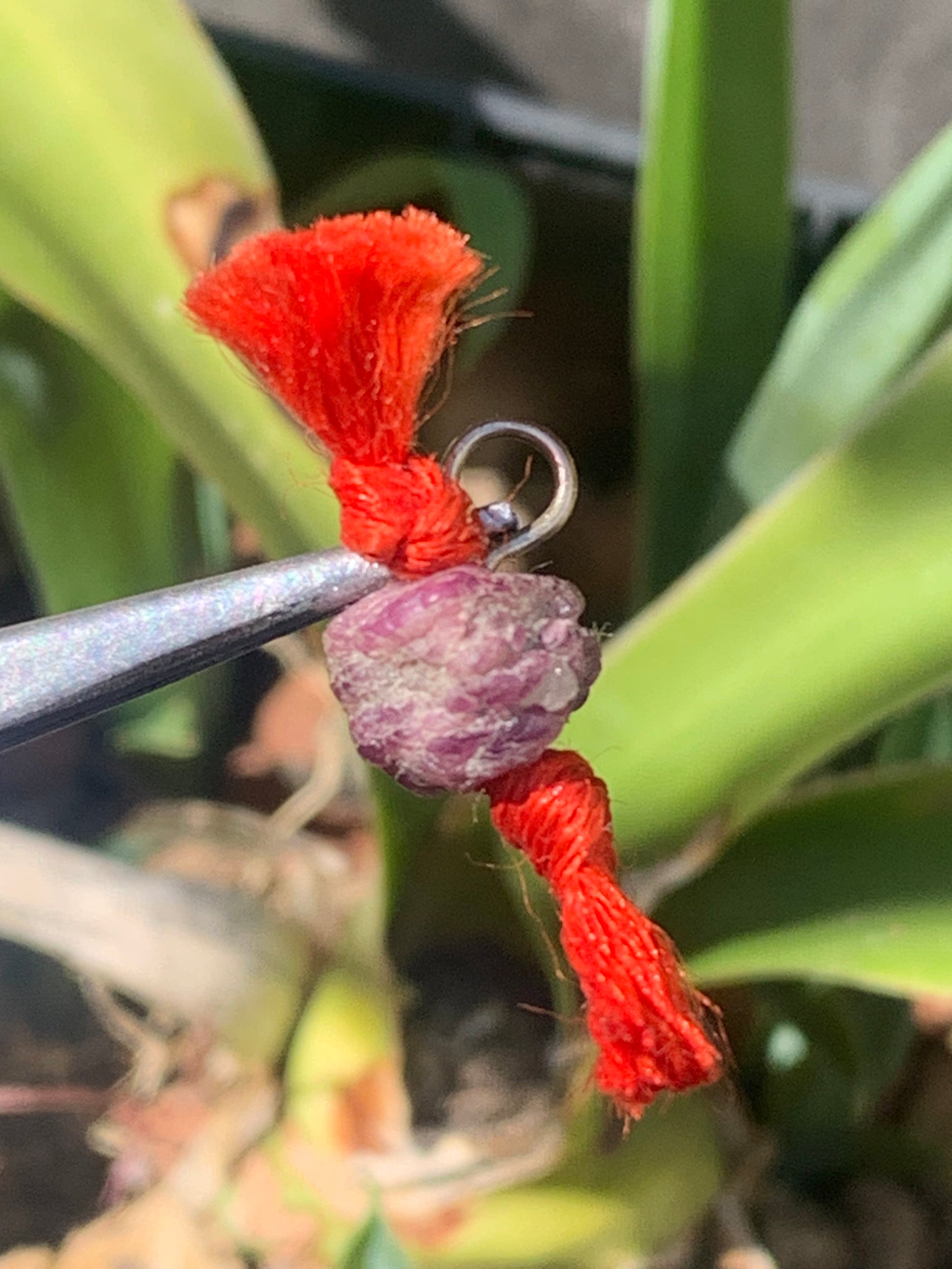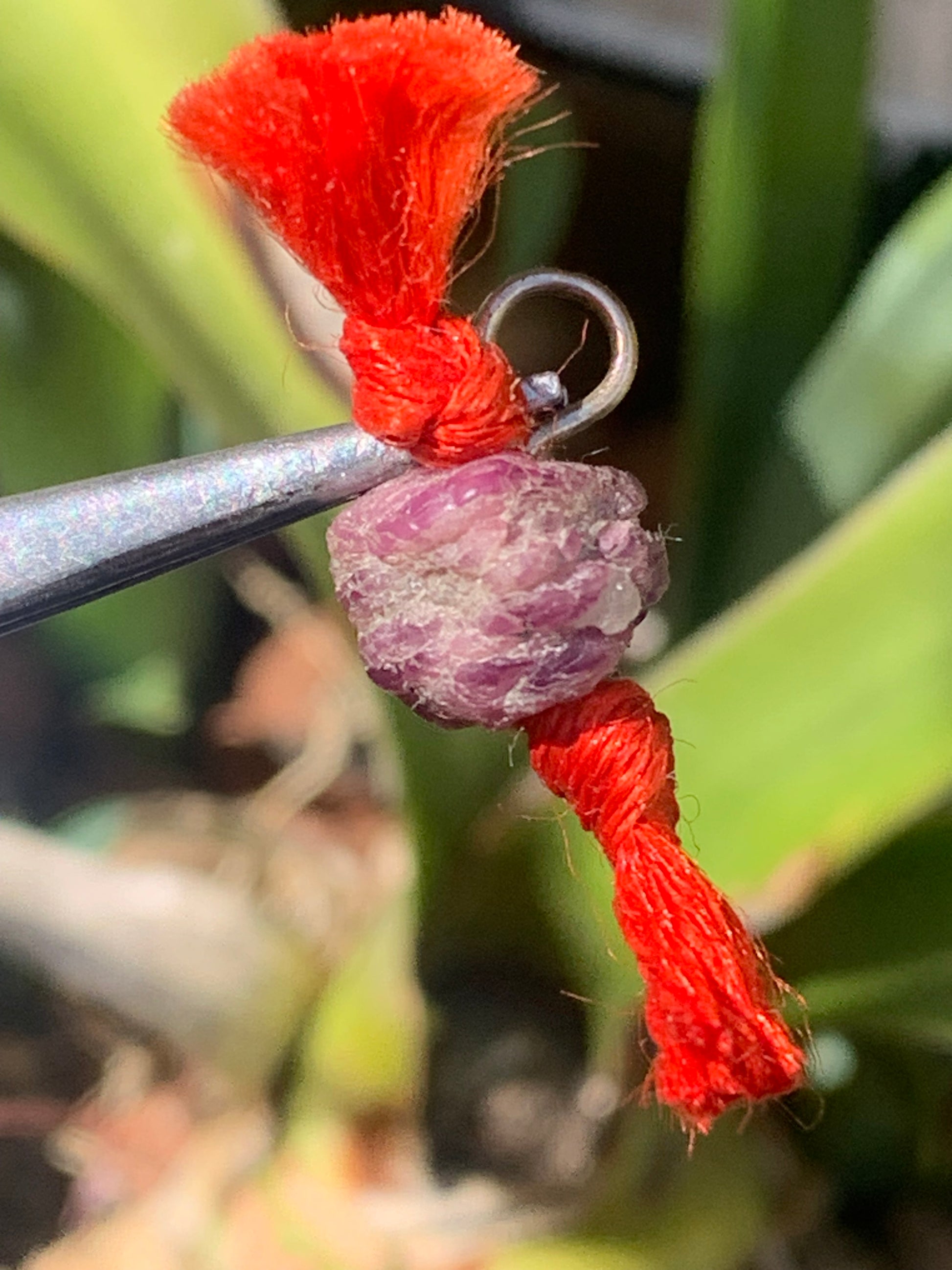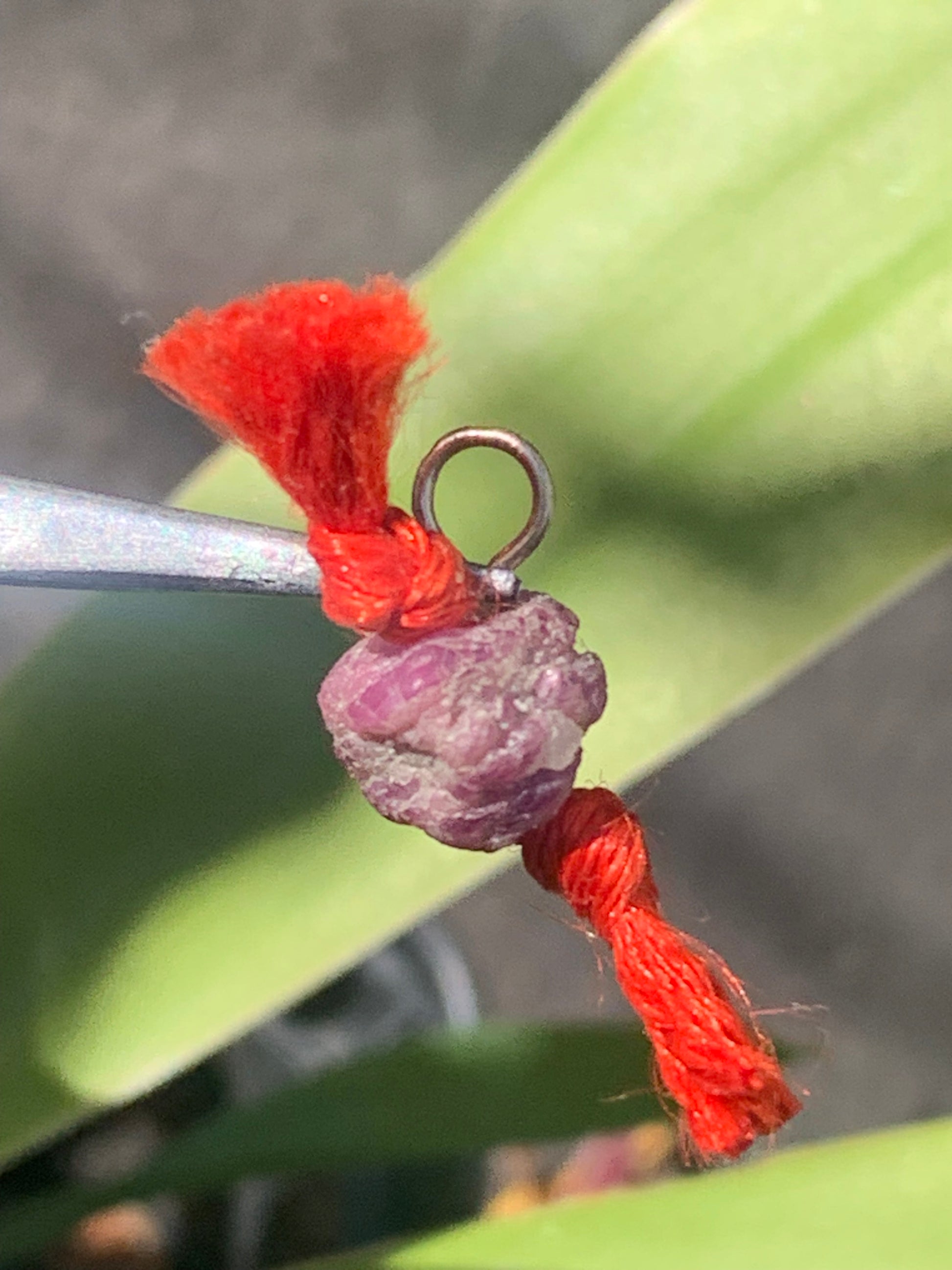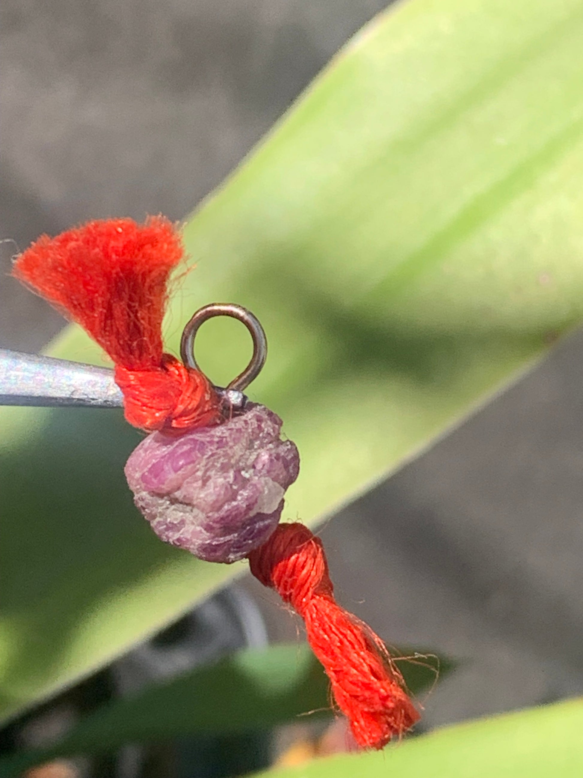Rubis, cristal percĂ© de 11mm x9 x8 - 1,4 grammes . Superbe corindon de rubis prĂȘt Ă porter, vendu avec cordon rĂ©glable !