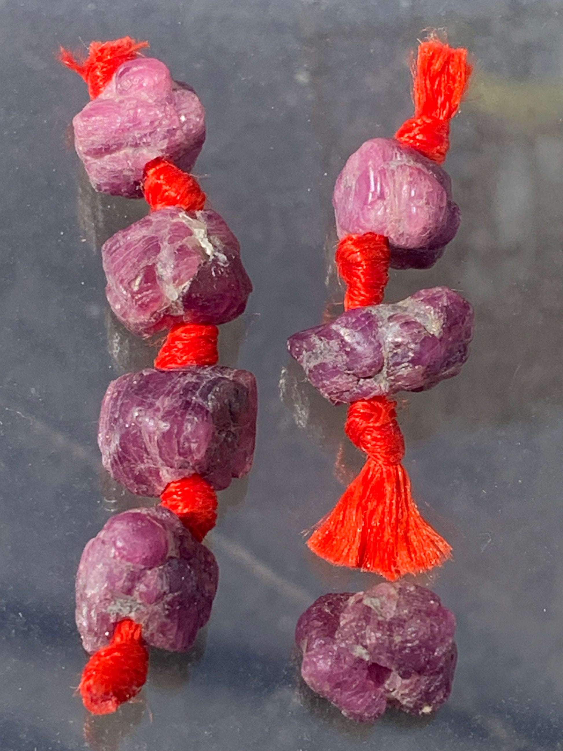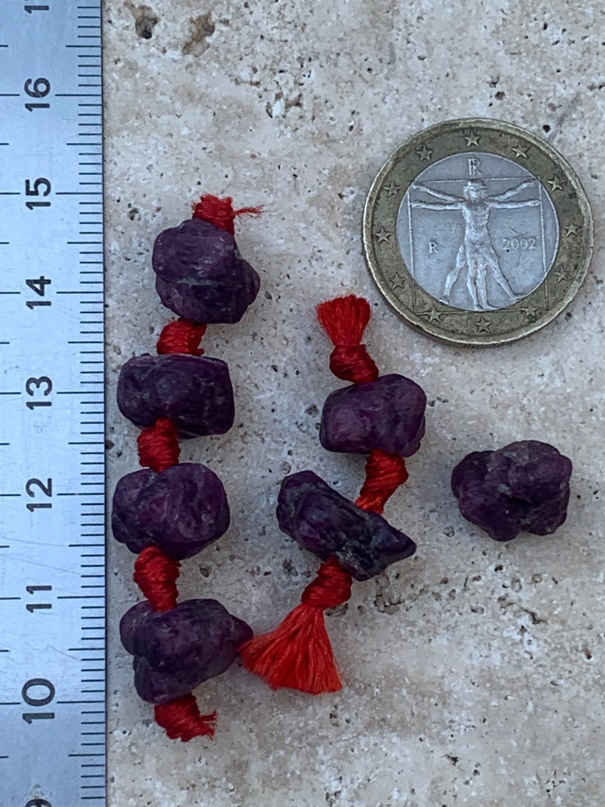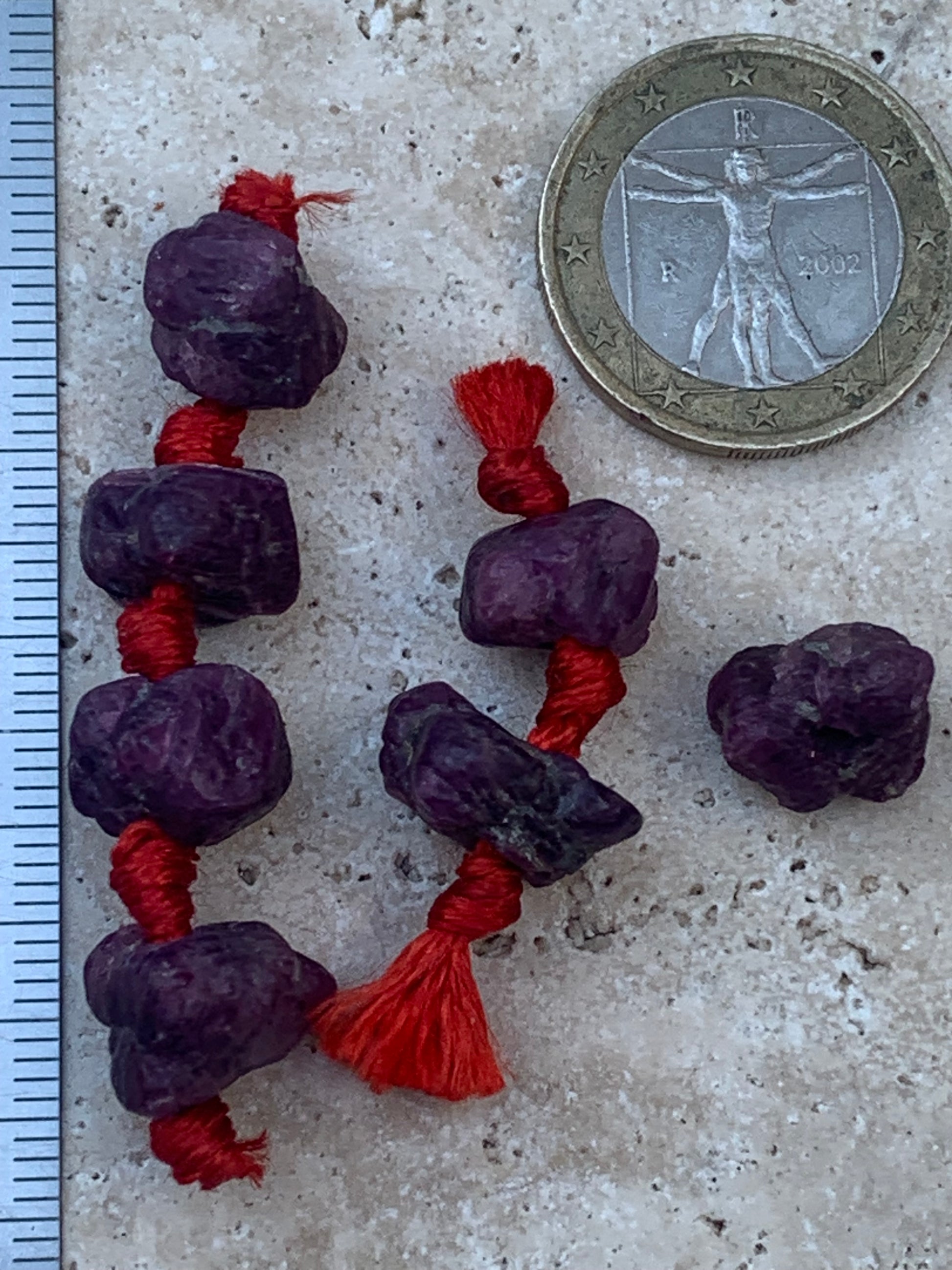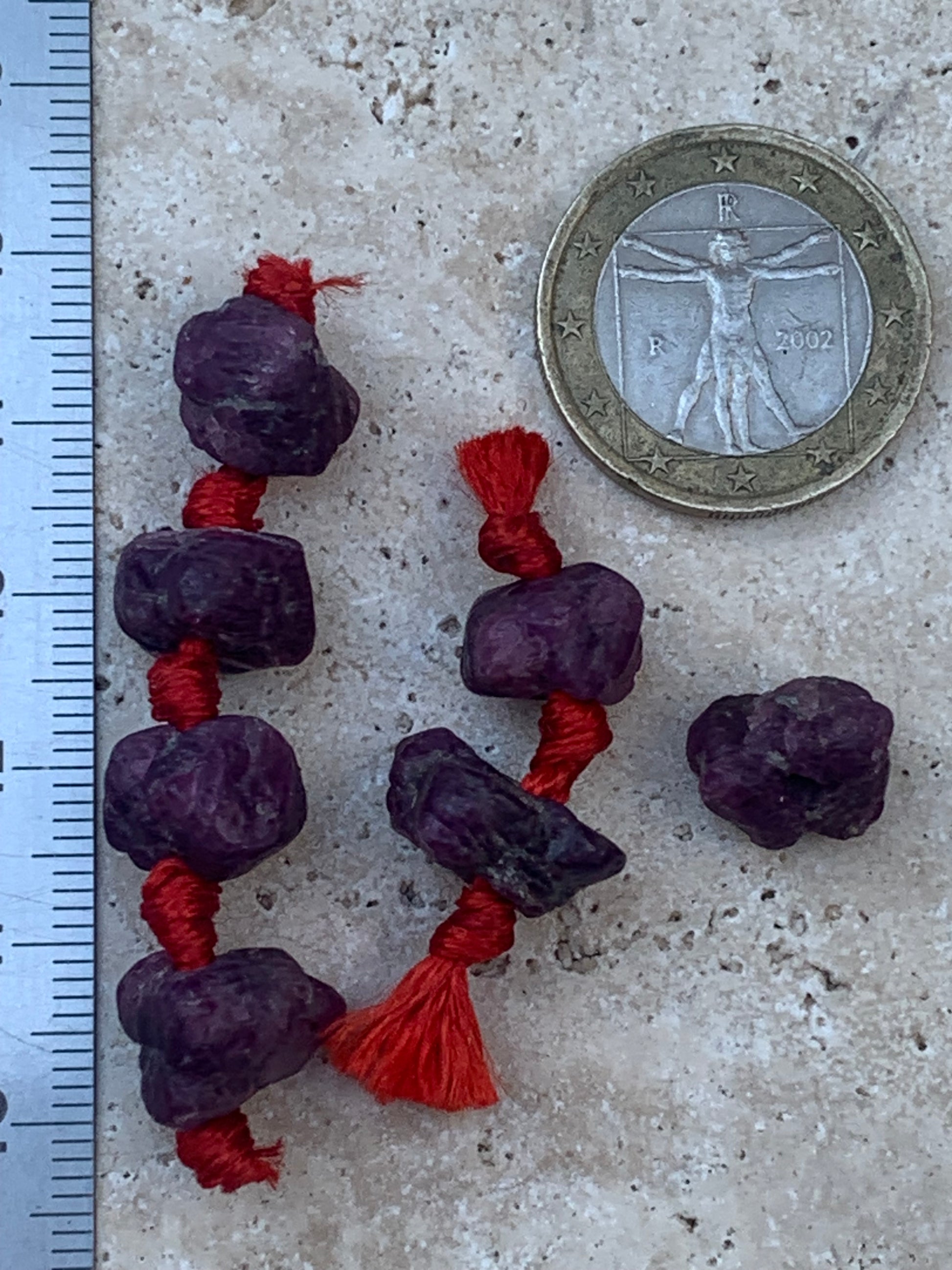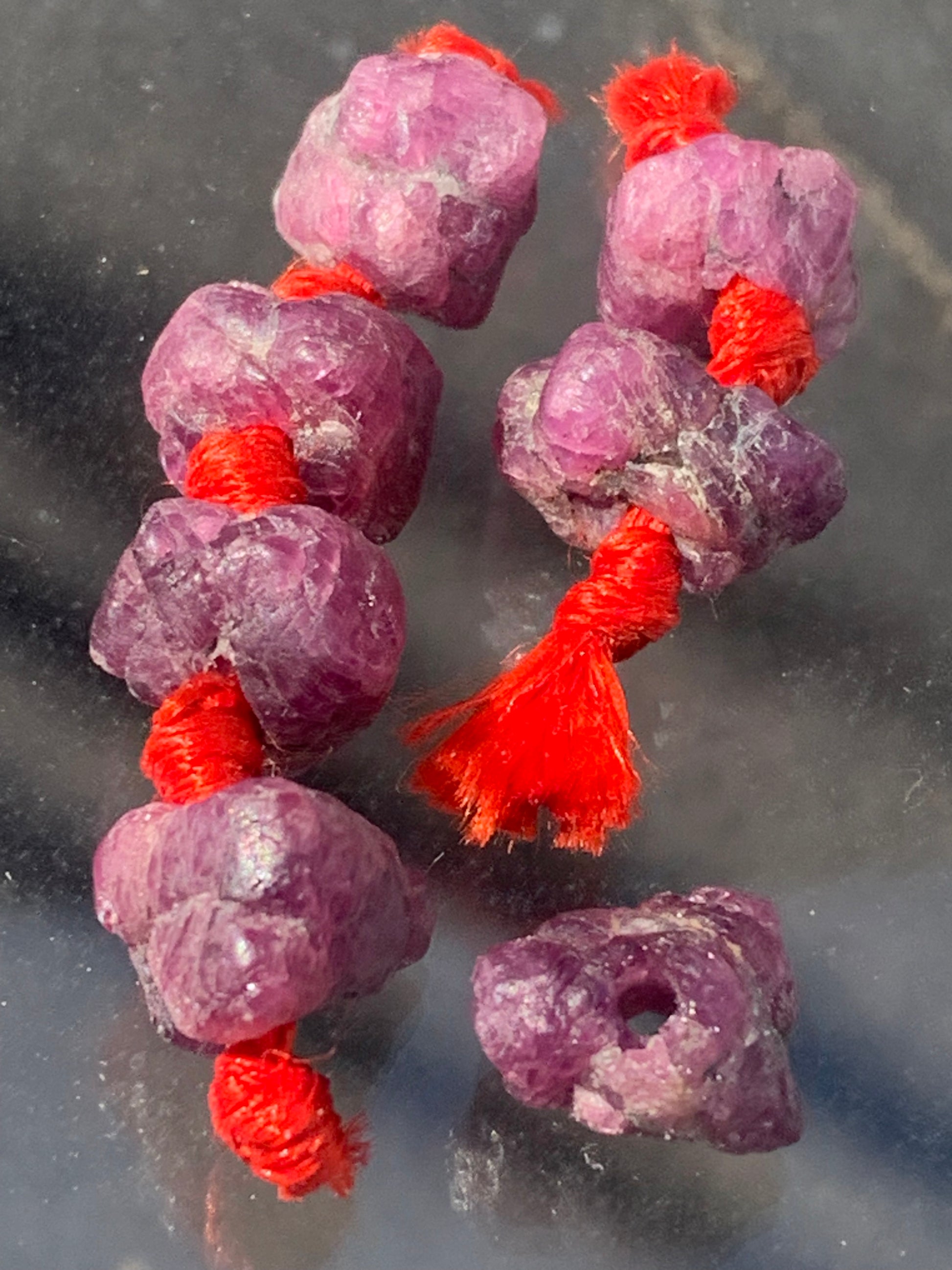 Rubis, cristaux bruts percés vendus a l'unité ou en lot. Environ de 10mm x7 x 5 - 12,7 grammes (lot). Parfait en bijouterie, collection ,exposition...