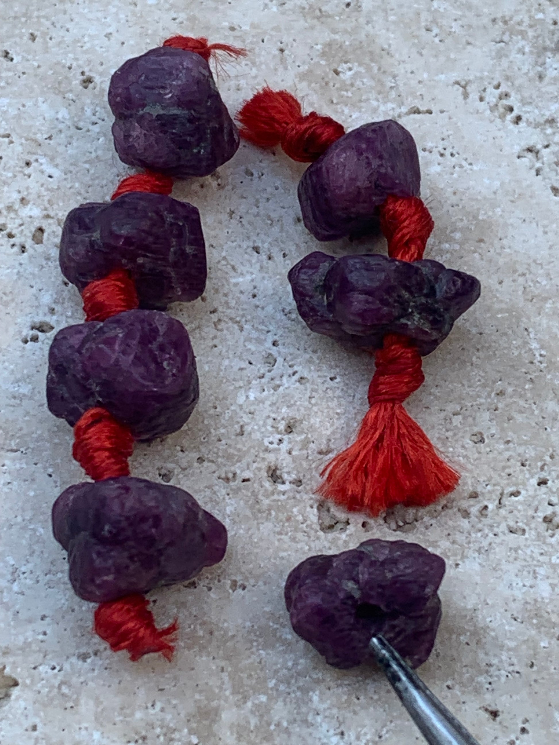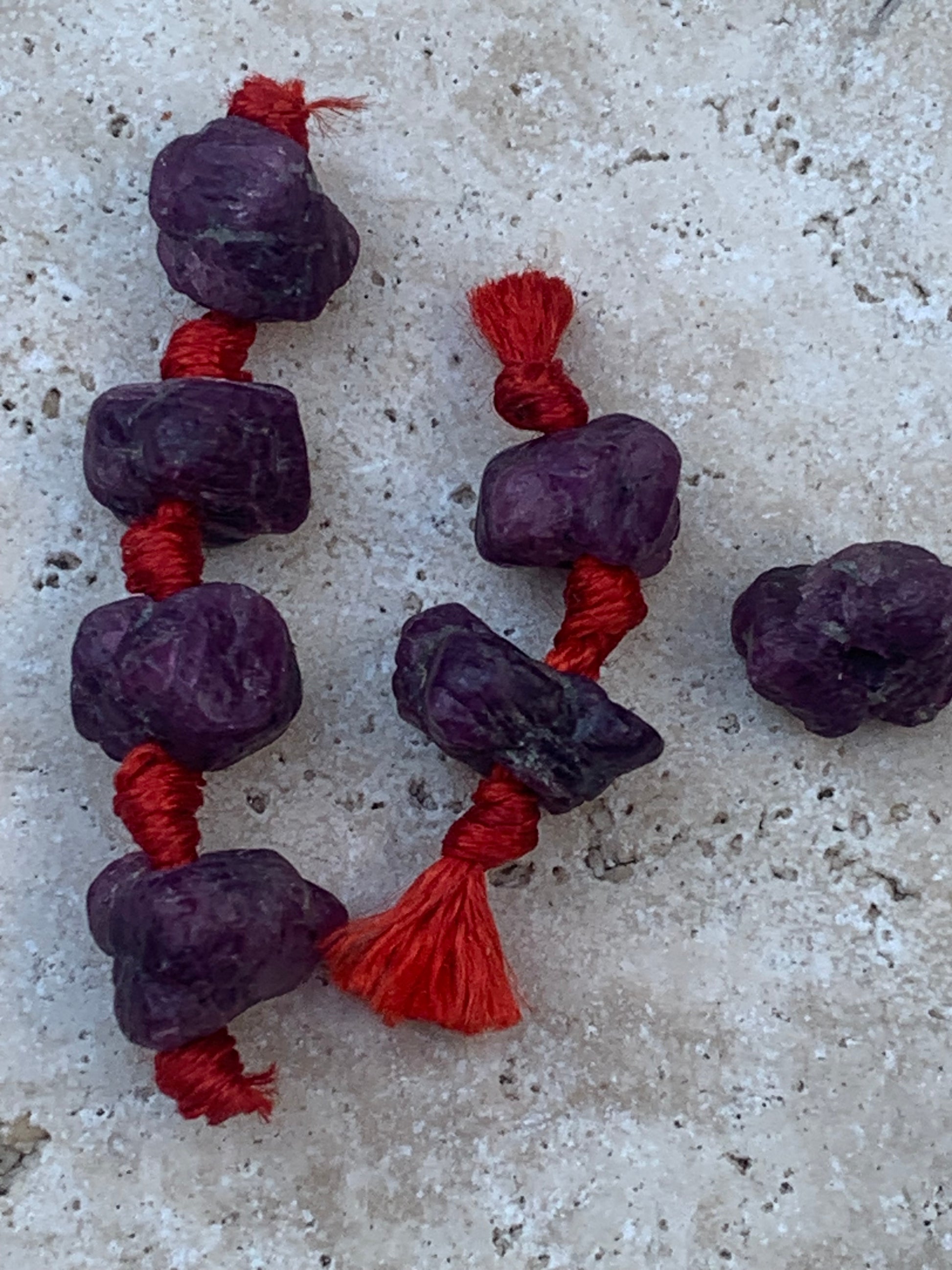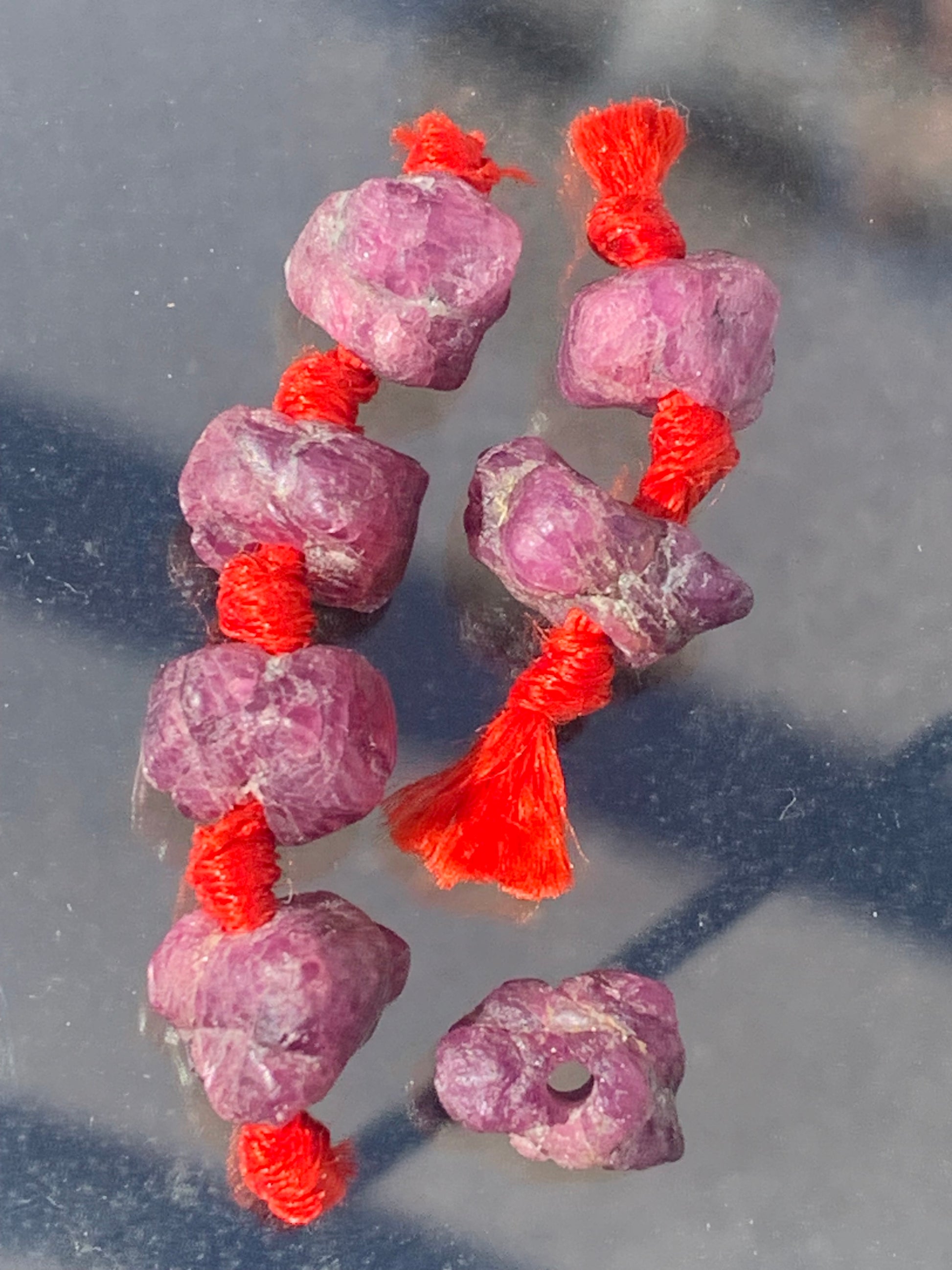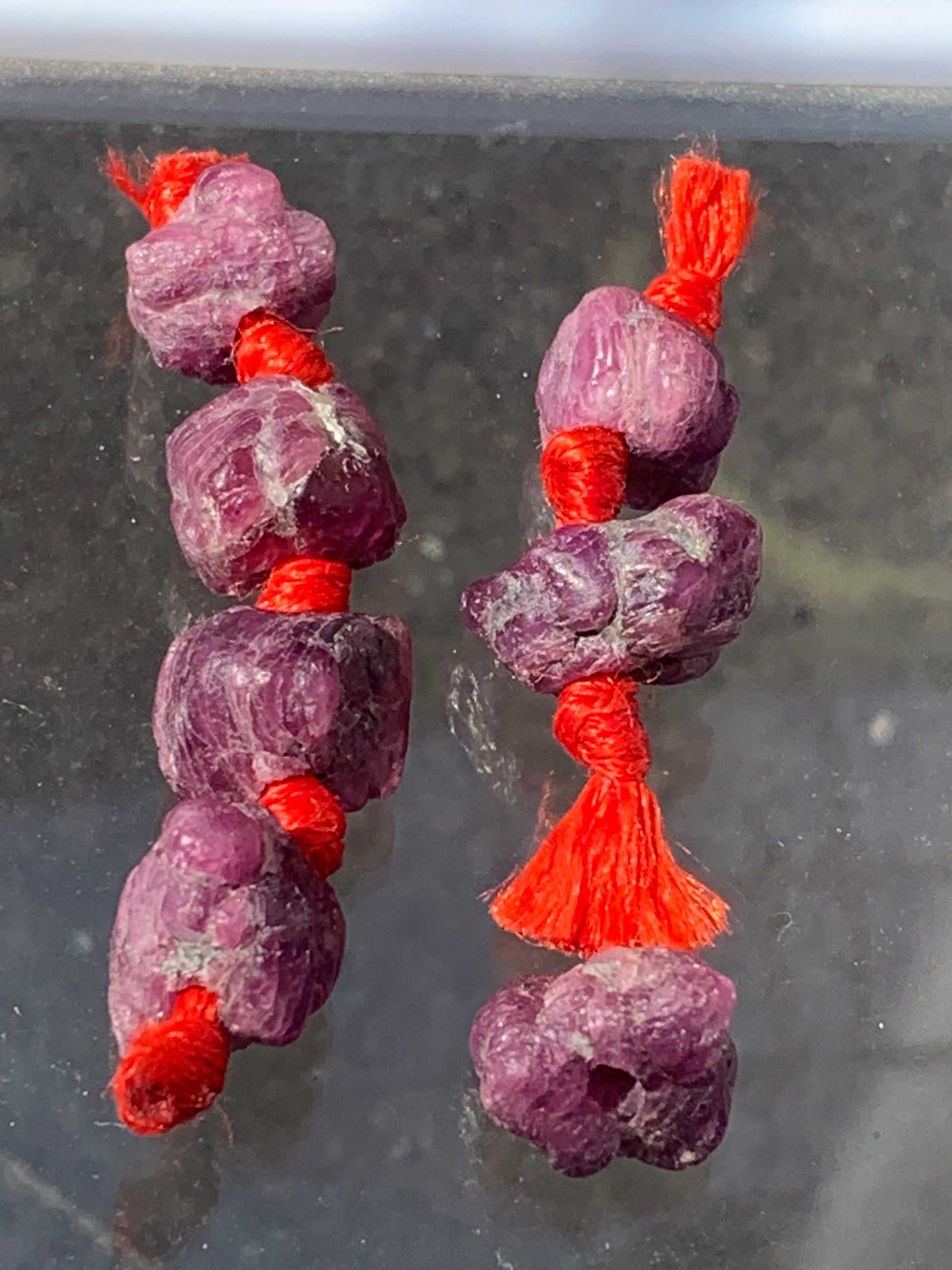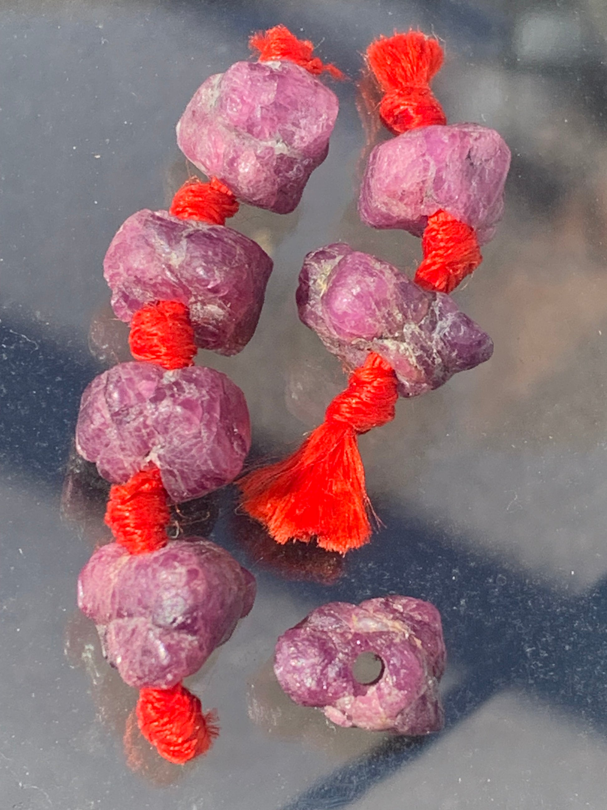 Rubis, cristaux bruts percés vendus a l'unité ou en lot. Environ de 10mm x7 x 5 - 12,7 grammes (lot). Parfait en bijouterie, collection ,exposition...