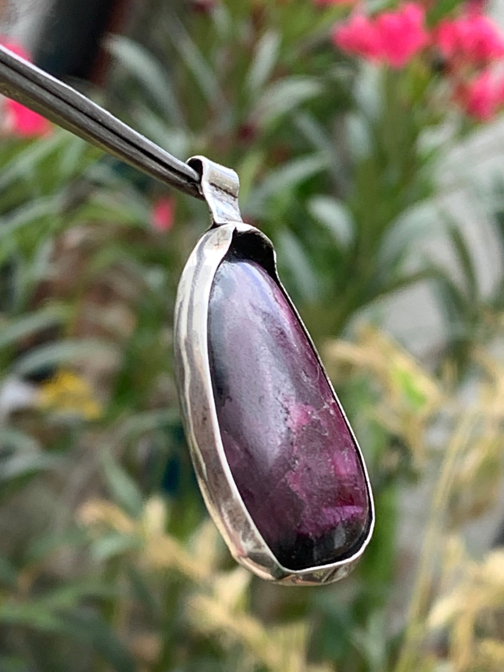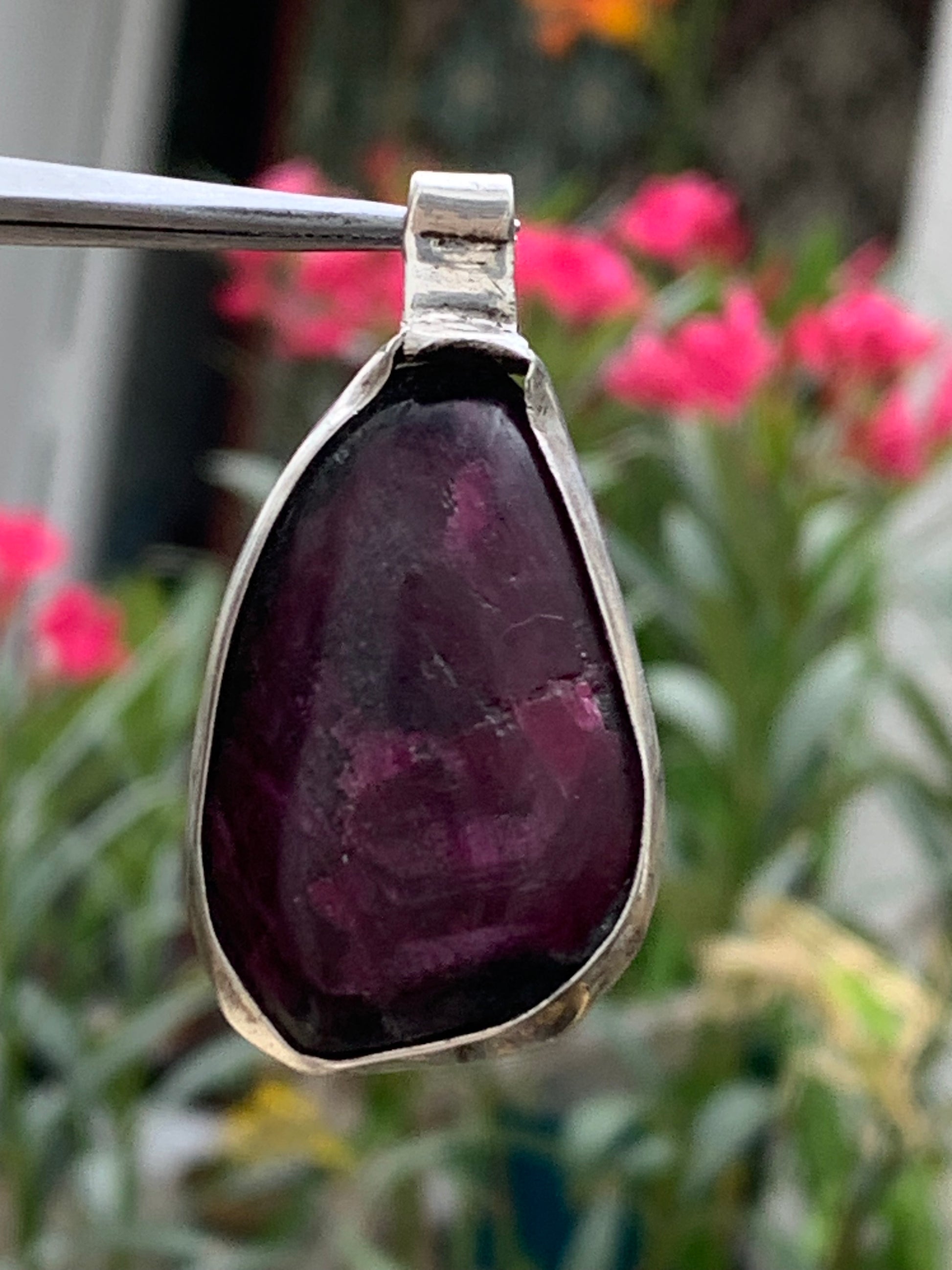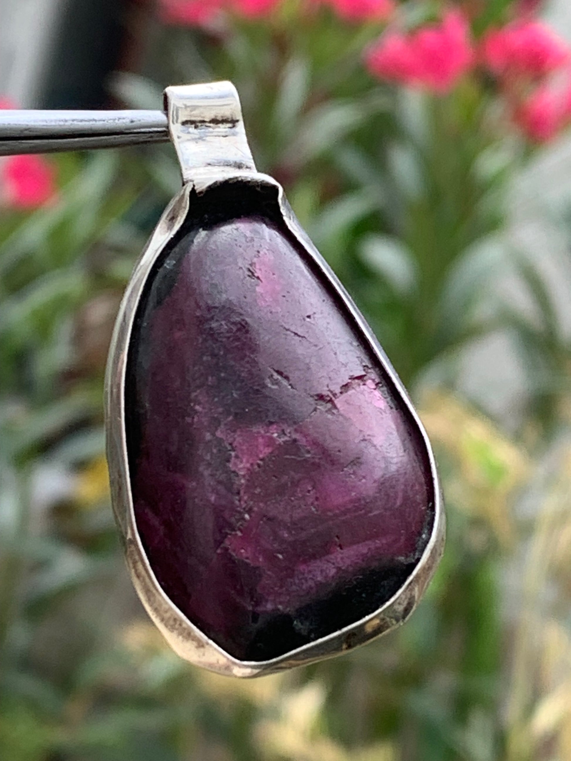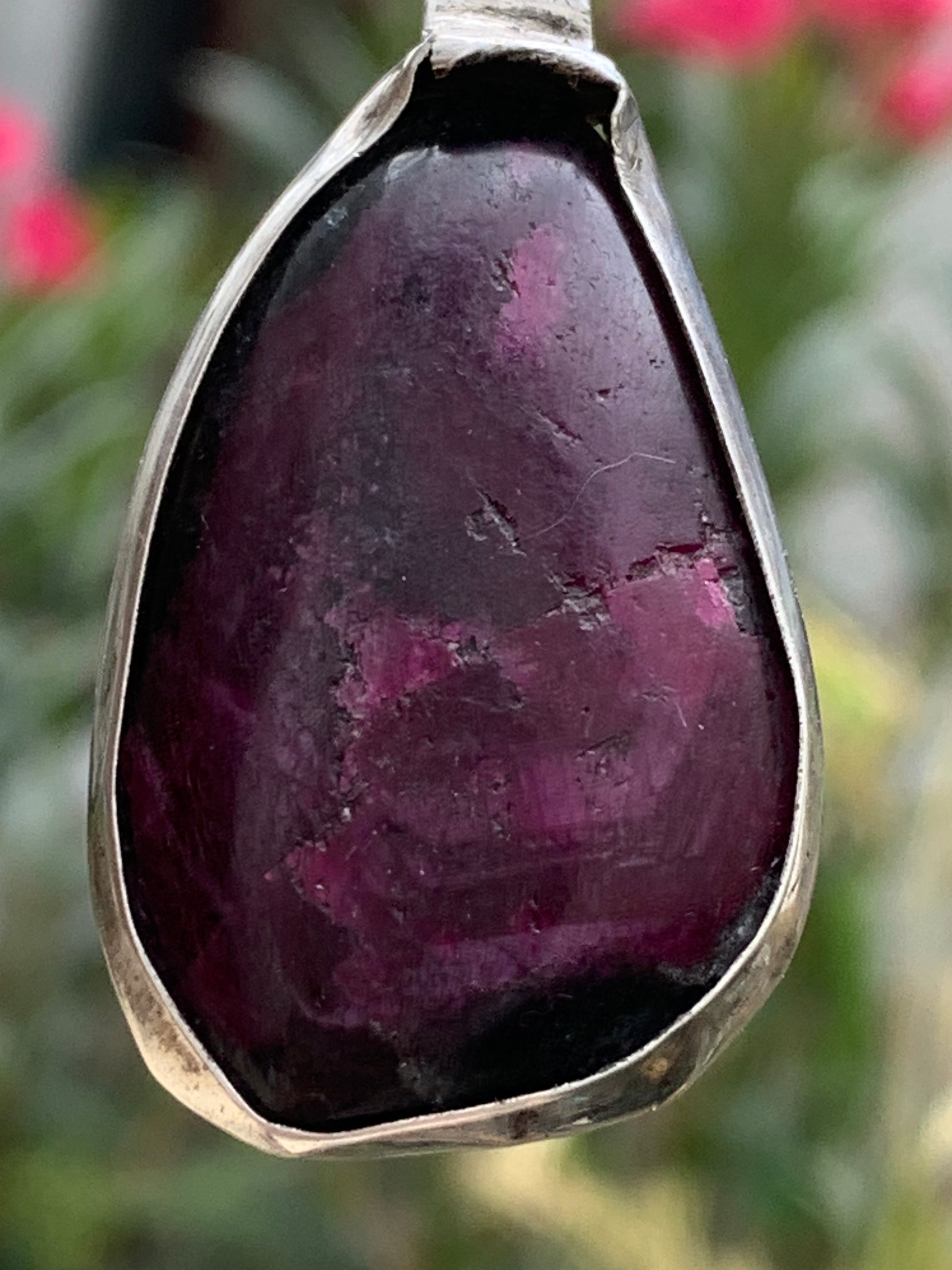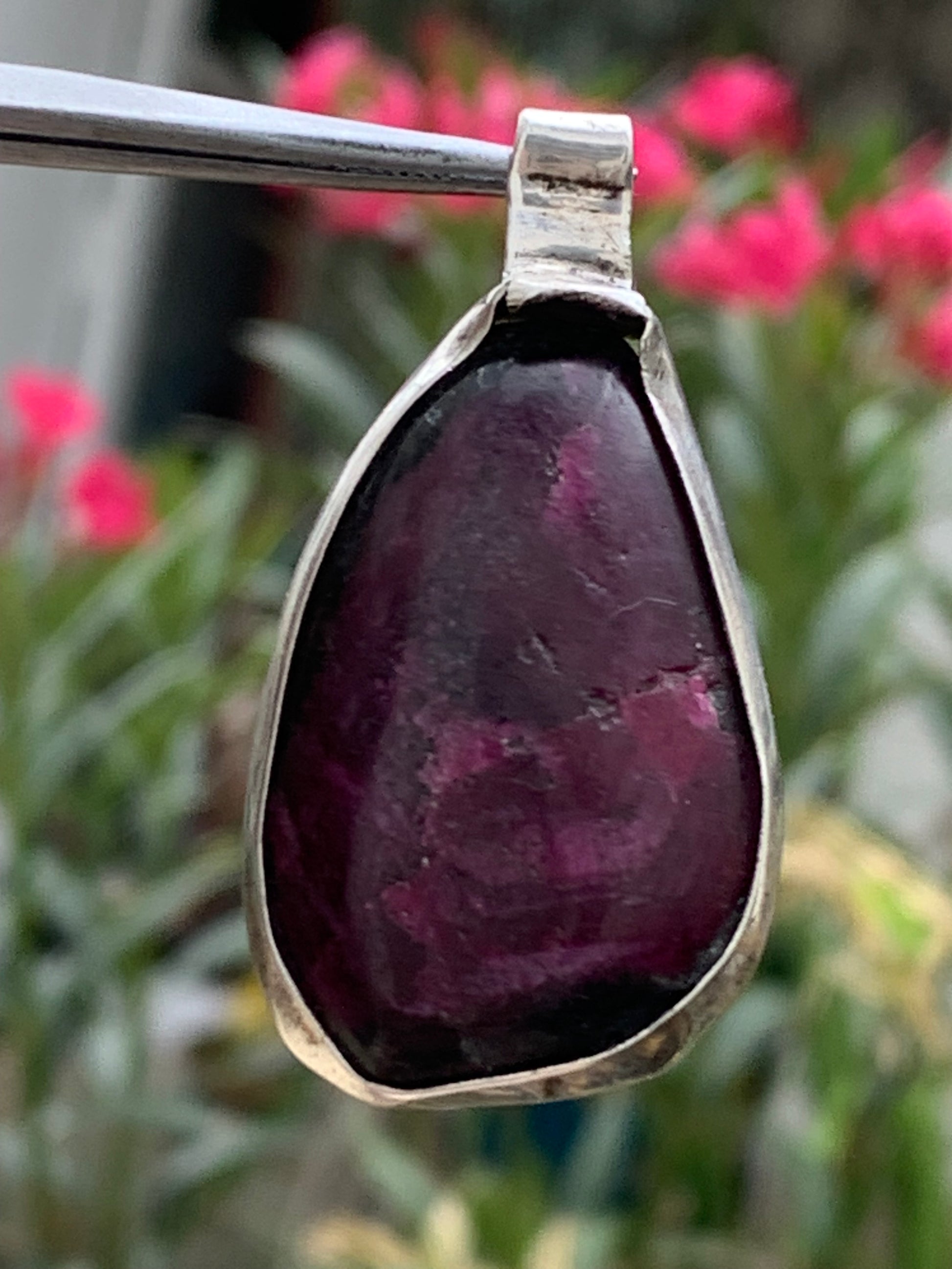Rubis d'Inde, coeur de rubis monté par G & Z, de 48mm de ht x27 x7. Vendu avec un cordon réglable de couleur noire !