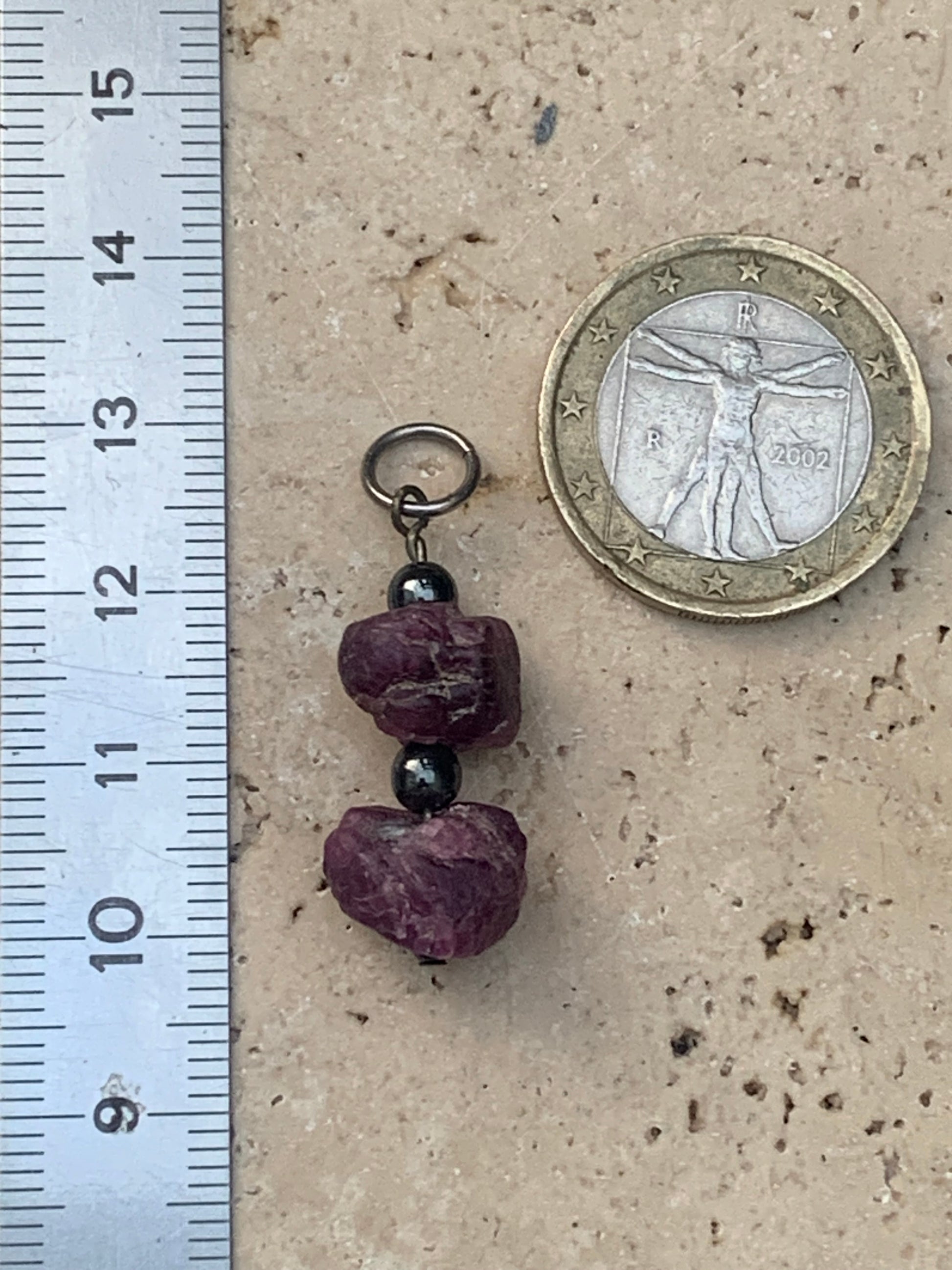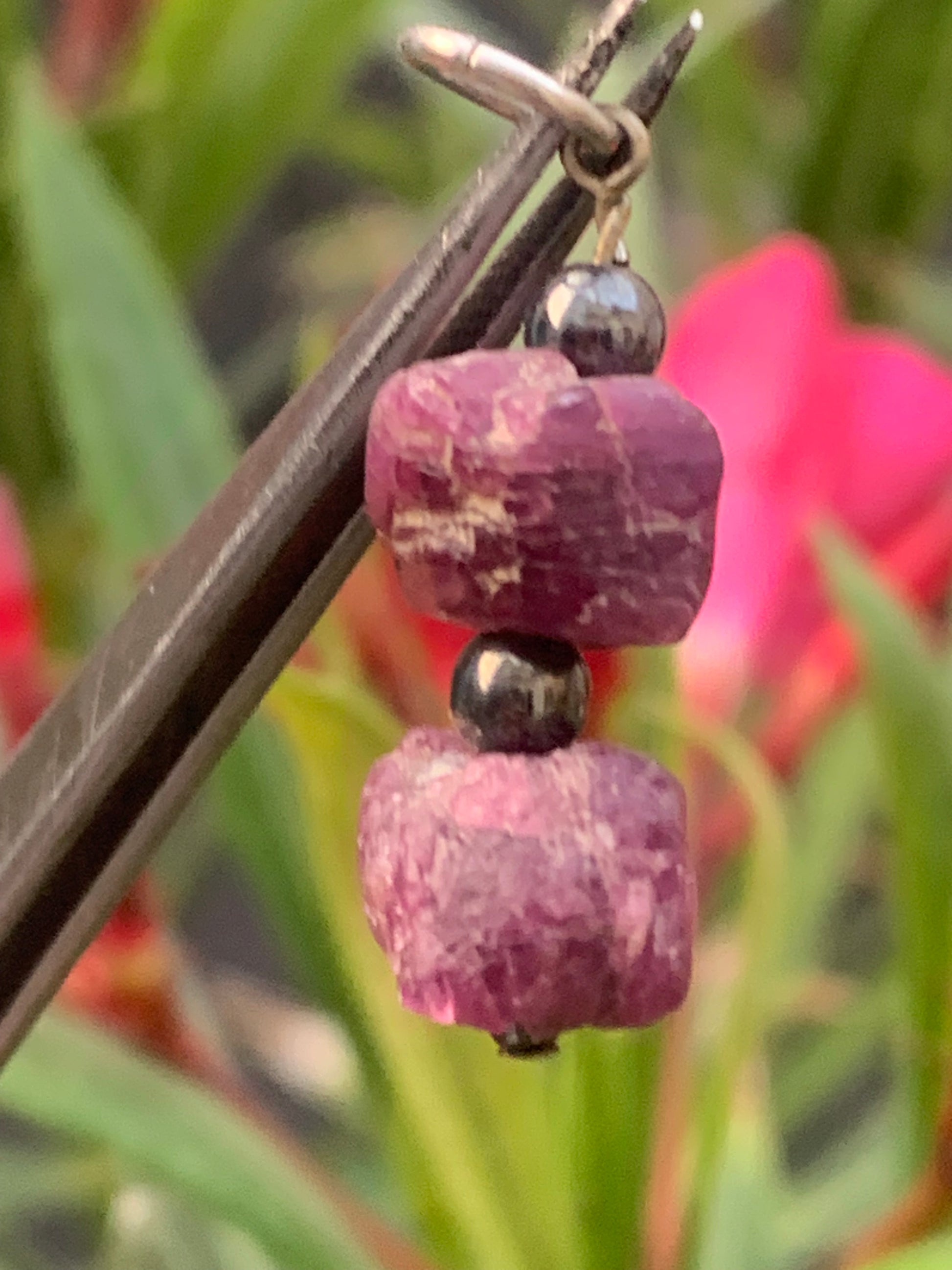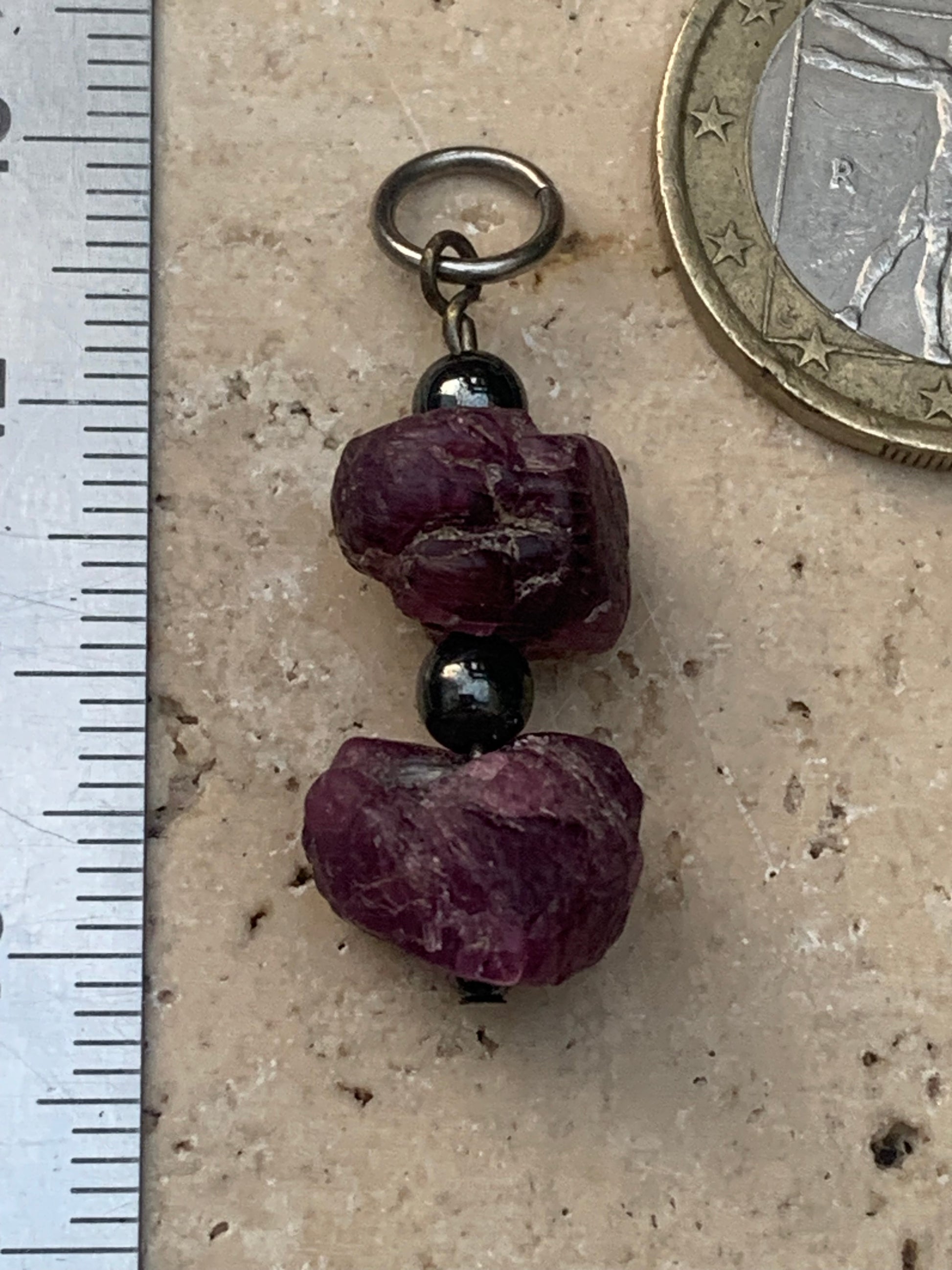 Rubis d'Inde, corindon naturel monté par G & Z, de 32 mm de ht x12 x10. Vendu avec un cordon réglable de couleur noire !