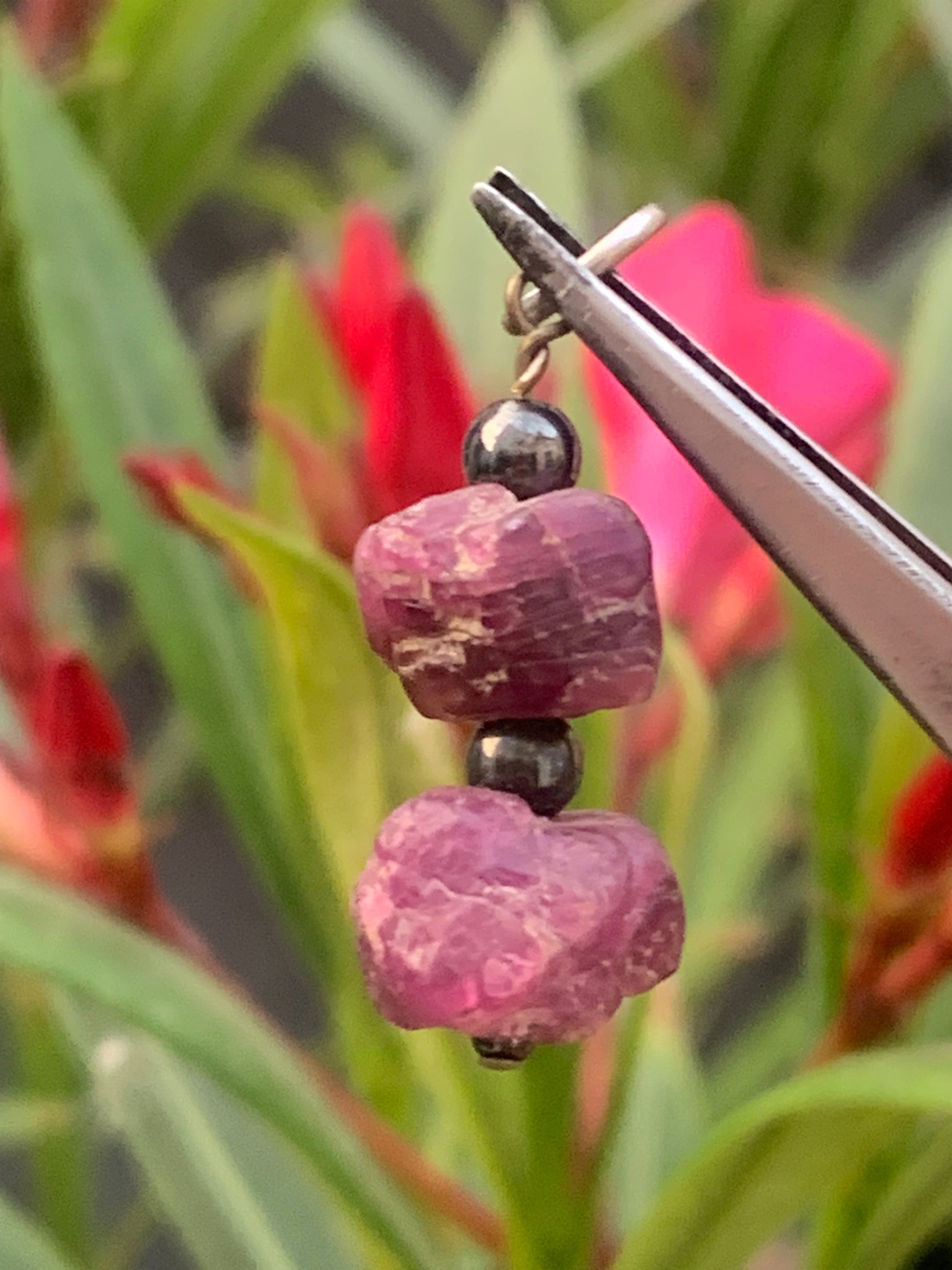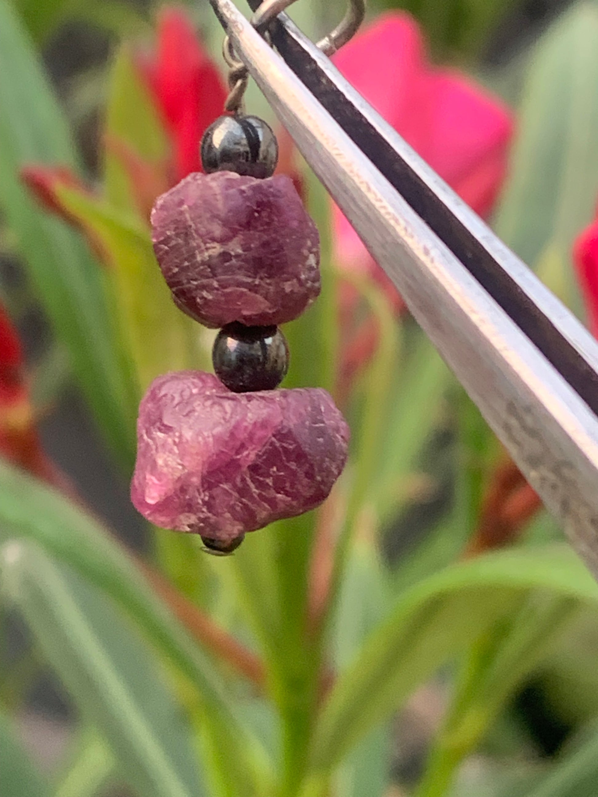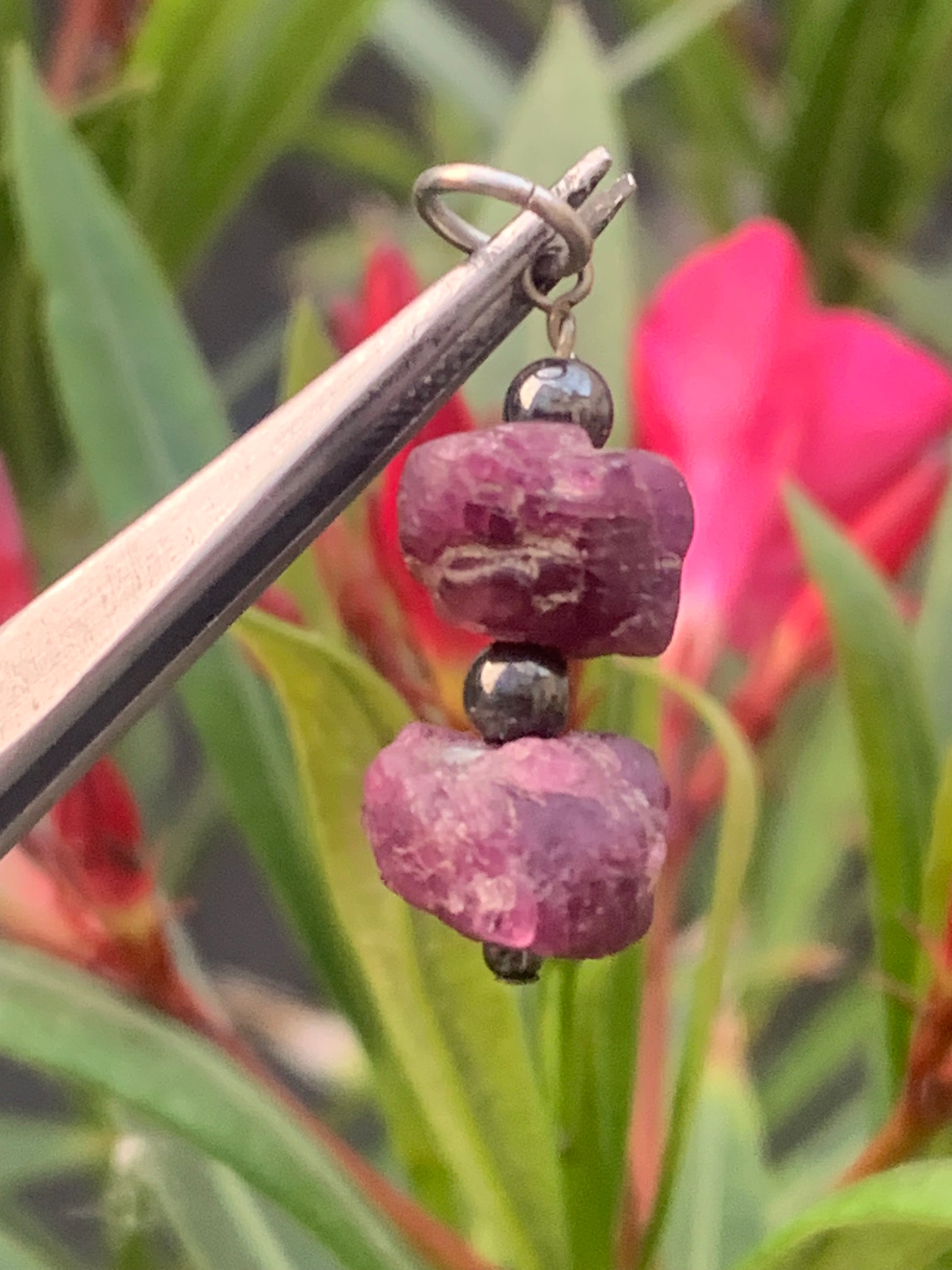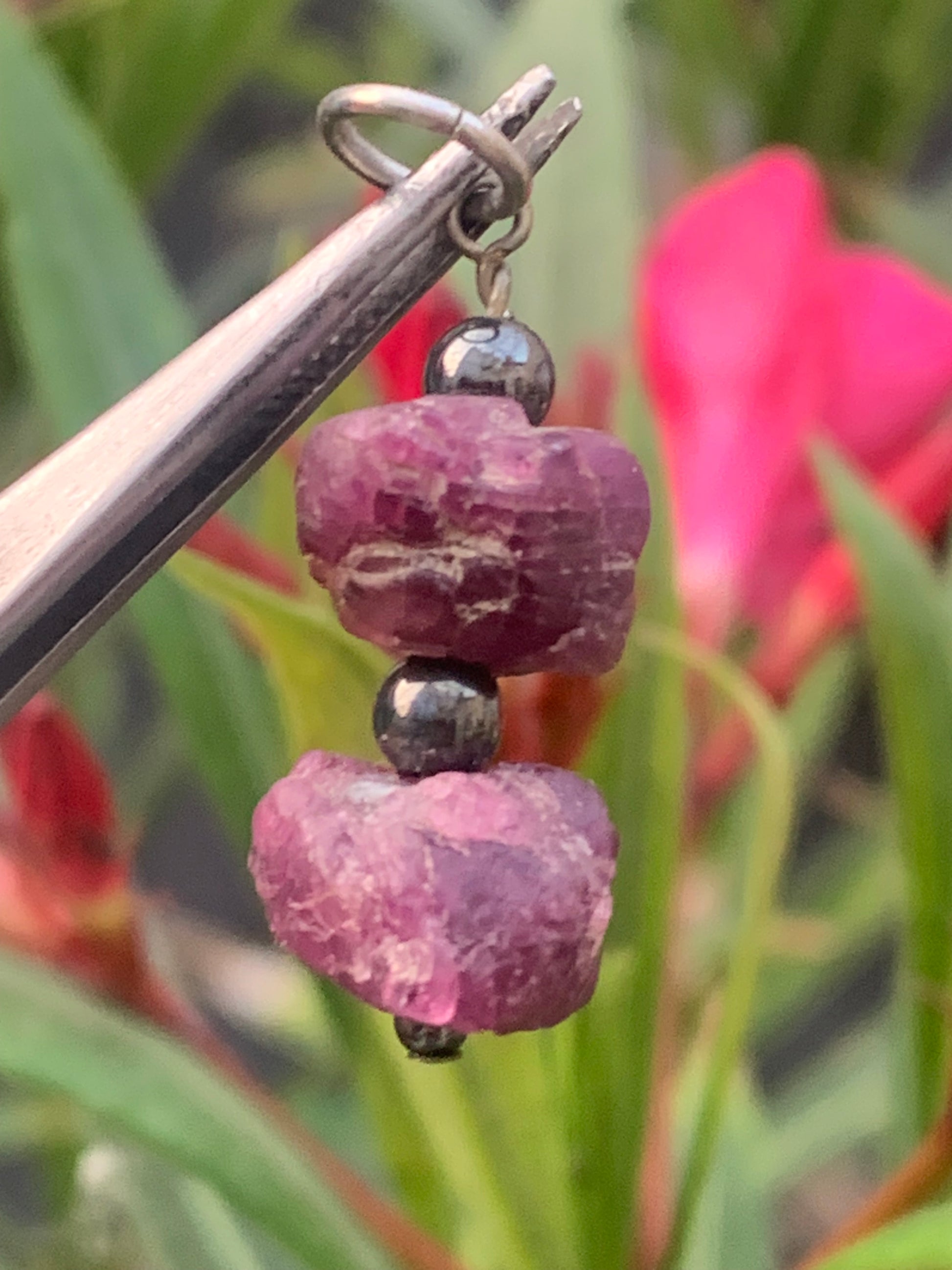 Rubis d'Inde, corindon naturel monté par G & Z, de 32 mm de ht x12 x10. Vendu avec un cordon réglable de couleur noire !