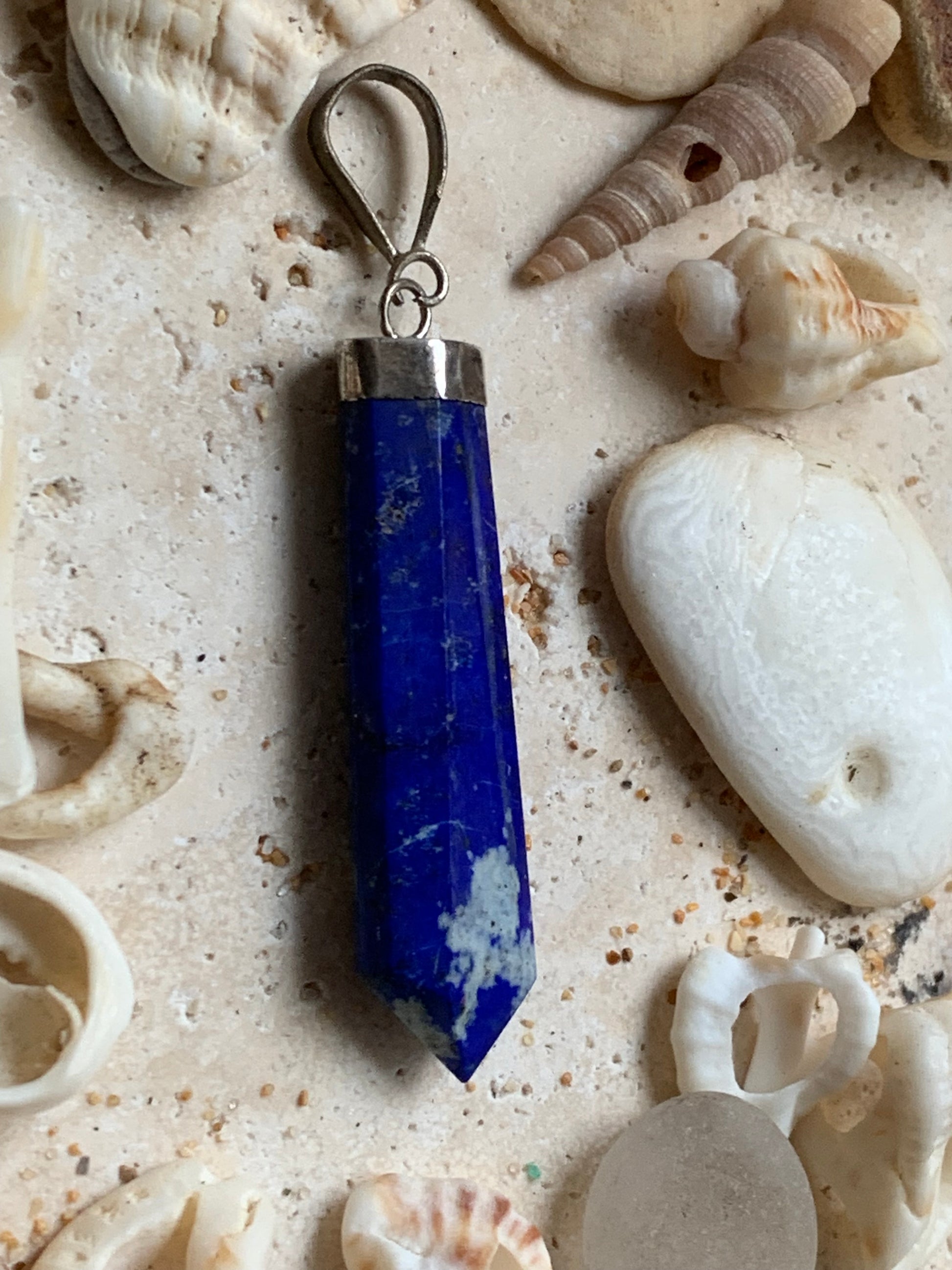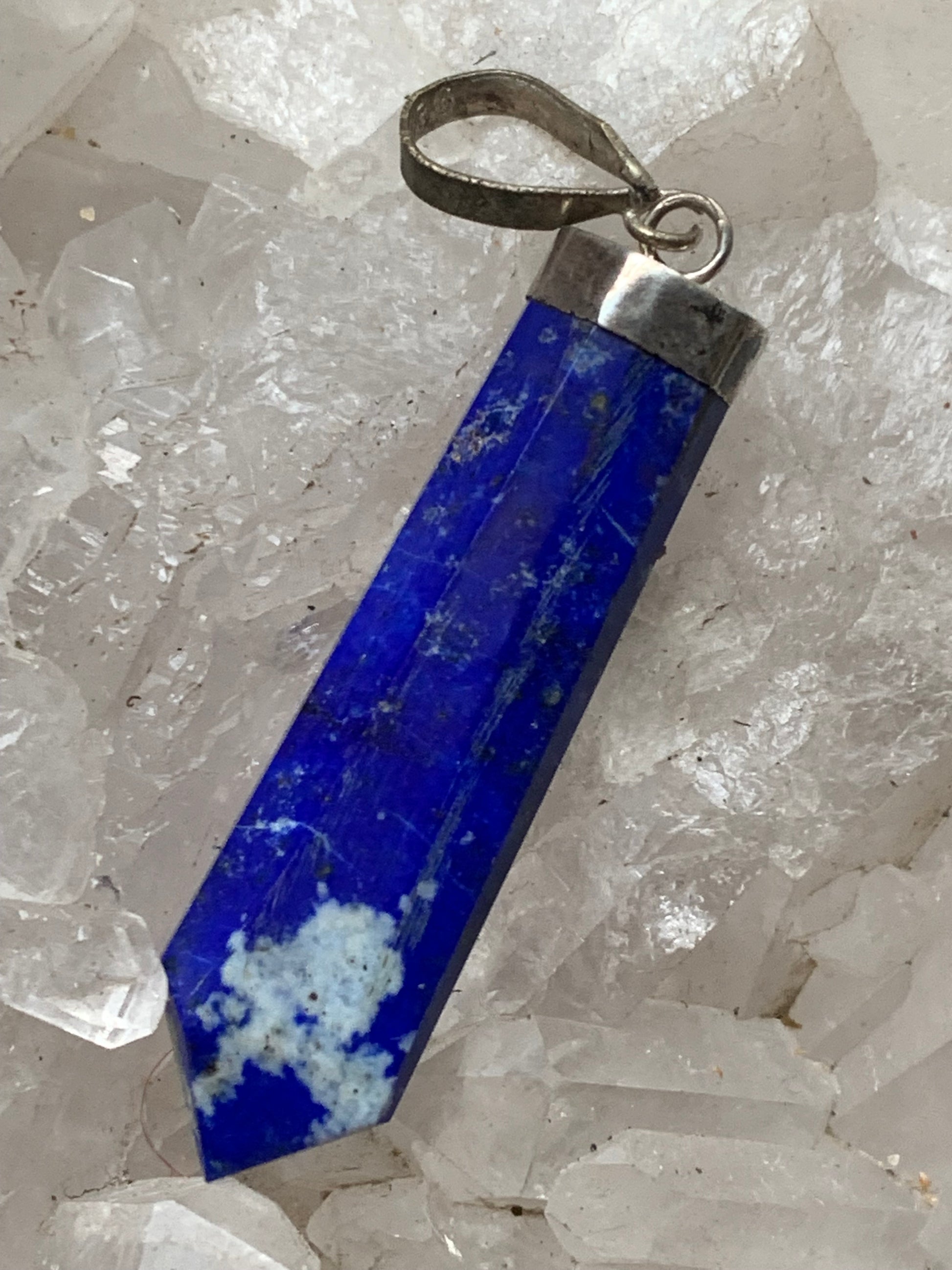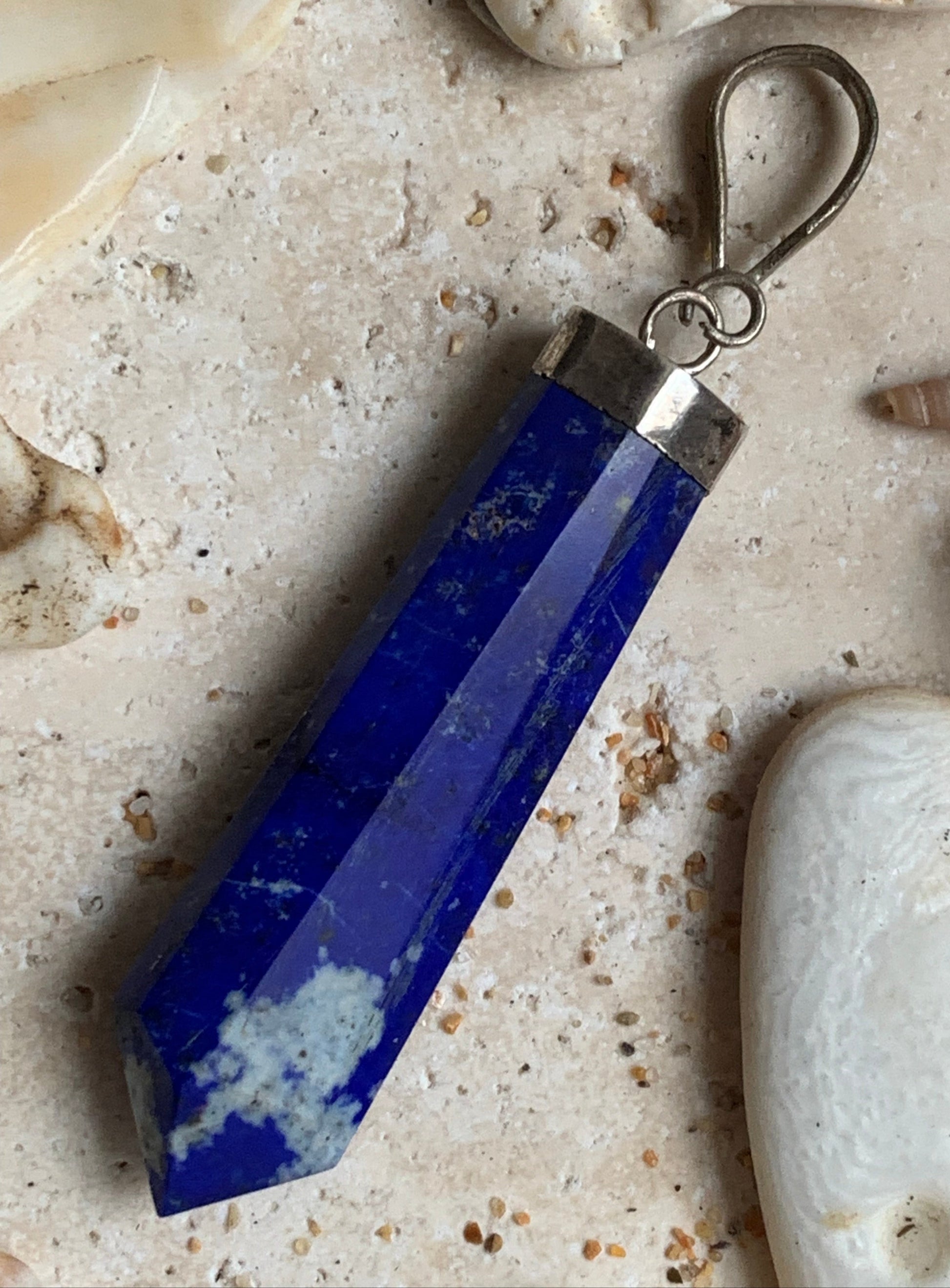 Lapis lazuli, pièce unique en Argent de 52 millimètres de hauteur x 11 millimètres de largeur x 6 d'épaisseur. Vendu avec un cordon réglable de couleur noire !