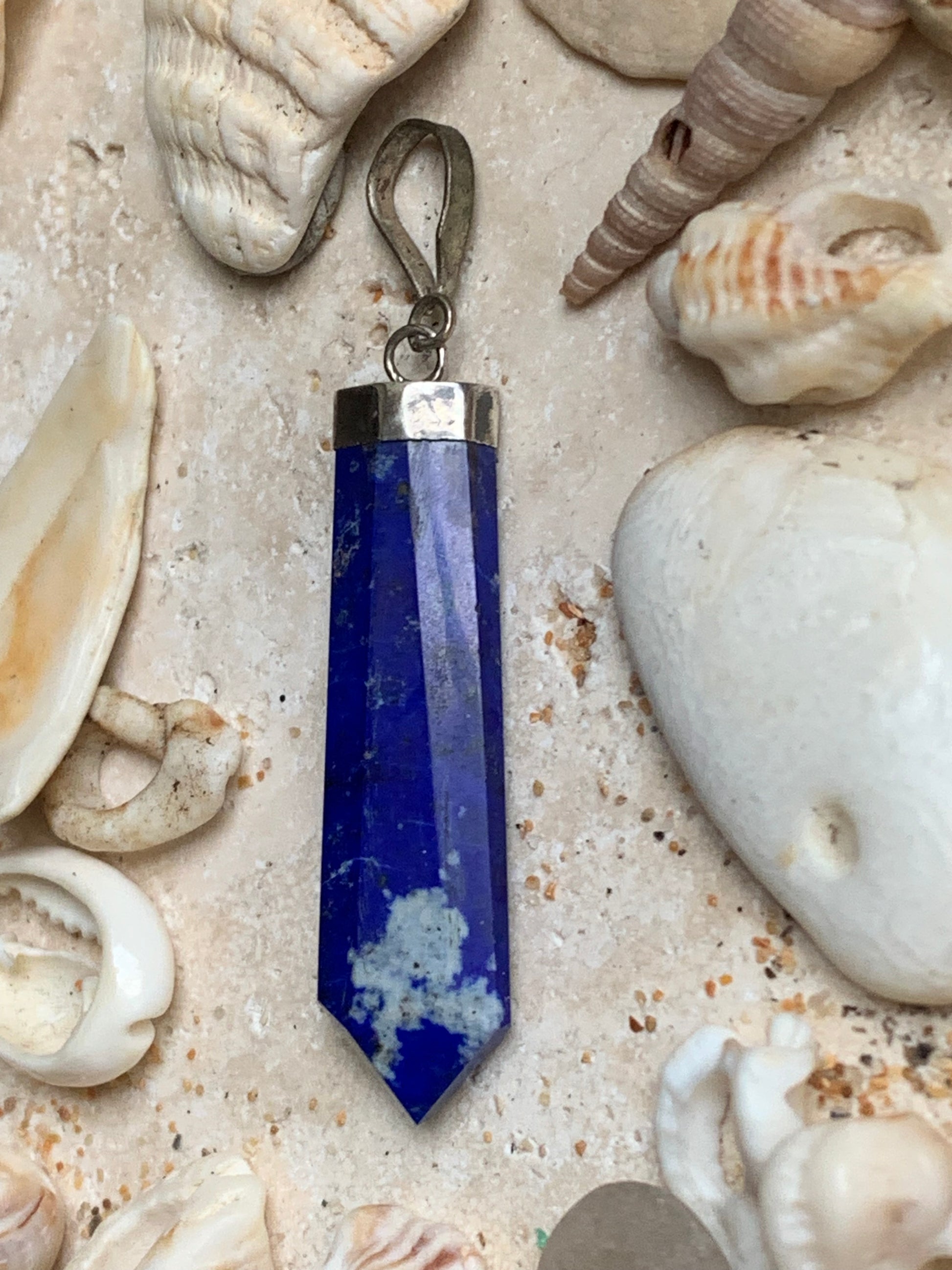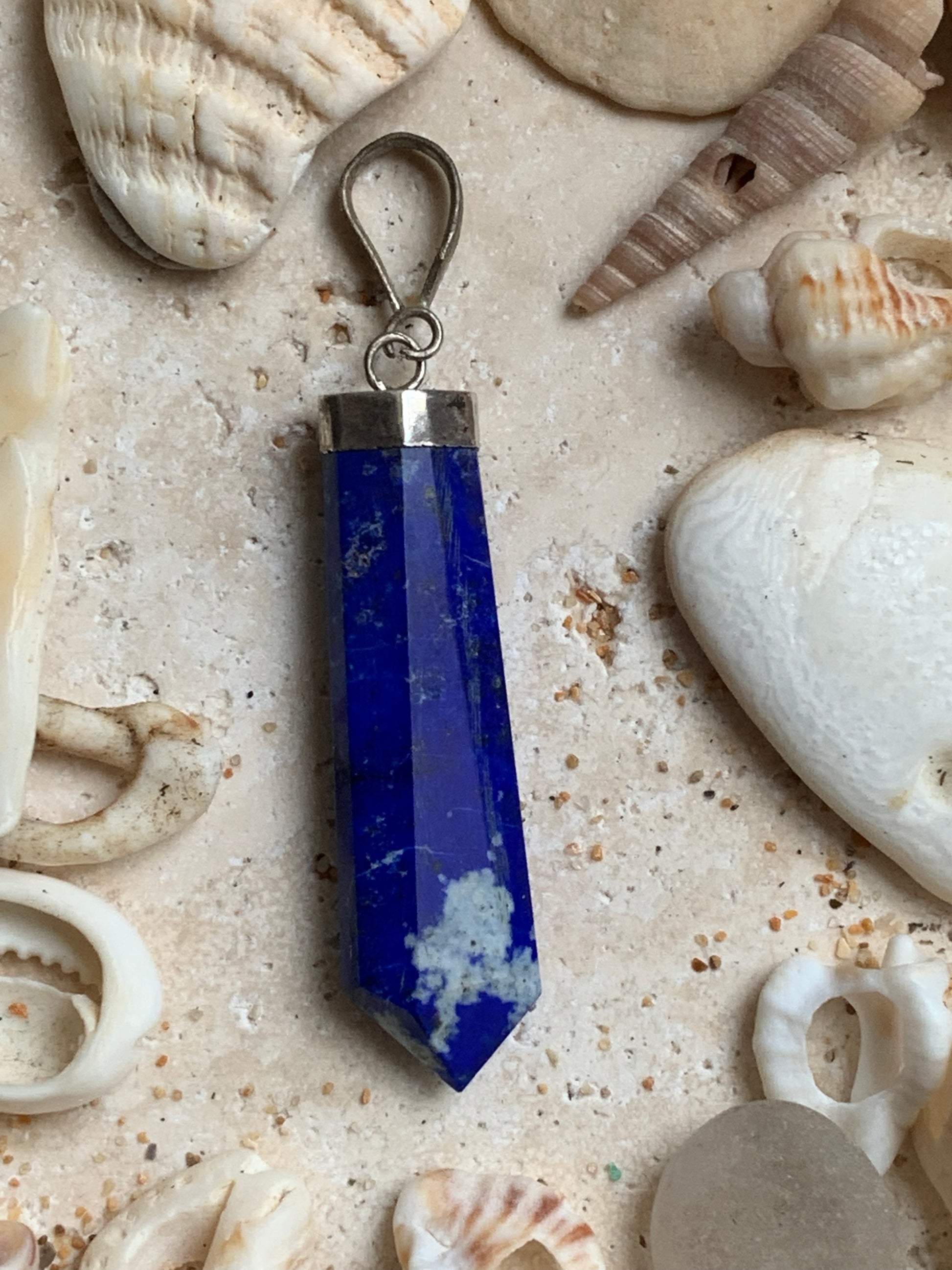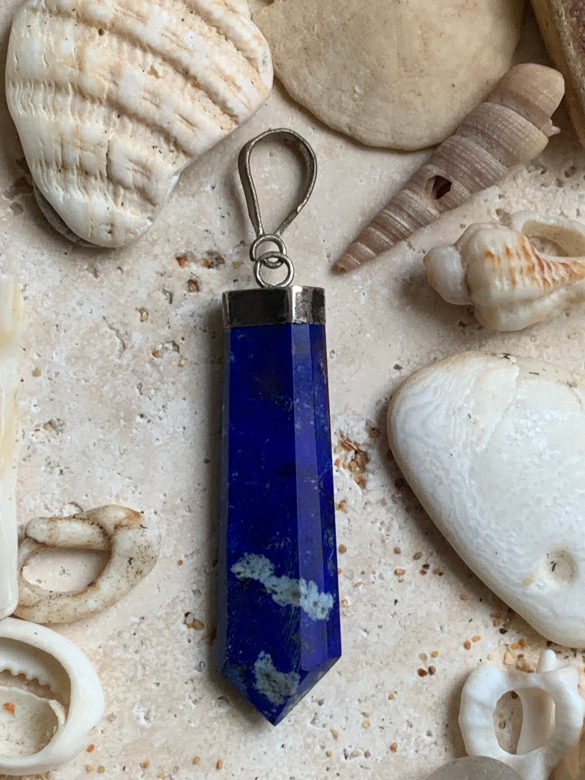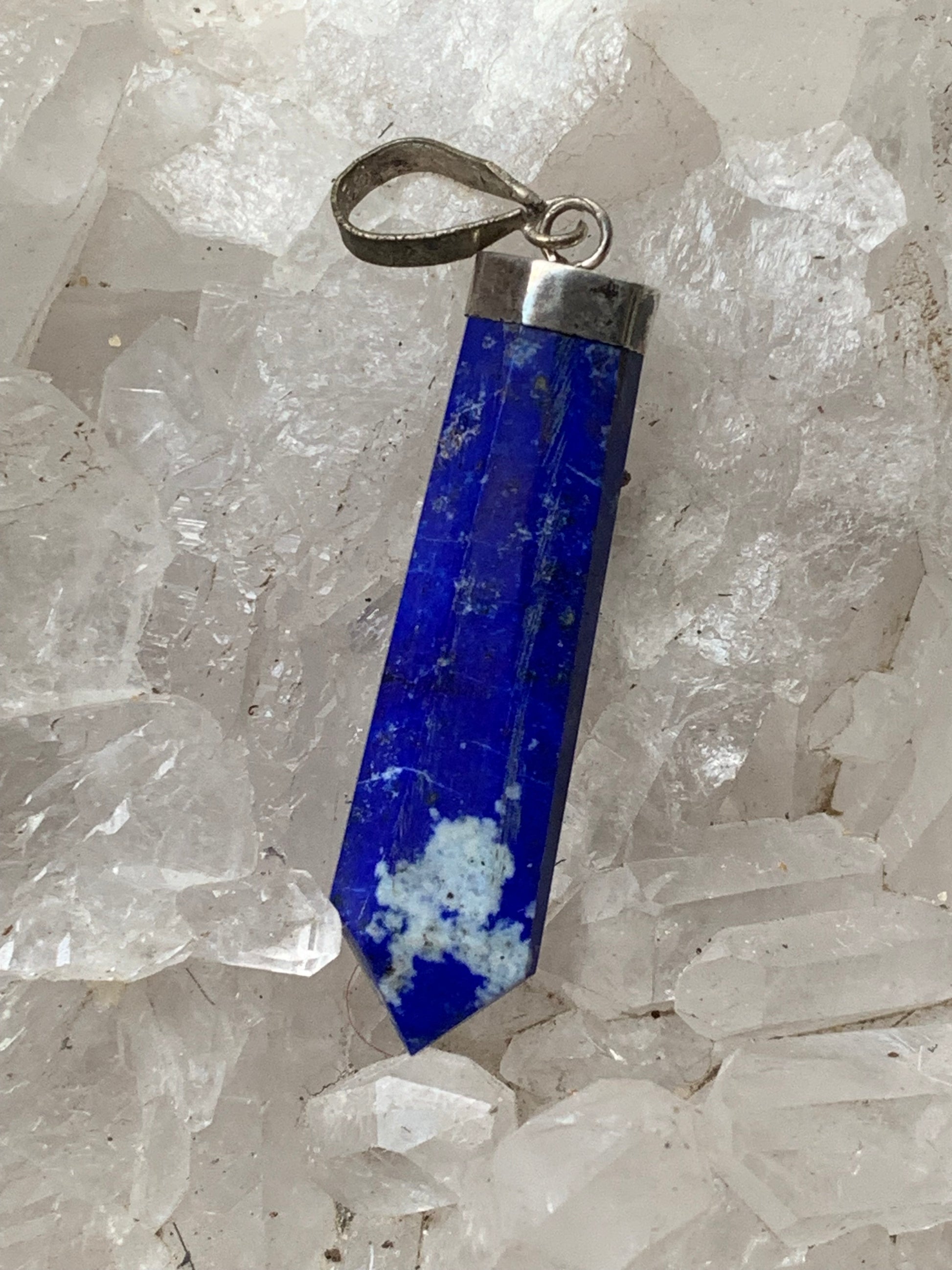 Lapis lazuli, pièce unique en Argent de 52 millimètres de hauteur x 11 millimètres de largeur x 6 d'épaisseur. Vendu avec un cordon réglable de couleur noire !