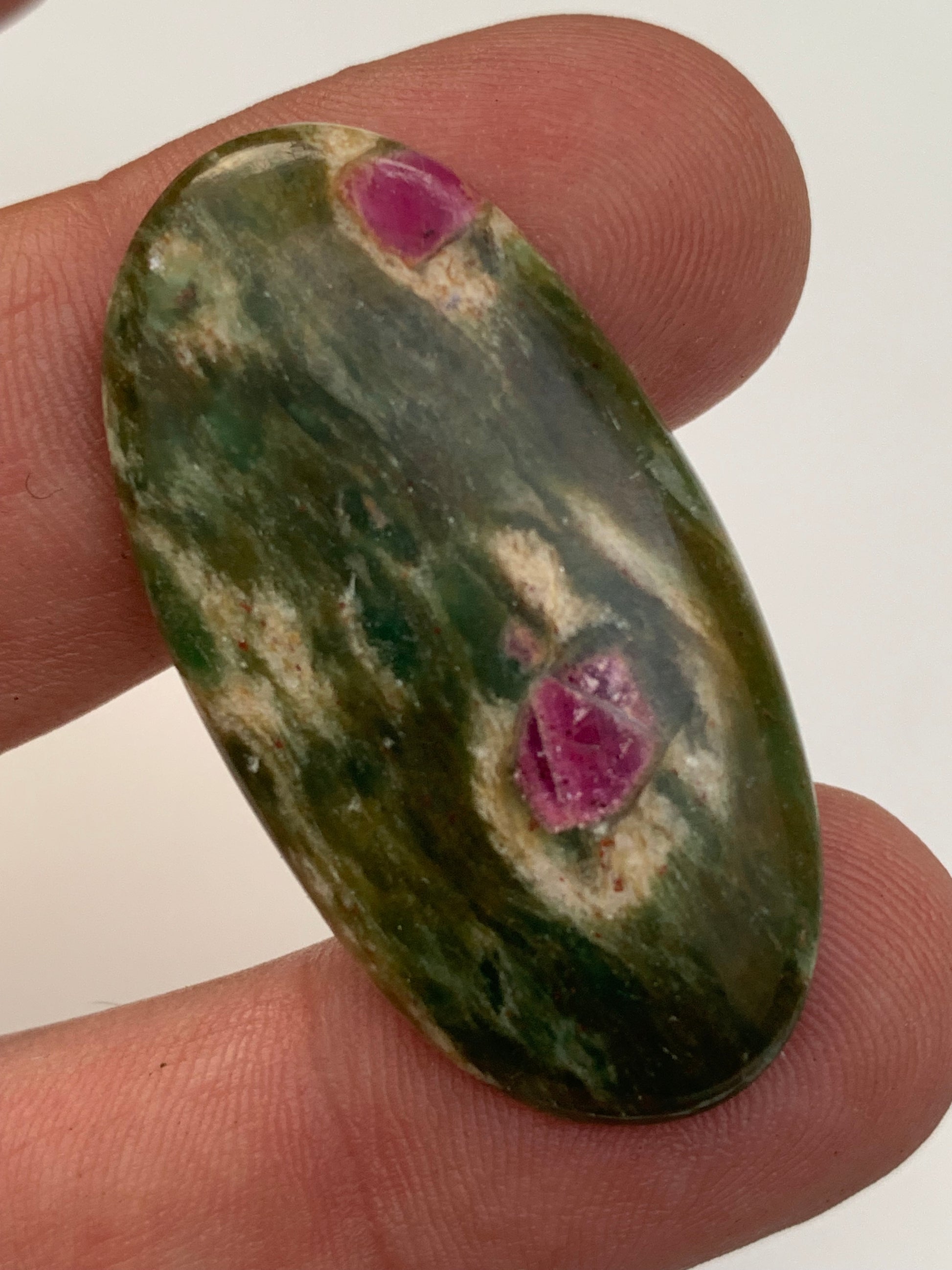 Rubis Fuchsite, cabochons au choix de 2,1 à 13,2 grammes. Taille de 17 à 48 mm. Parfait en collection, bijouterie, exposition...