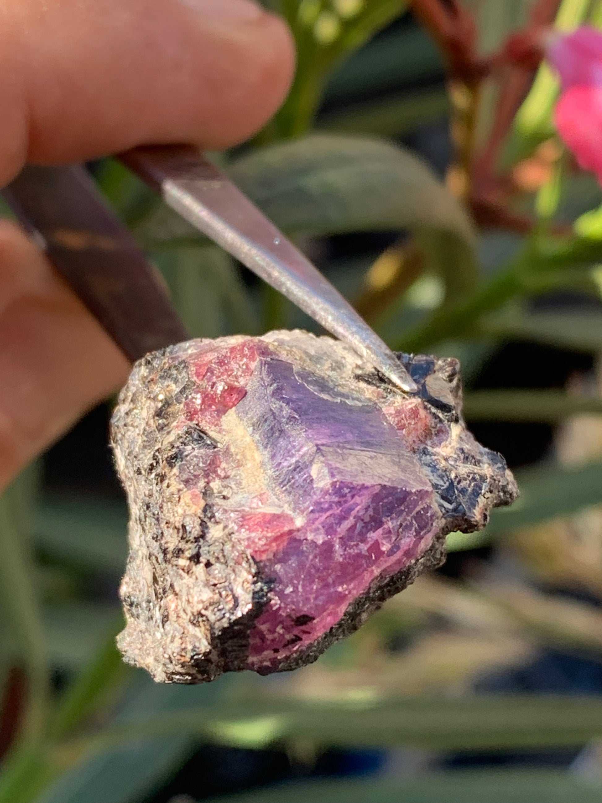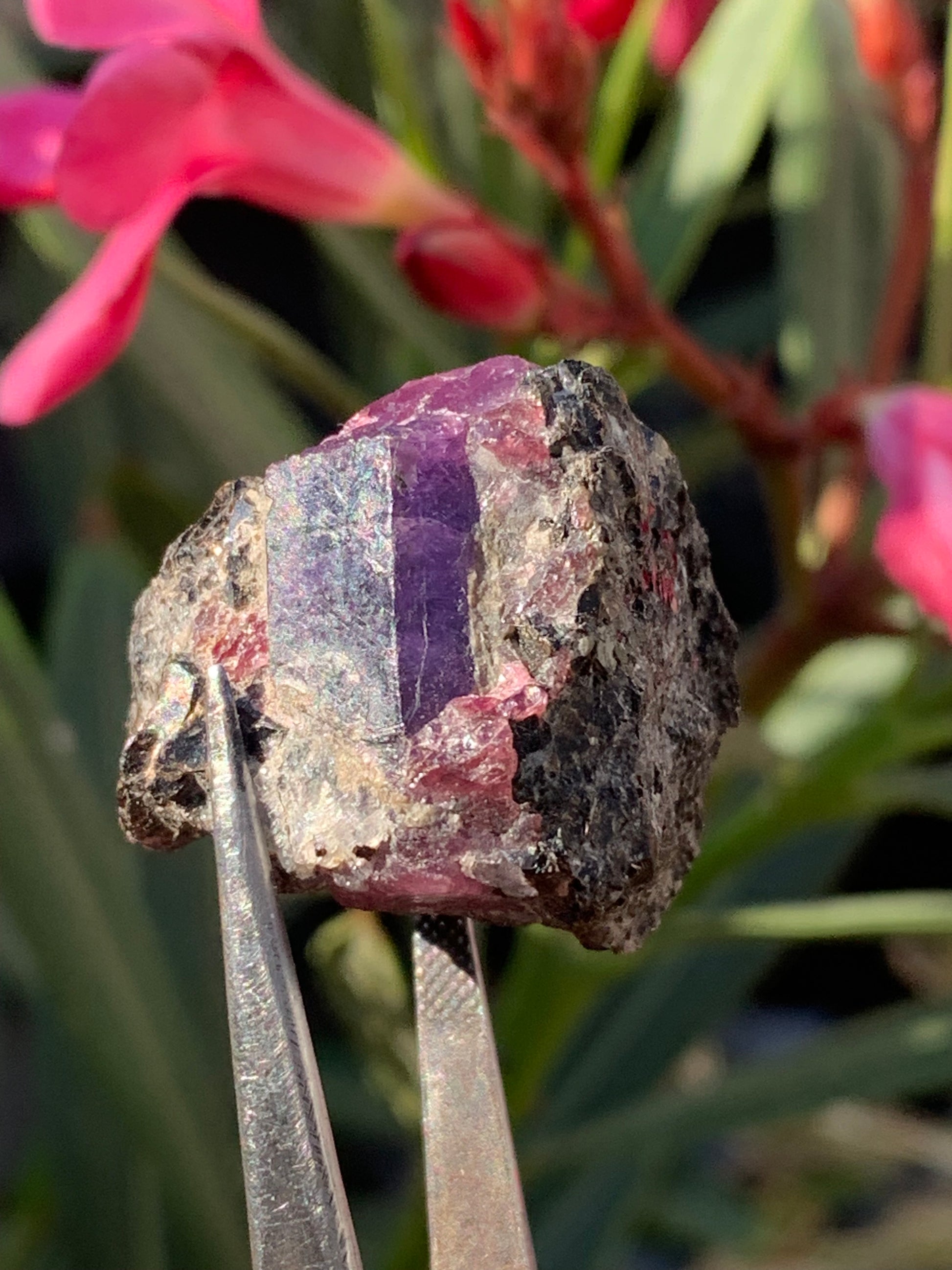 Rubis sur gangue de Zoisite, 27mm x23 x 20 - 17,1 grammes. Parfait en collection, exposition, lapidage...