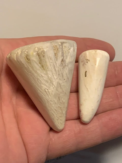 Scolécite (famille des zéolites) – 2 cœurs de druses polis au choix ! Qualité AA à AAA
