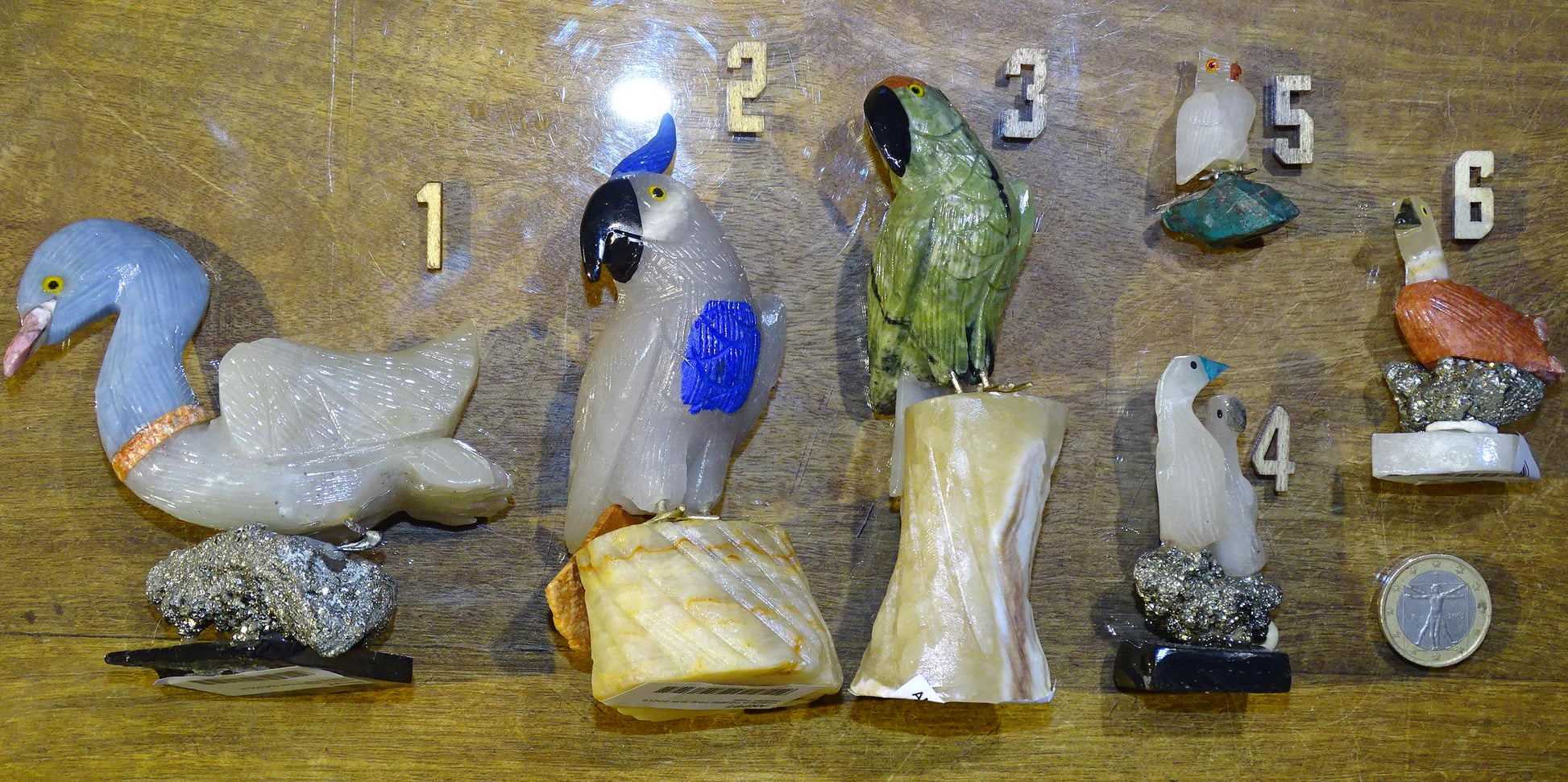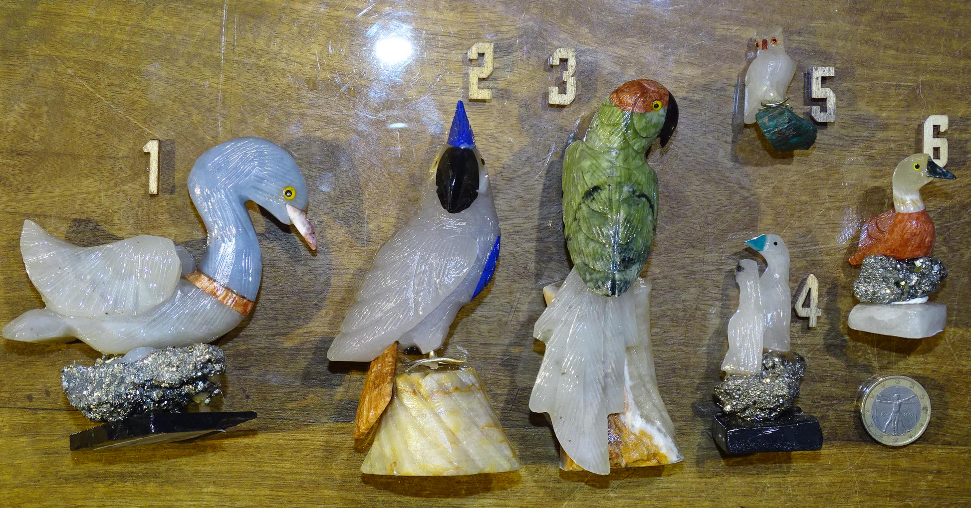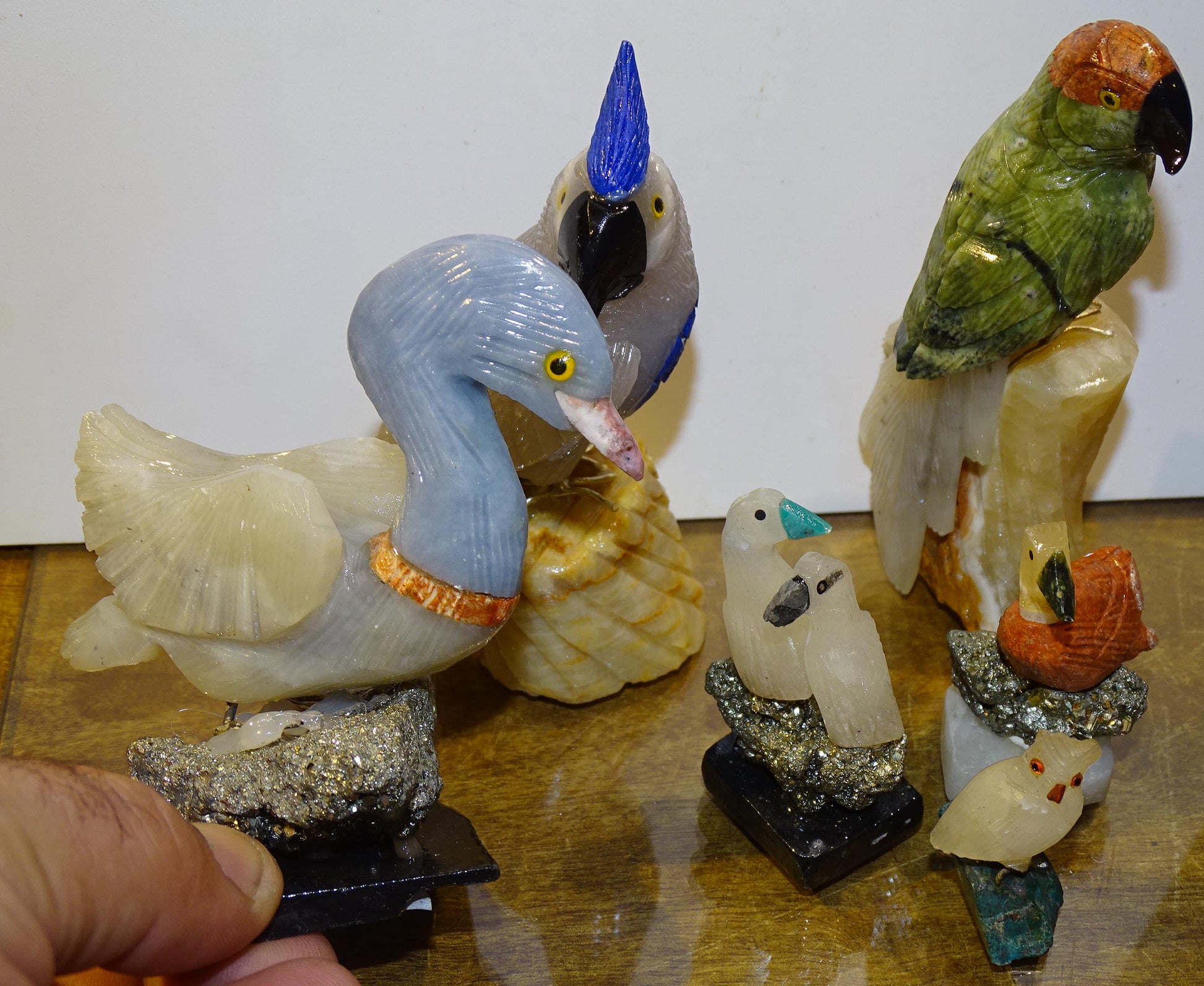 Sélection au choix de jolies petites sculptures d'oiseaux en pierres, "cygne, perroquet, canard"... fait main, très belles finitions !