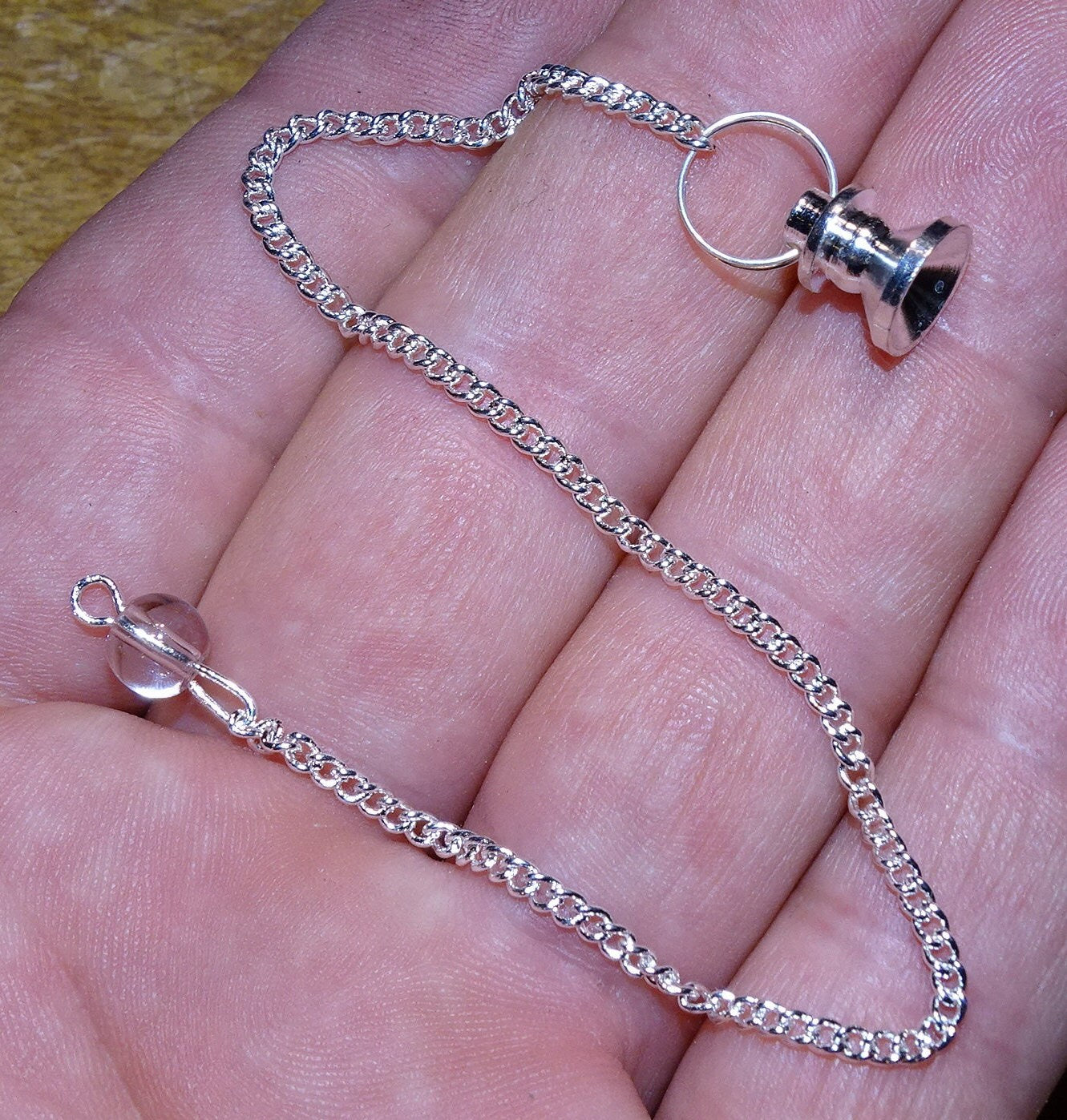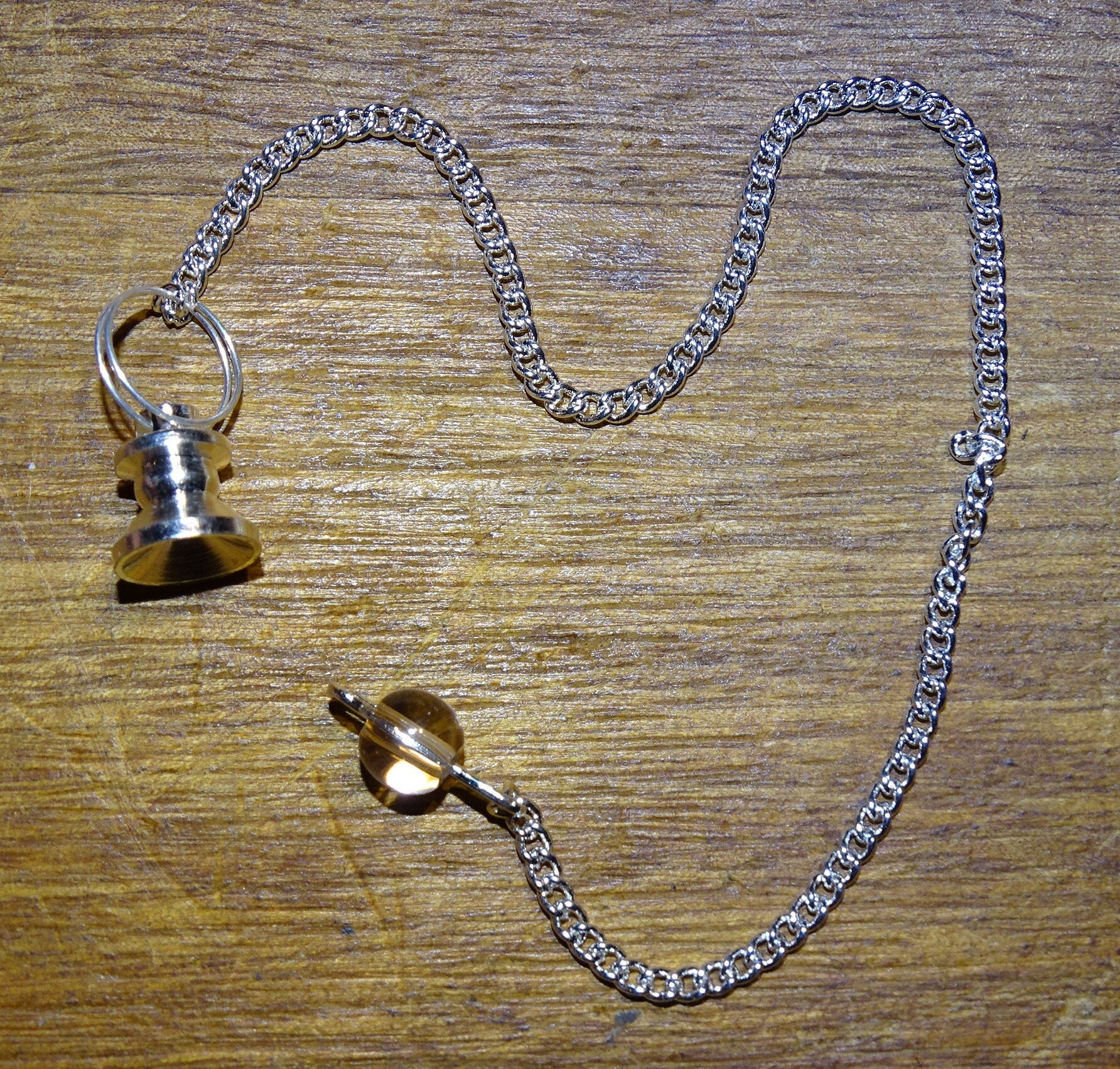 Pendule à chaîne | Métal, laiton, argent | Radiesthésie générale, recherche d’eau, objets perdus | Débutant à Pro | Chaîne ajustable pour la longueur du bras |