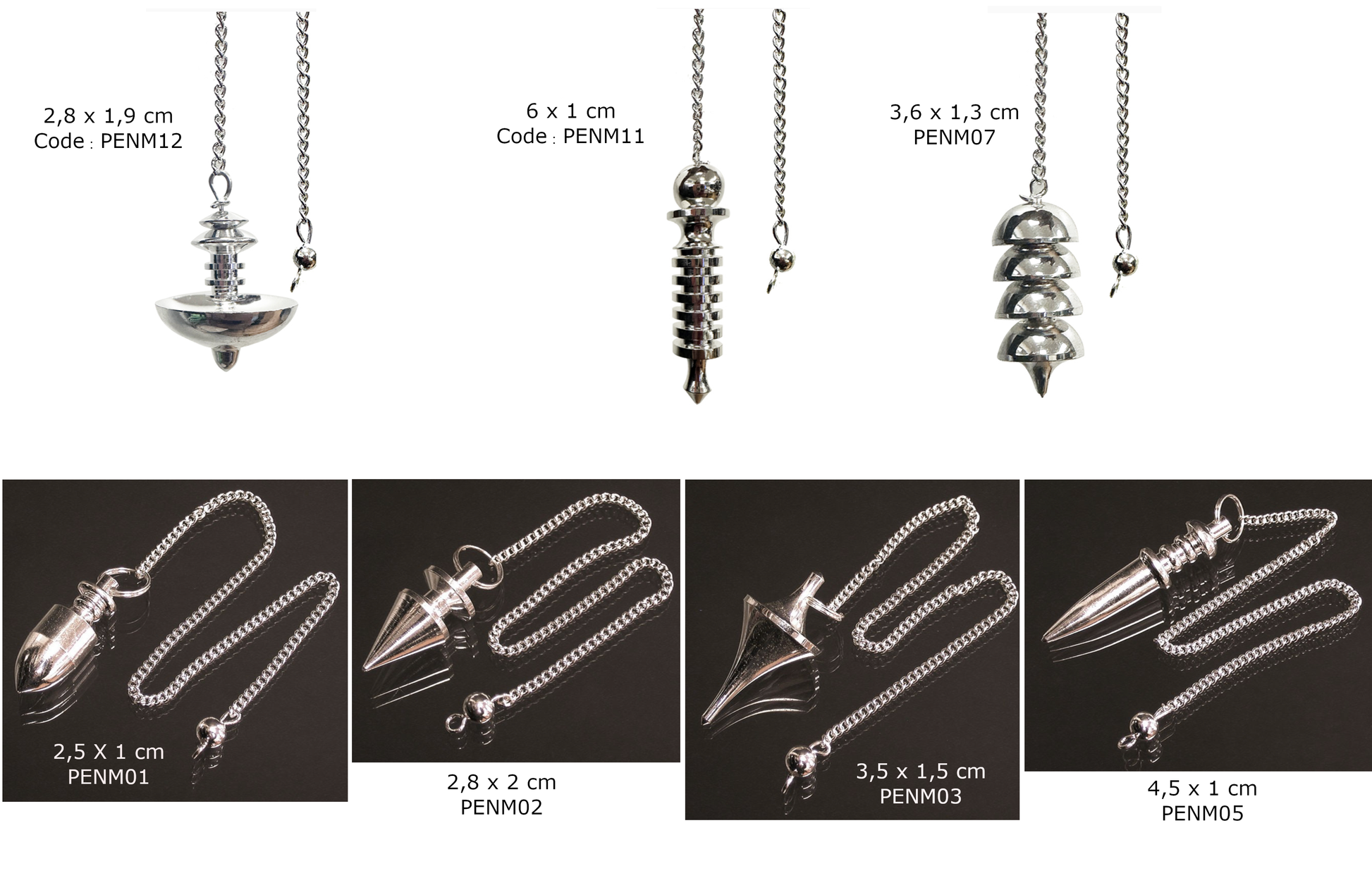 Sélection de pendules 100% métal 'haute résistance', modèles au choix. Pour radiesthésie en professionnel ou débutant !