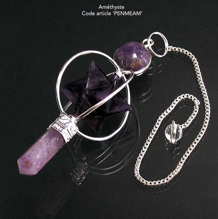 Pendule en cristal | Quartz, améthyste, sélénite | Amplification des énergies, divination | Débutant à Pro | Nettoyage énergétique régulier conseillé |
