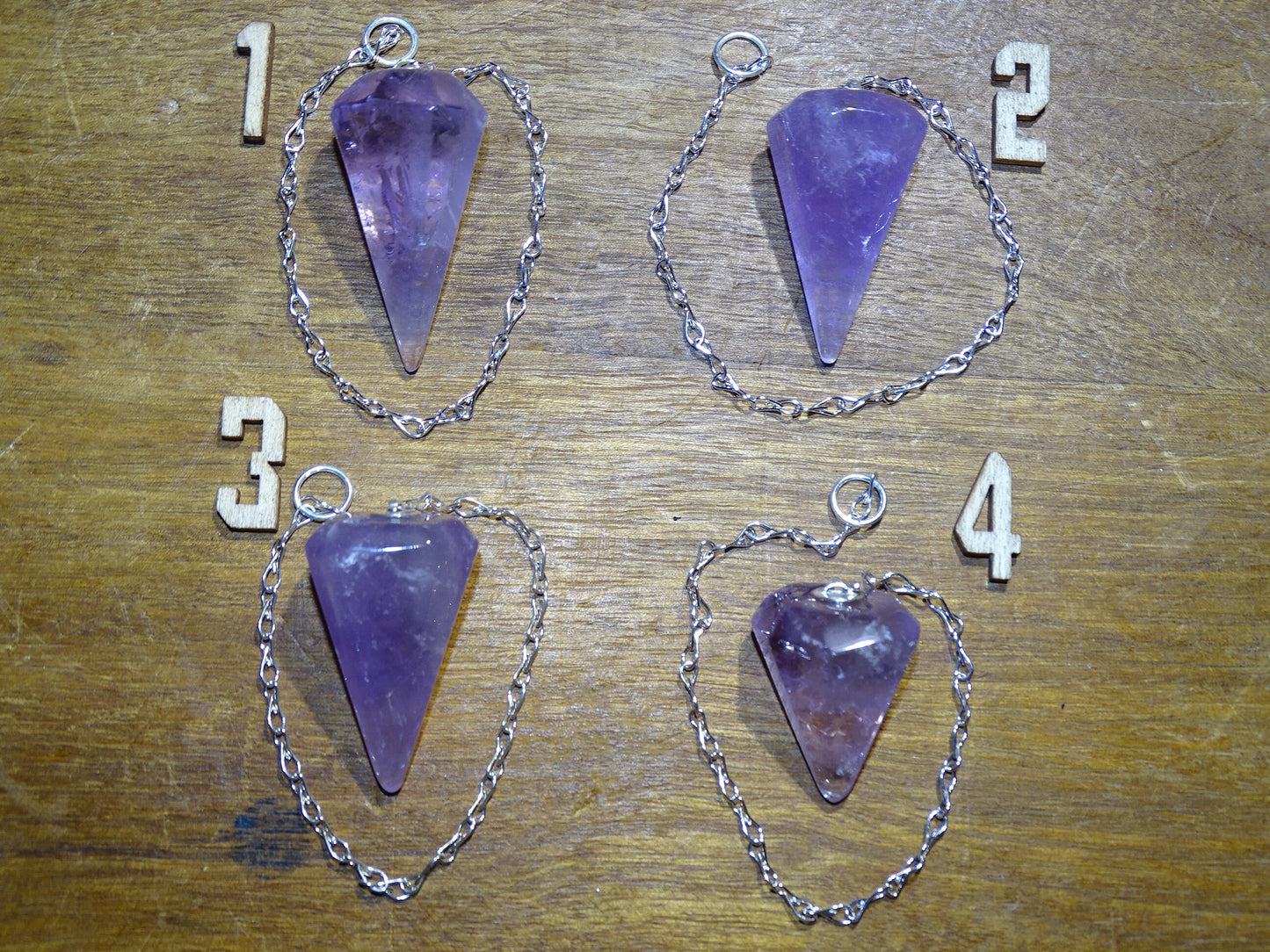 Sélection de pendules à cônes facettés en Amèthyste, pour radiesthésie, pour professionnel ou débutant. Modèles au choix, parfait !