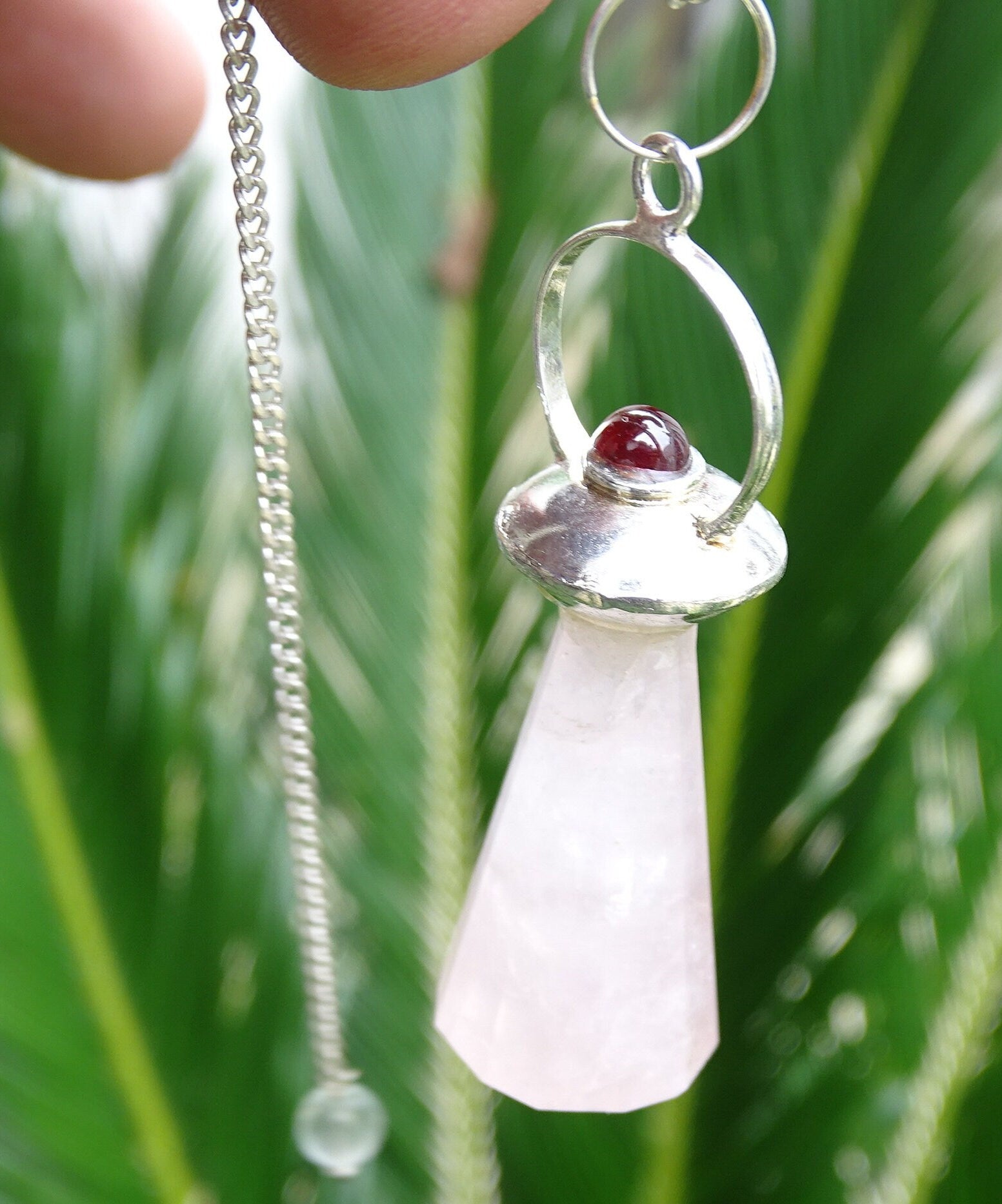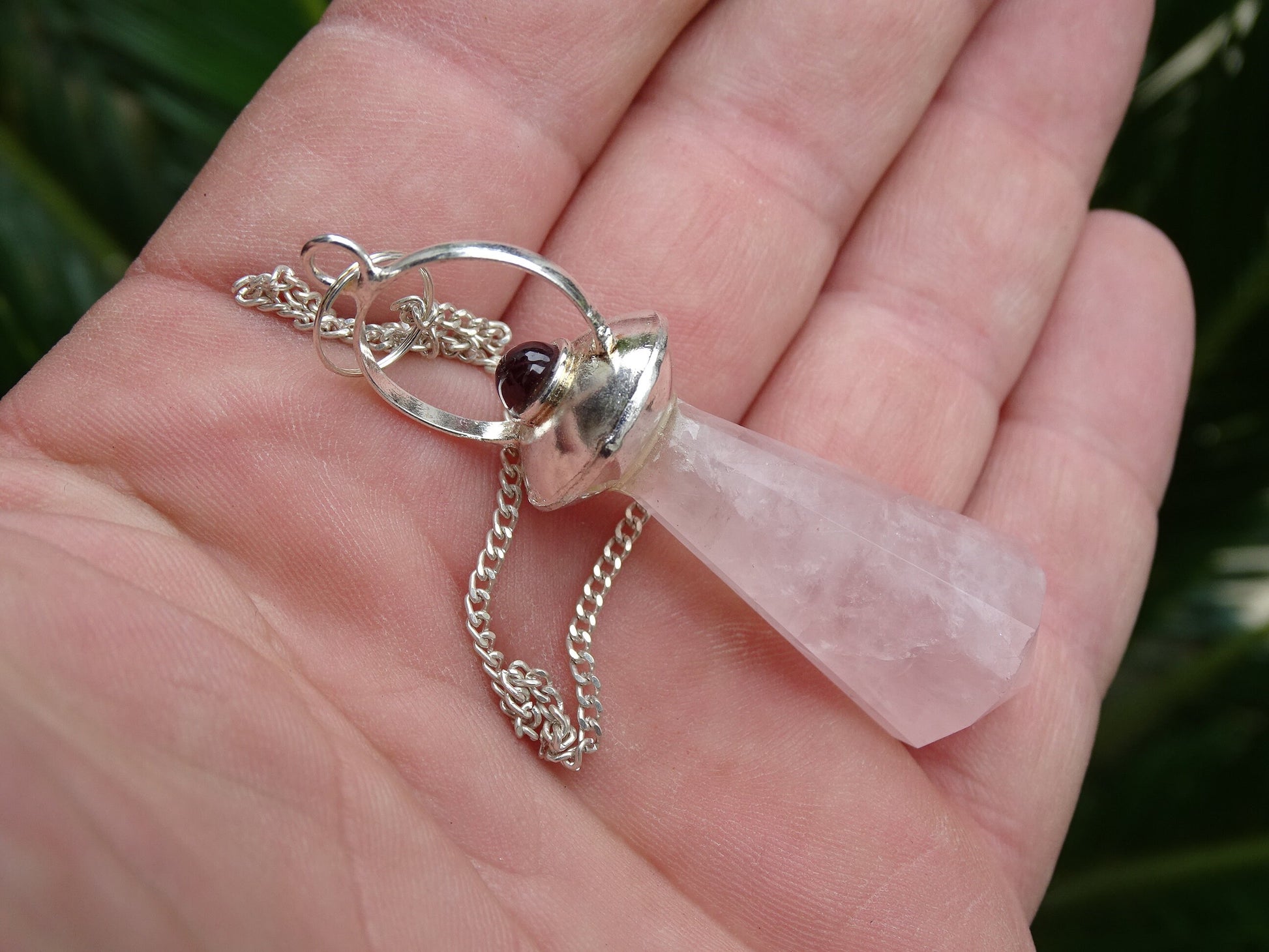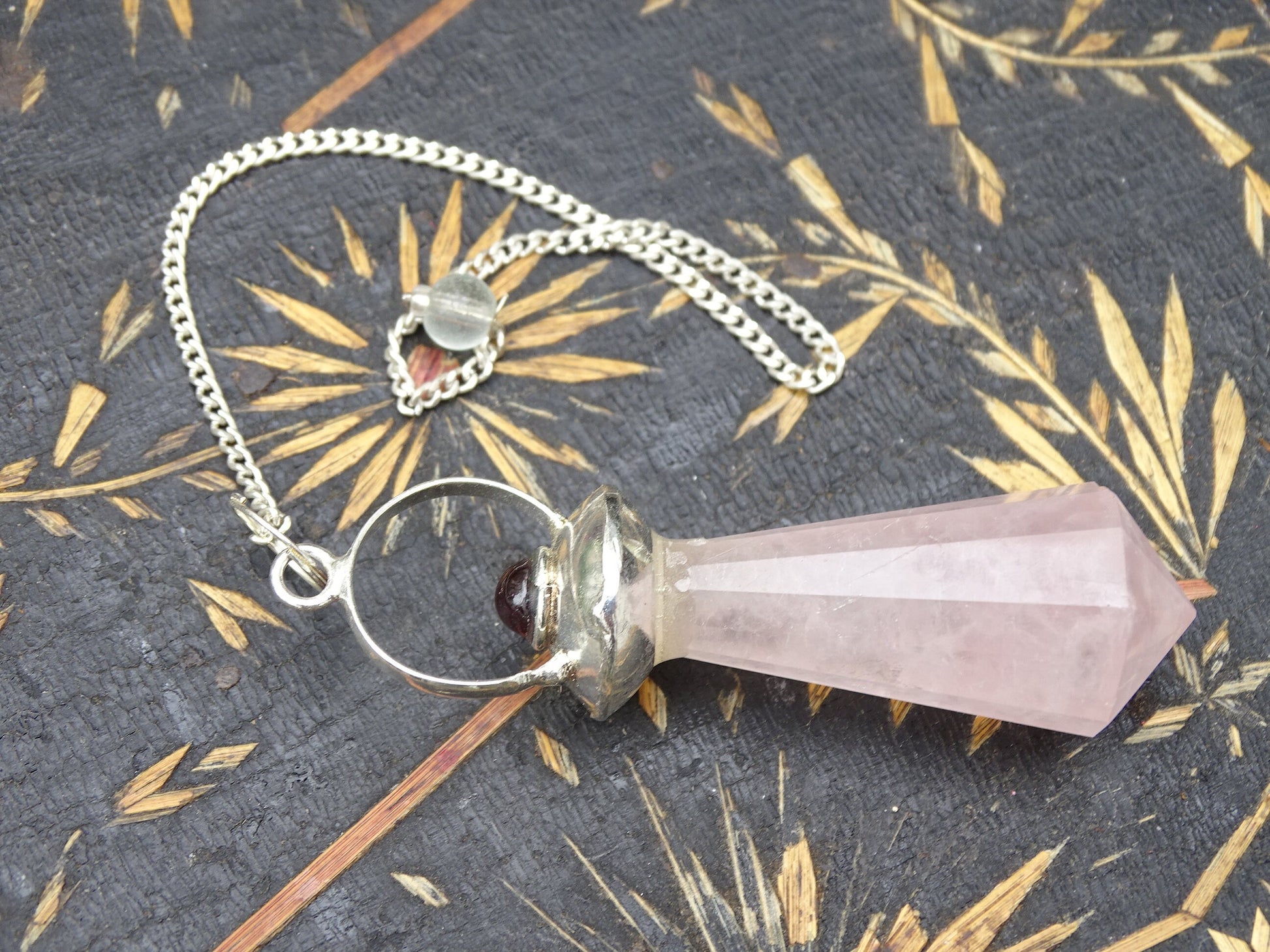 🌳 Type/ Nom : Pendule en métal et en pierre, Cristal de roche, Améthyste, Quartz rose