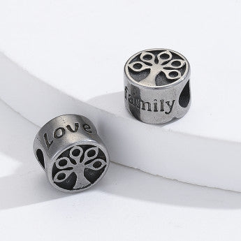 Sélection de perles avec gravures et formes diverses en acier inoxydable de 'haute qualité' pour la création de bracelets, colliers, Mala... De 8 à 20 millimètres - 23 Modèles au choix vendu à l'unité ou par 5 pièces !