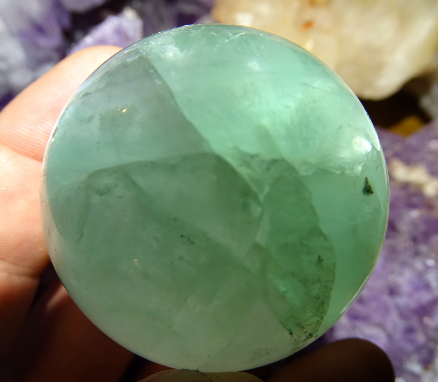 Sélection de Sphères en Fluorite/ Fluorine verte, de 5,7 à 7,8 centimètres. Une pierre translucides aux reflets verdâtres hypnotisants. Parfait pour la lithothérapie, collection, exposition...!