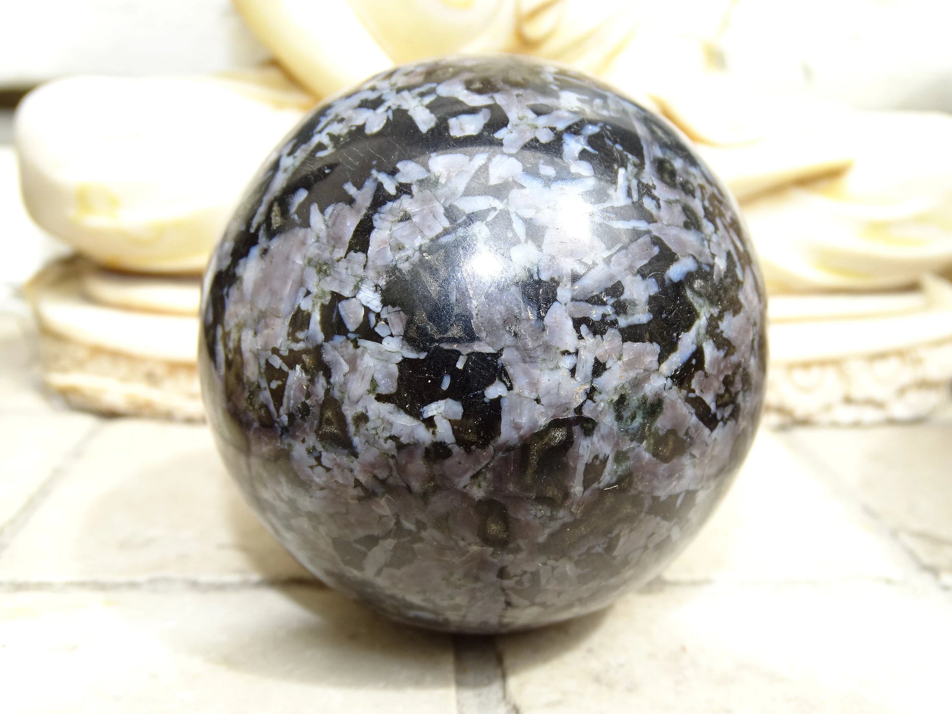 Sélection de sphères en Merlinite/ Gabbro, de 5,7 à 7,8 centimètres. Parfait pour la lithothérapie, collection, exposition...!