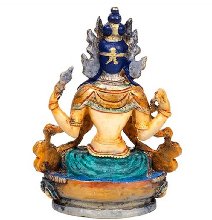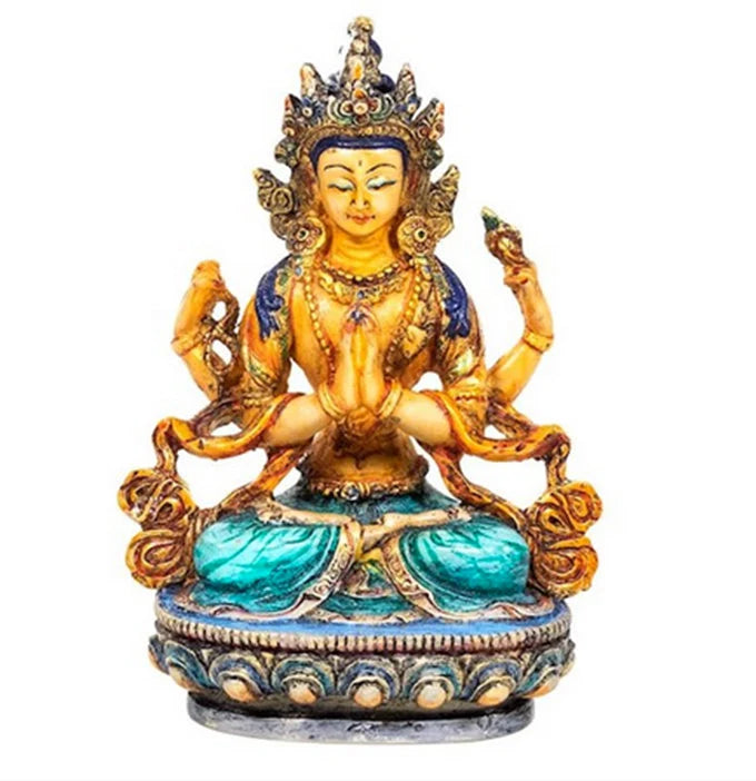 Statuette de Bouddha de la compassion 'Chenrezig/ Avalokiteshvara' de 16 centimètres de haut. Fait et peint à la main au Népal, parfait dans une salle de Méditation, Autel, Collection, Exposition...! Poids +/- 400 grammes.