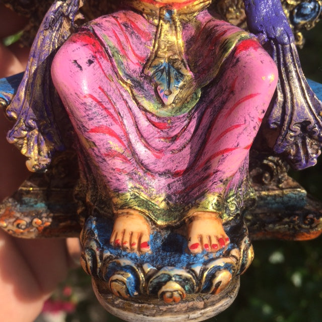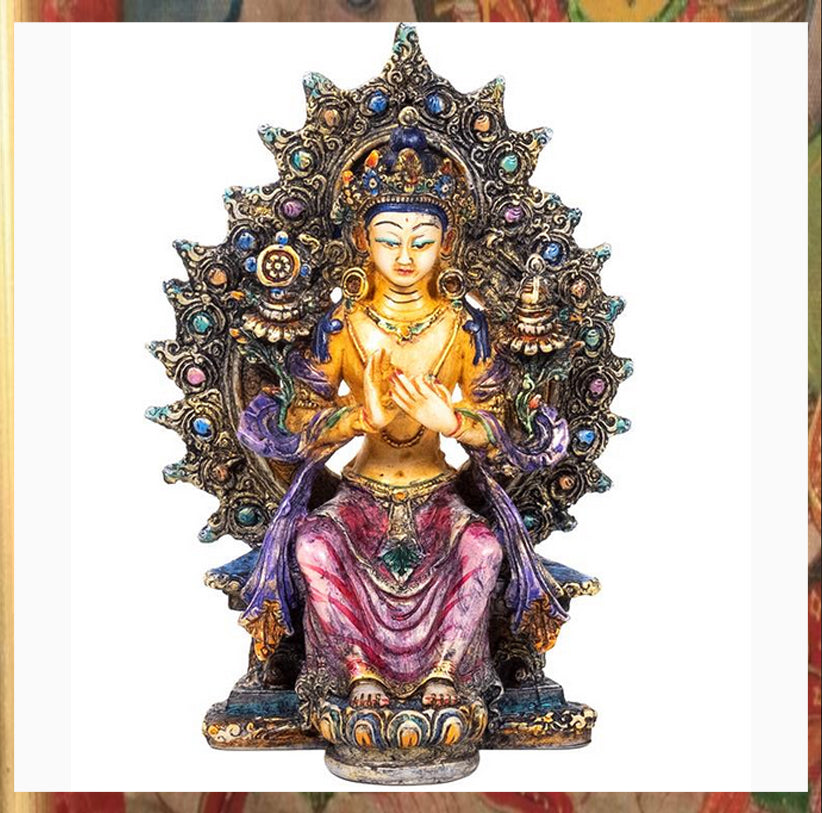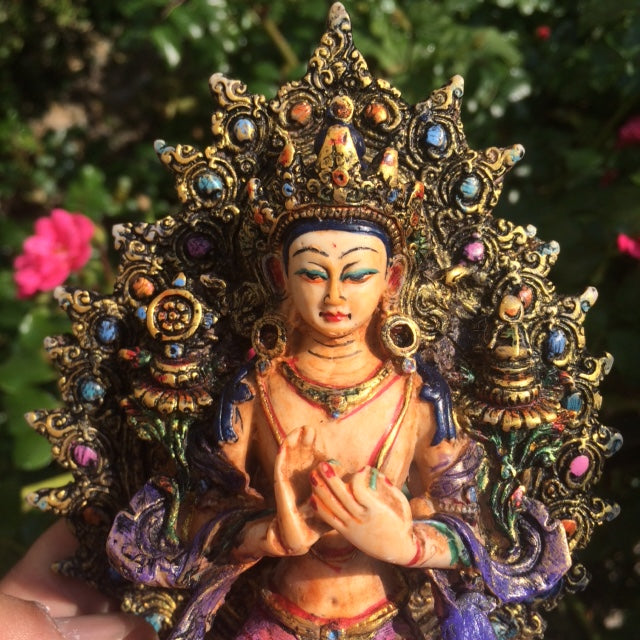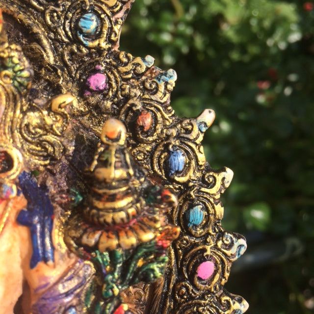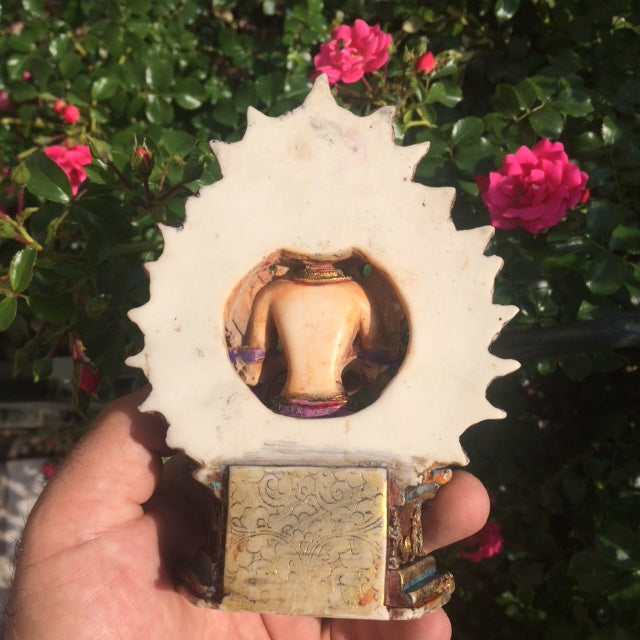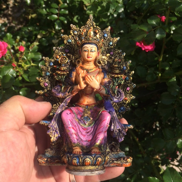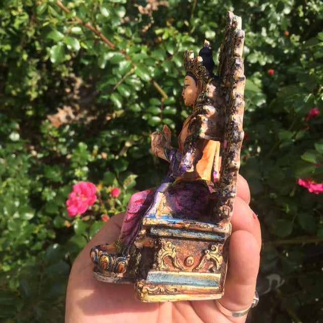 Statuette de Meitreya de 16 centimètres de haut. Fait et peint à la main au Népal, parfait dans une salle de Méditation, Autel, Collection, Exposition...! Poids +/- 370 grammes.