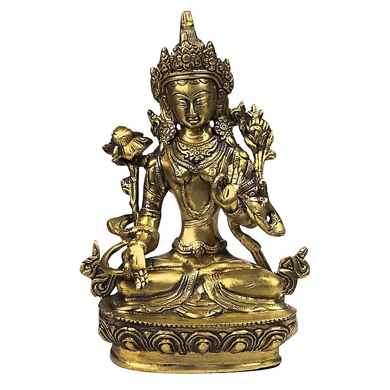 | Attributs | Lotus bleu ou blanc dans les mains, mudras de protection et de générosité |