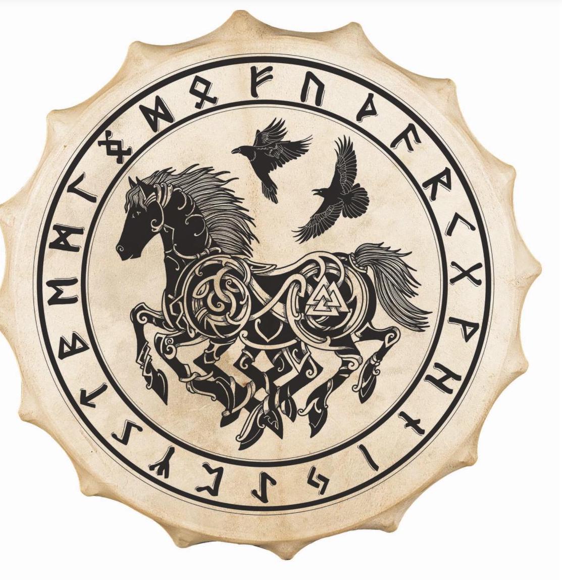 Matériaux | - Cadre en bois (frêne, bouleau, chêne…) - Peau animale naturelle (cerf, chèvre, bison…) tendue - Peintures et symboles chamaniques sur la surface |