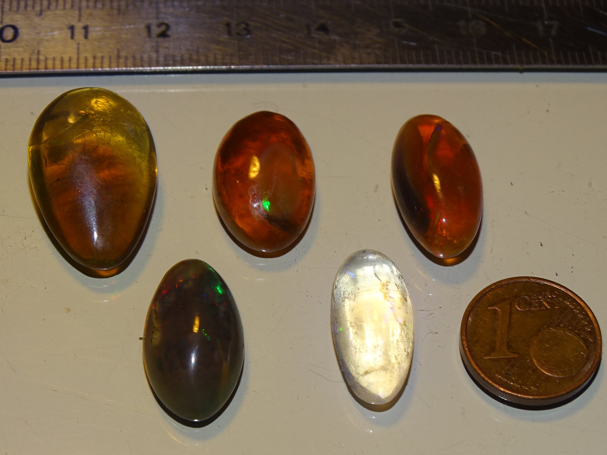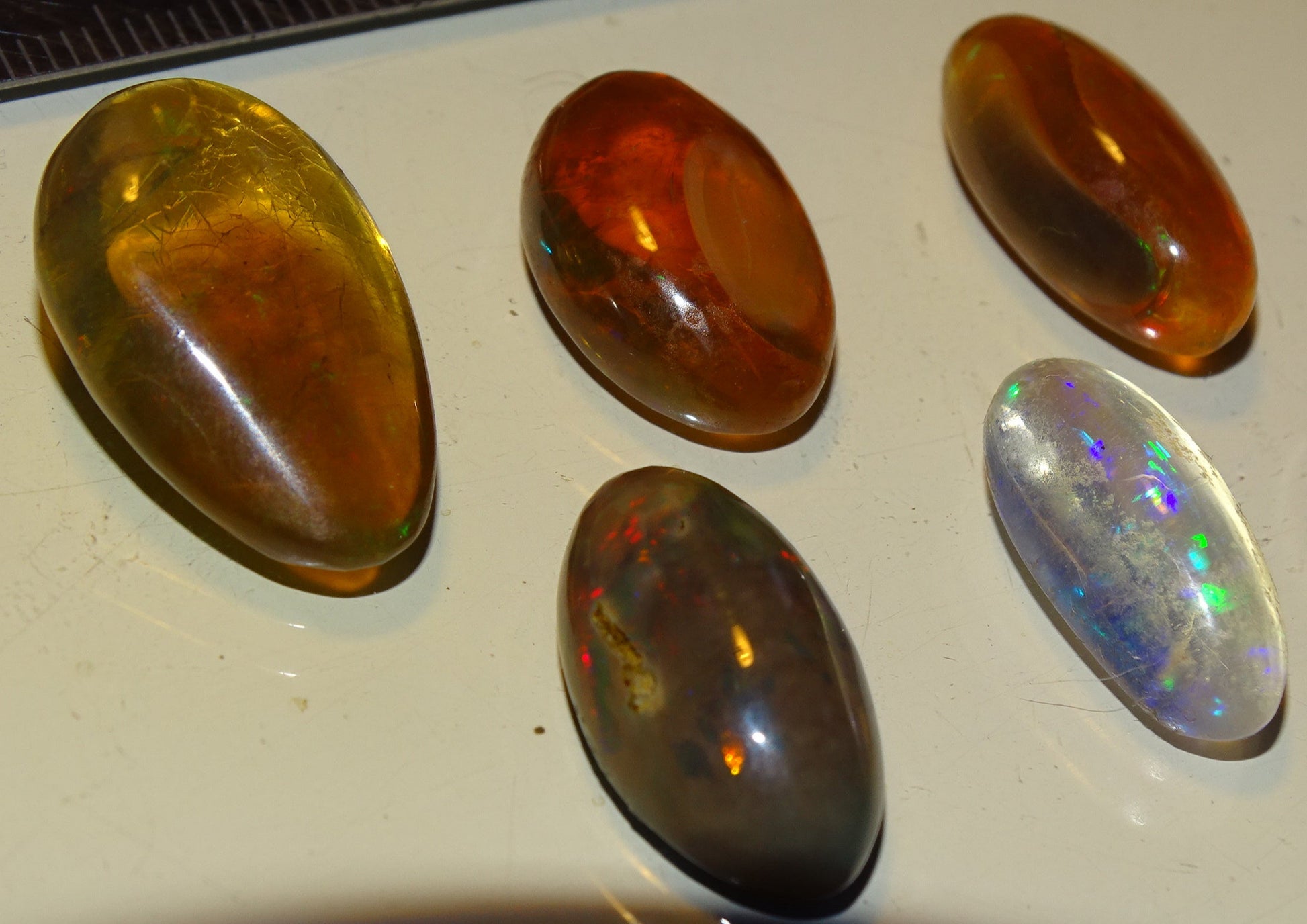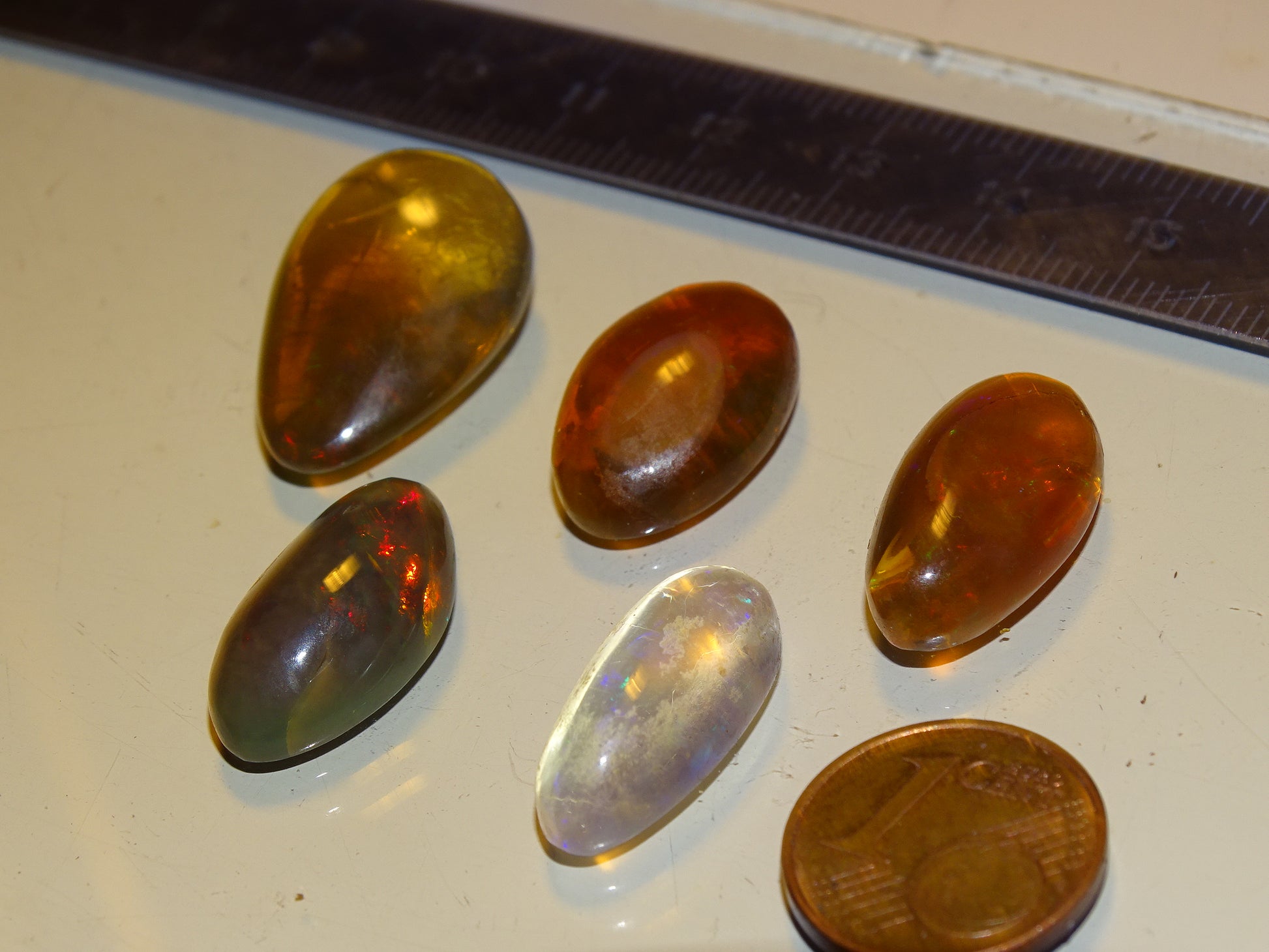 Opale multi-feu, cabochons au choix de 1,9x0,8x7 millimètres à 23x15x0,9. L'authentique et mythique pierre pafait en bijouterie, collection ,exposition...!
