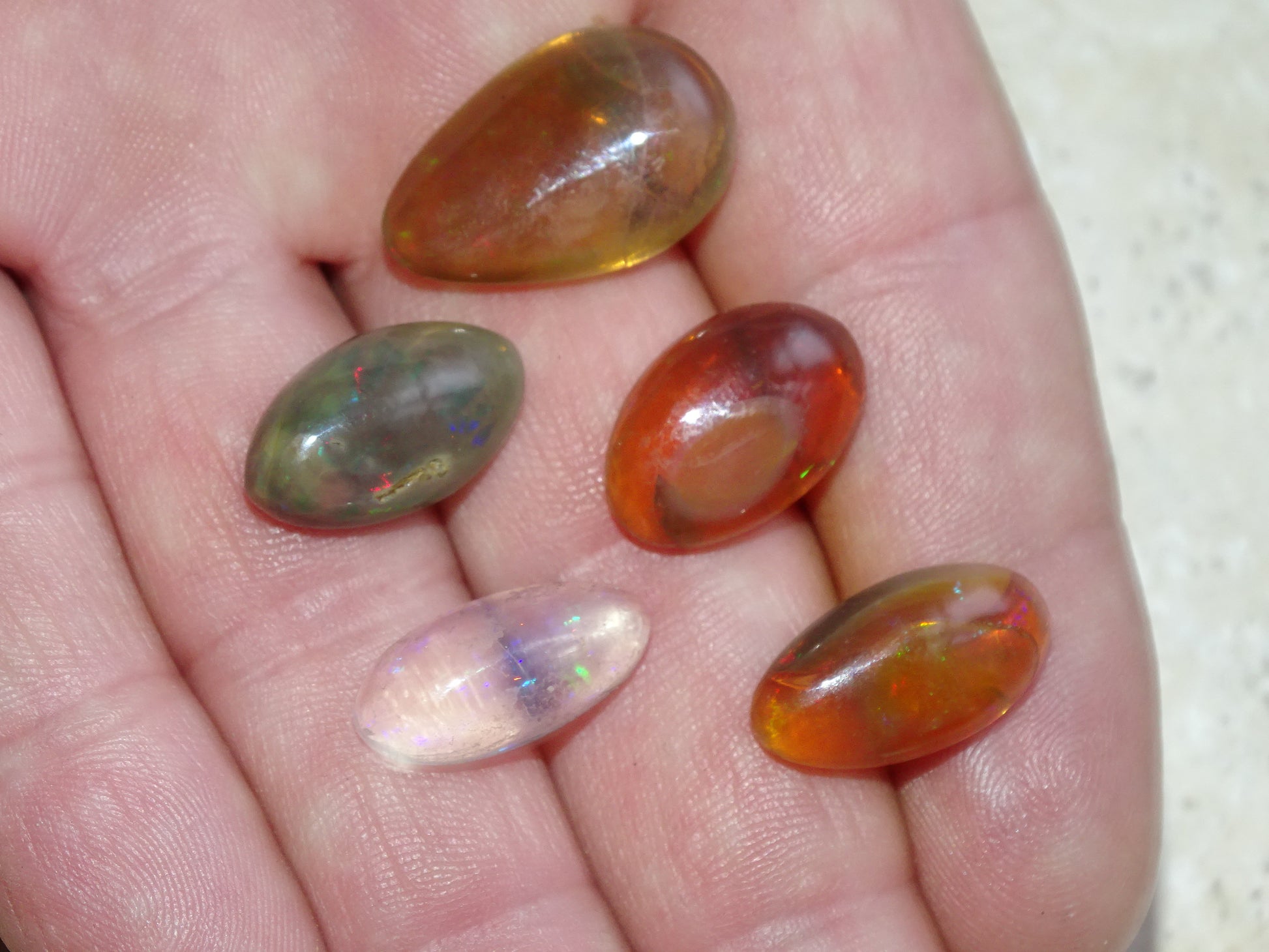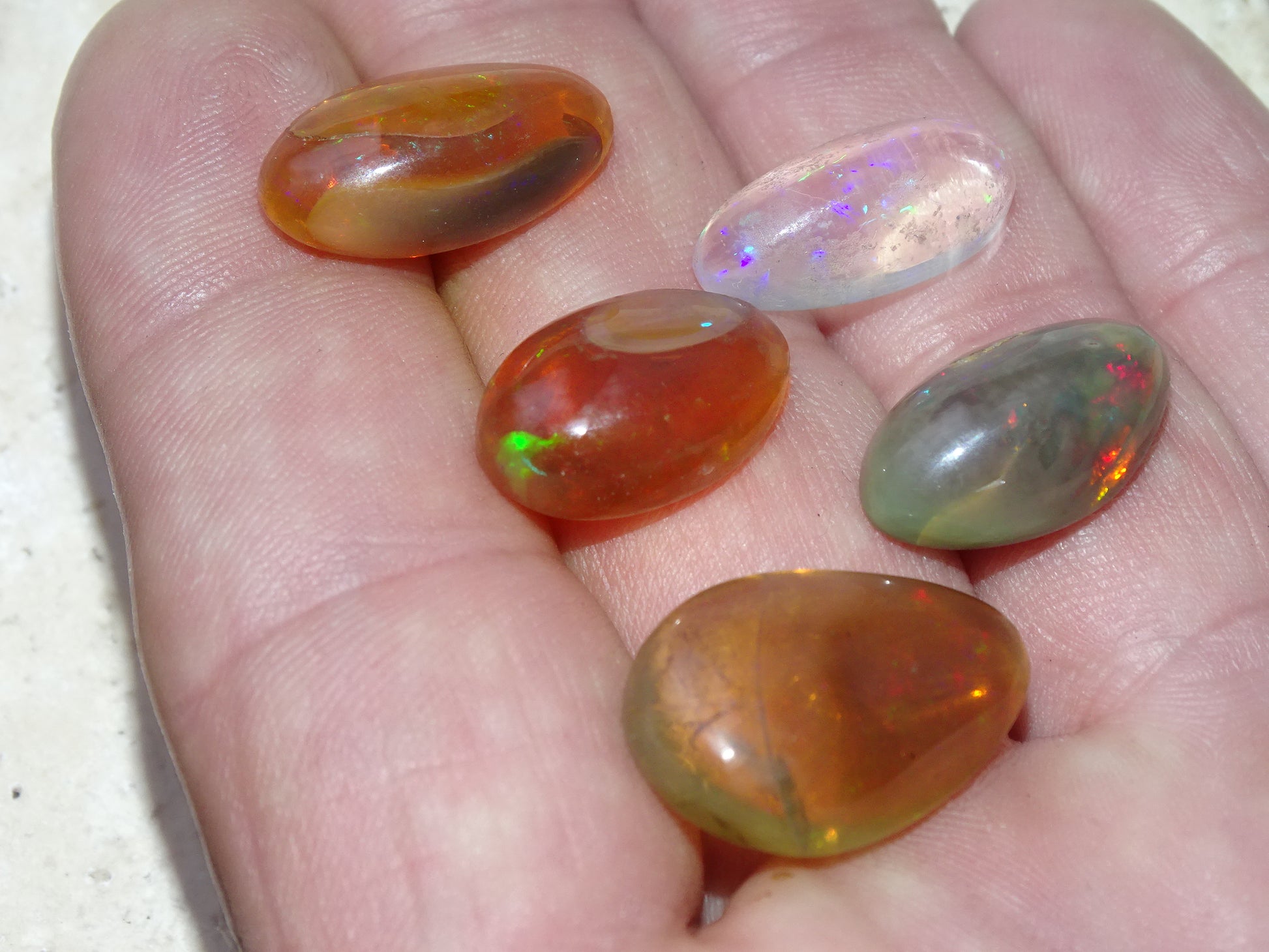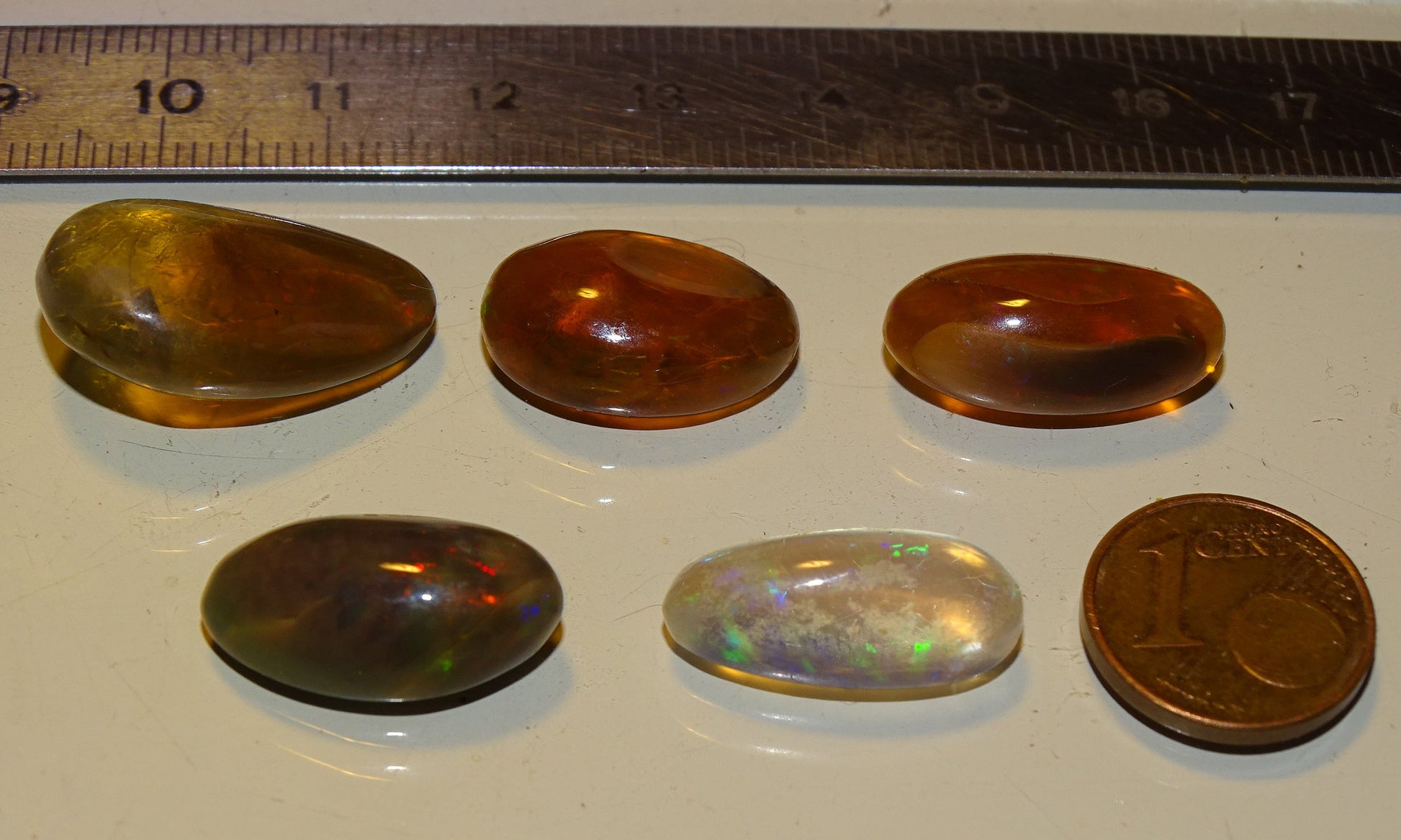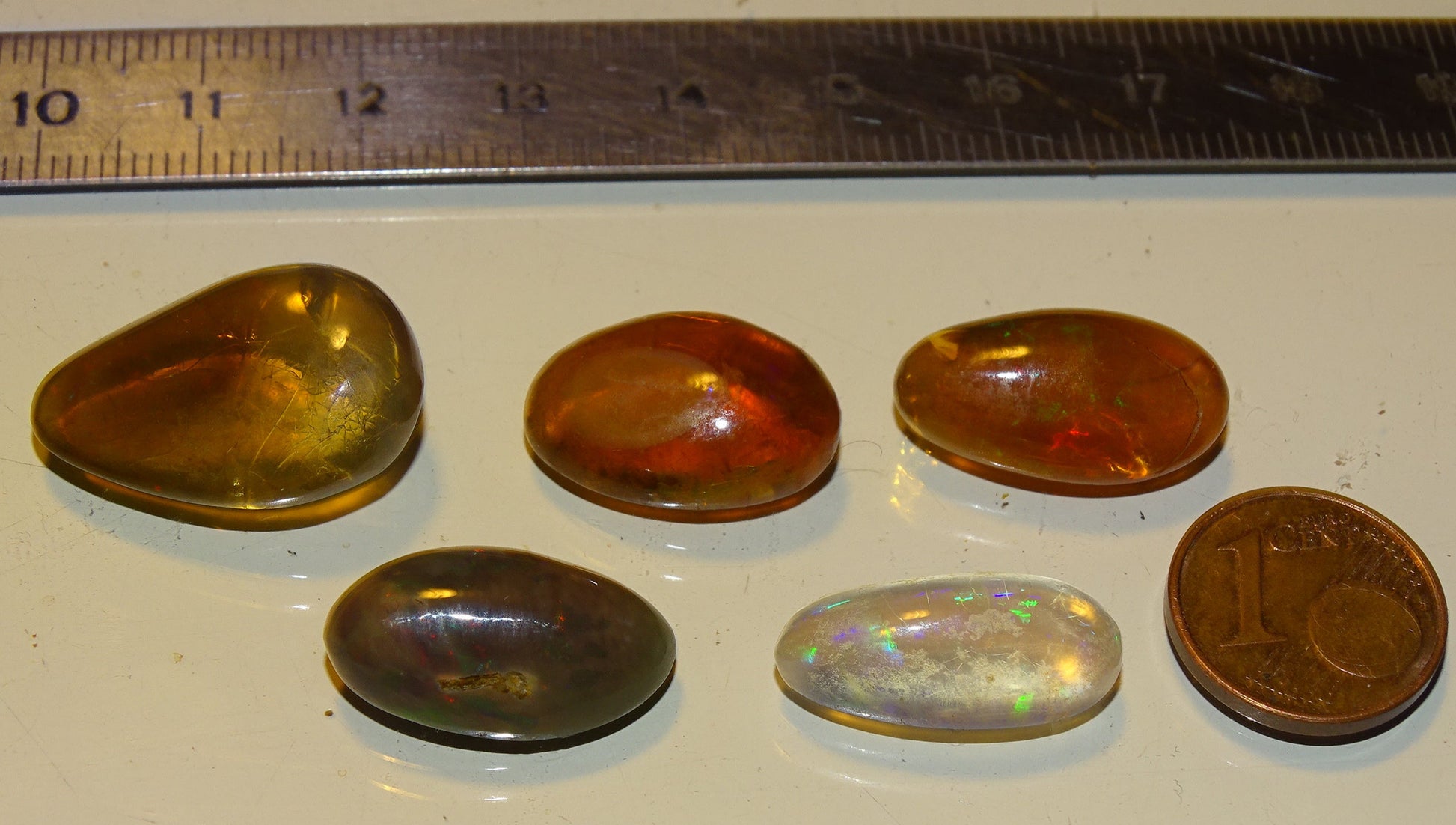 Opale multi-feu, cabochons au choix de 1,9x0,8x7 millimètres à 23x15x0,9. L'authentique et mythique pierre pafait en bijouterie, collection ,exposition...!
