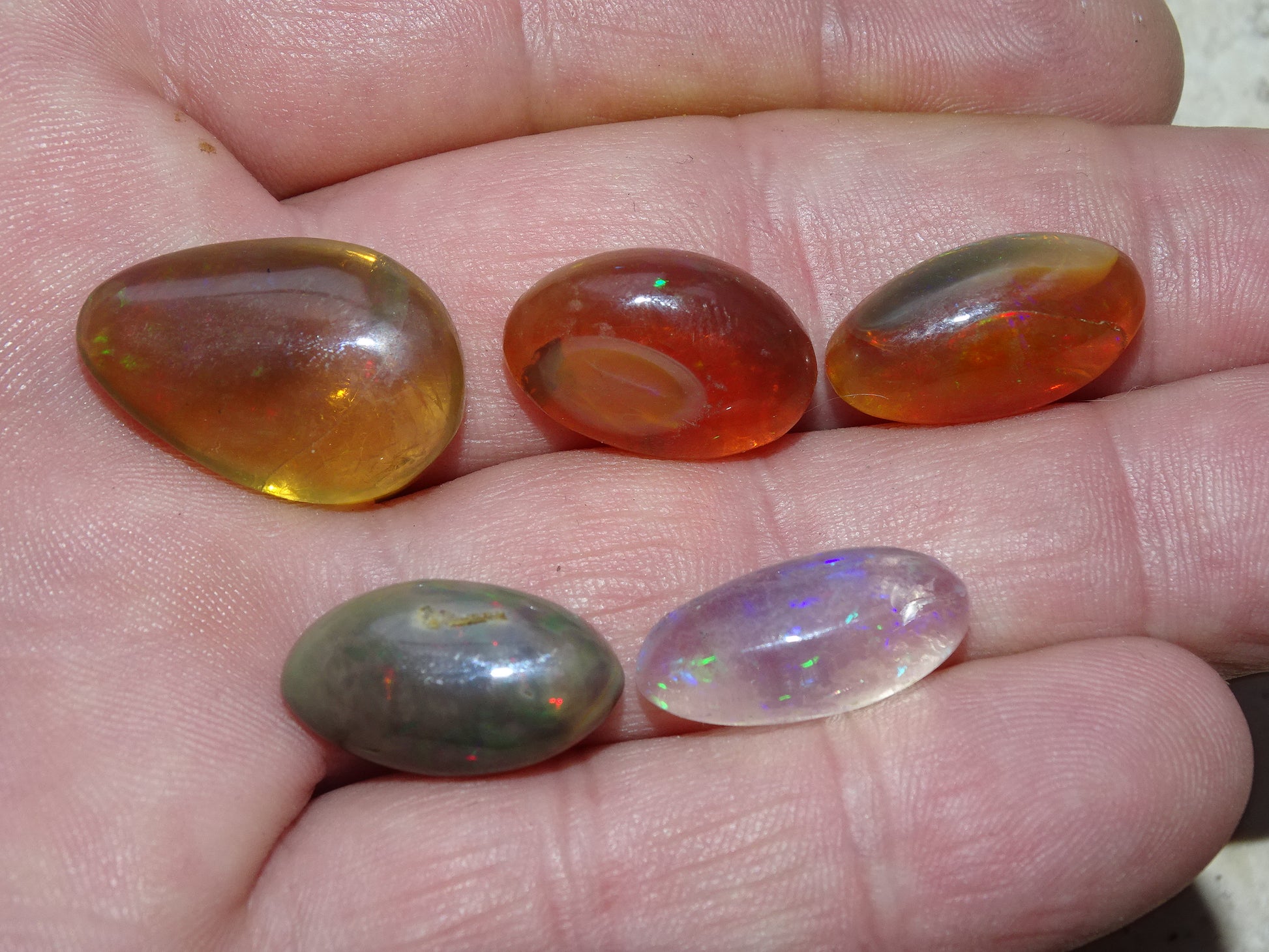 Aspect | Cabochons, pierres roulées, nodules, opales de feu, opales nobles iridescentes |