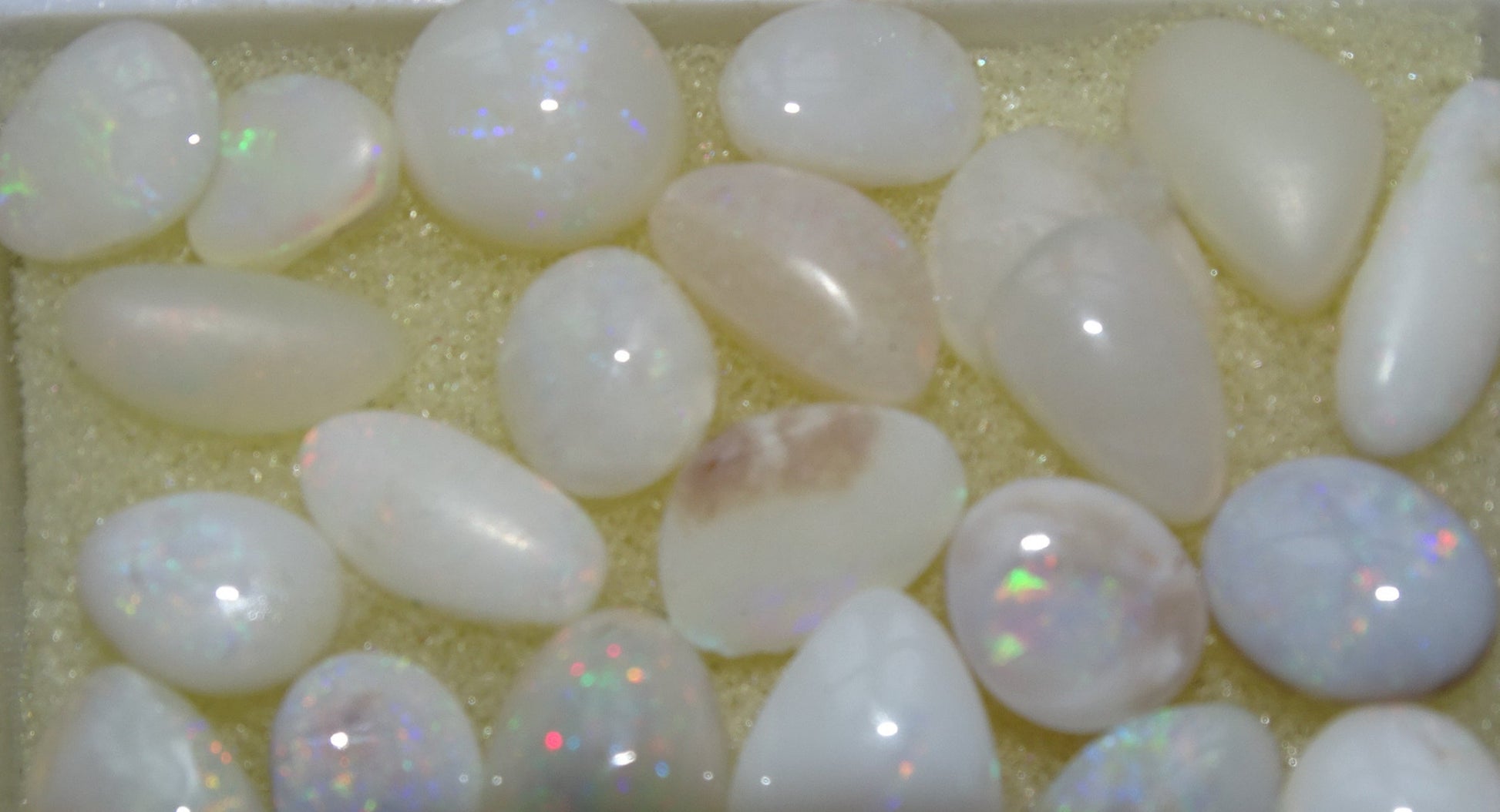 Aspect | Cabochons, pierres roulées, nodules, opales de feu, opales nobles iridescentes |