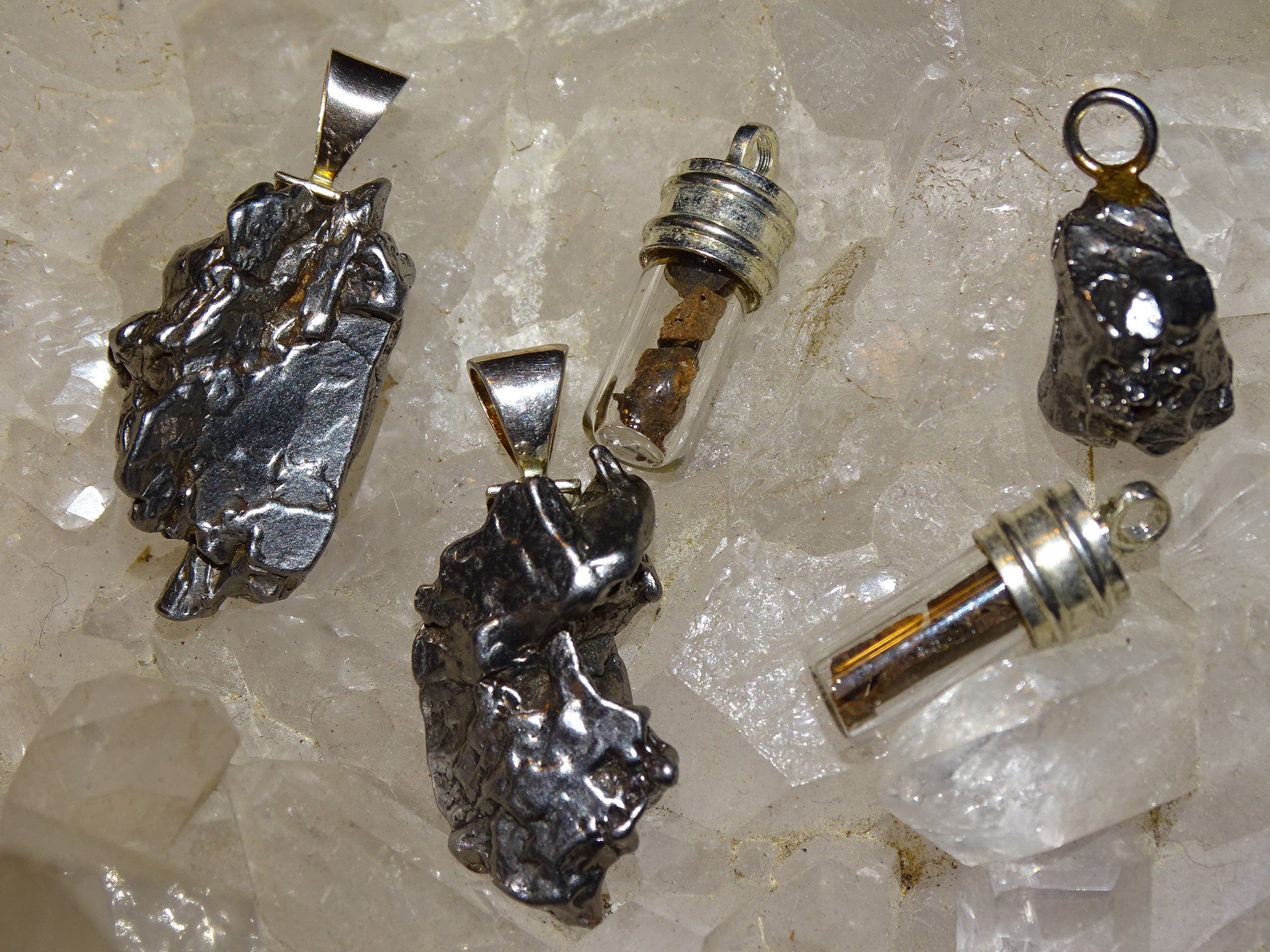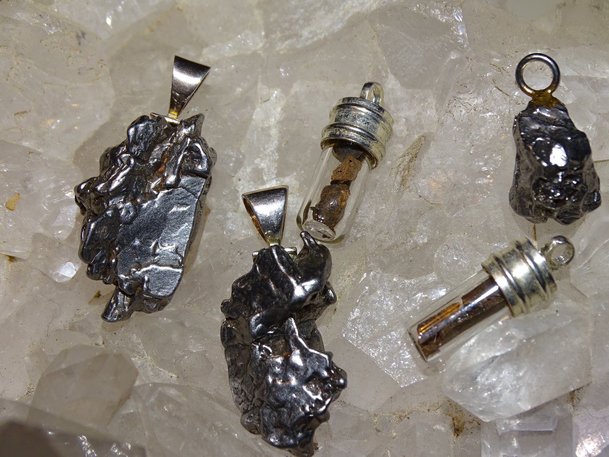 Sélection pendentifs de météorites Campo Del Cielo d'Argentine,pièces au choix. pépites entières ou en flacon. Véritable pépite de l'espace !