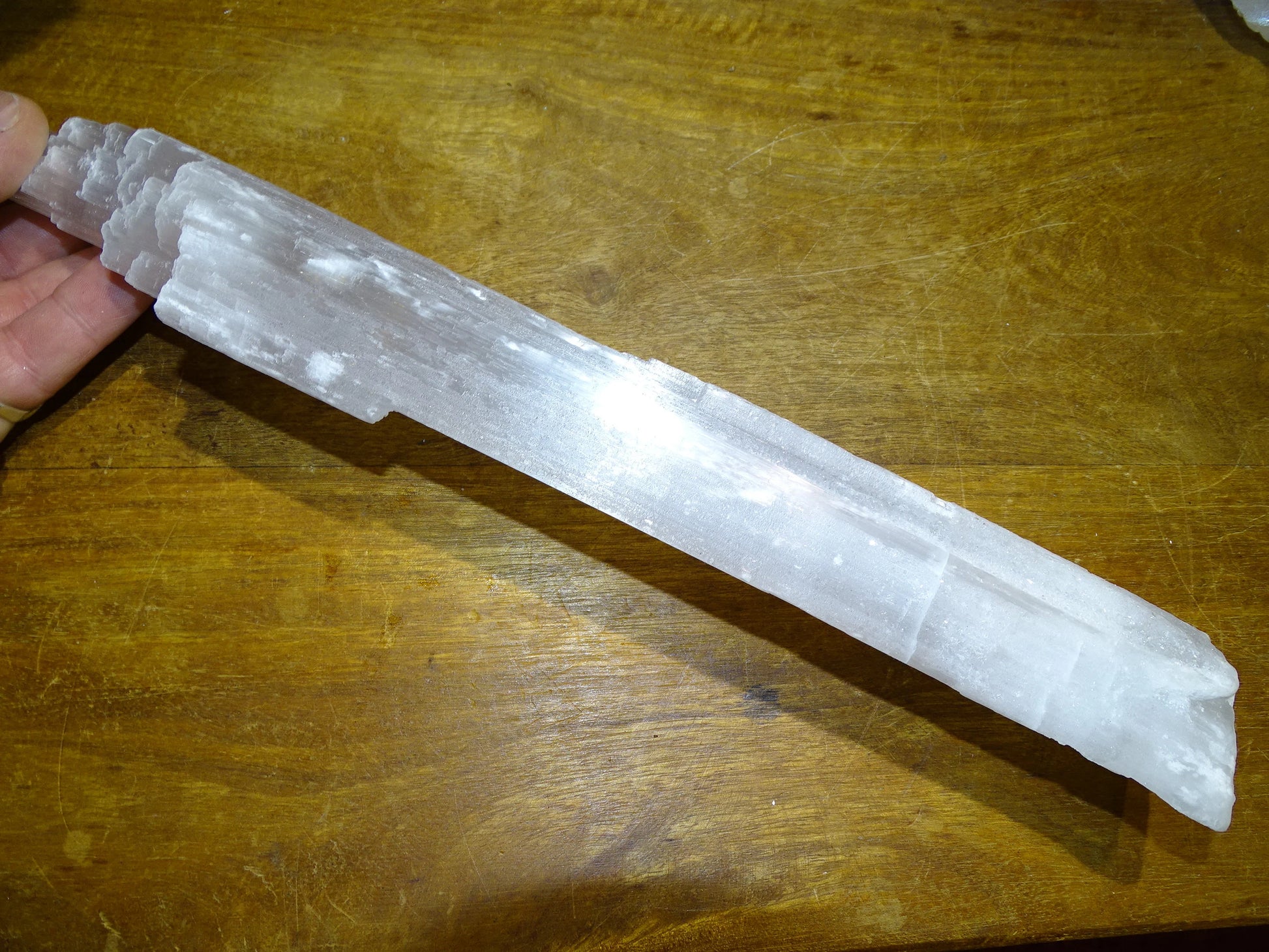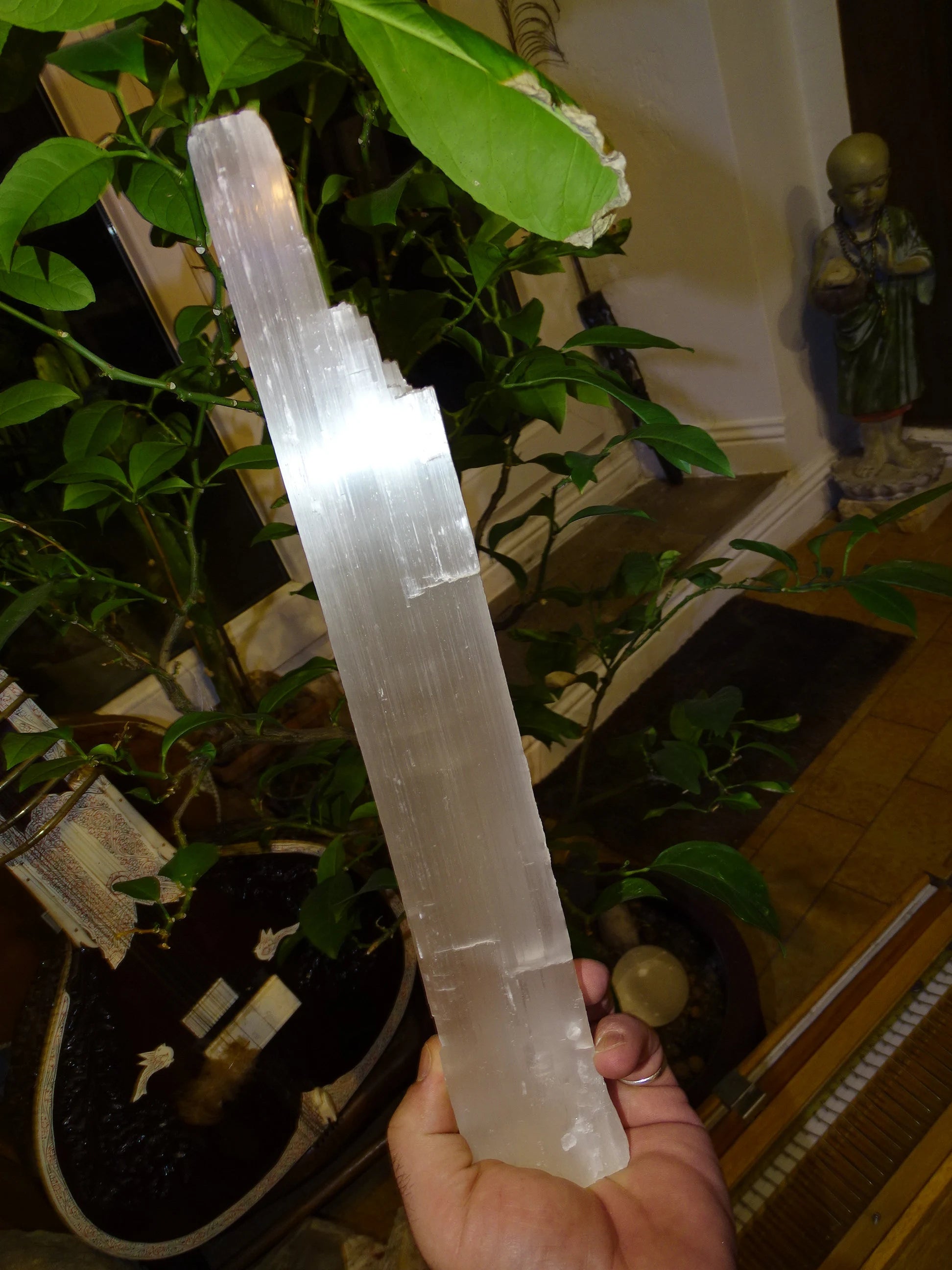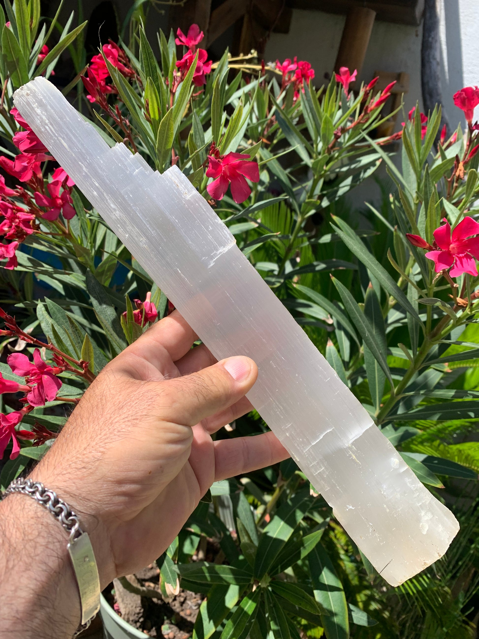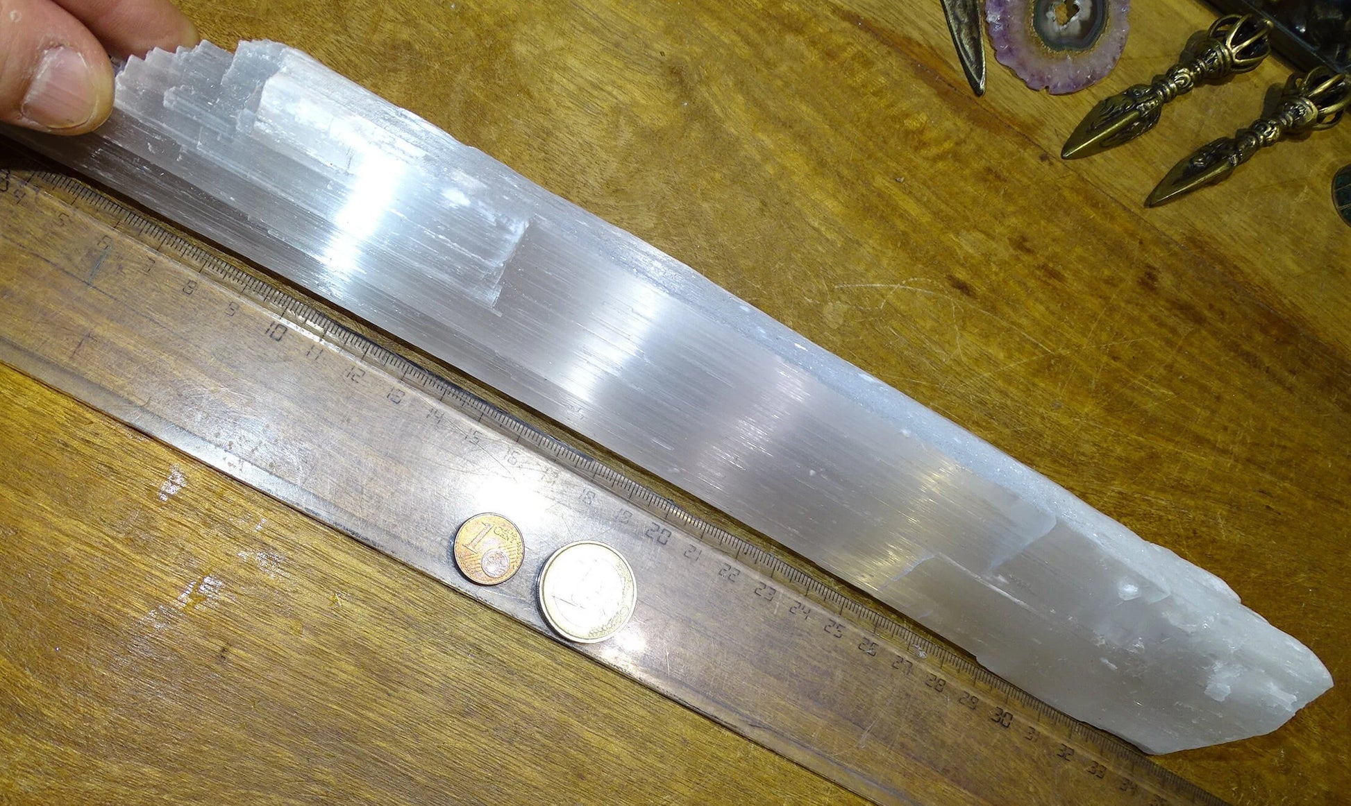 Sélénite, spécimen de taille XL de 34,5 cm x 4,7 x 3,6 - 840 grammes / Superbe pièce aux effets puissants !