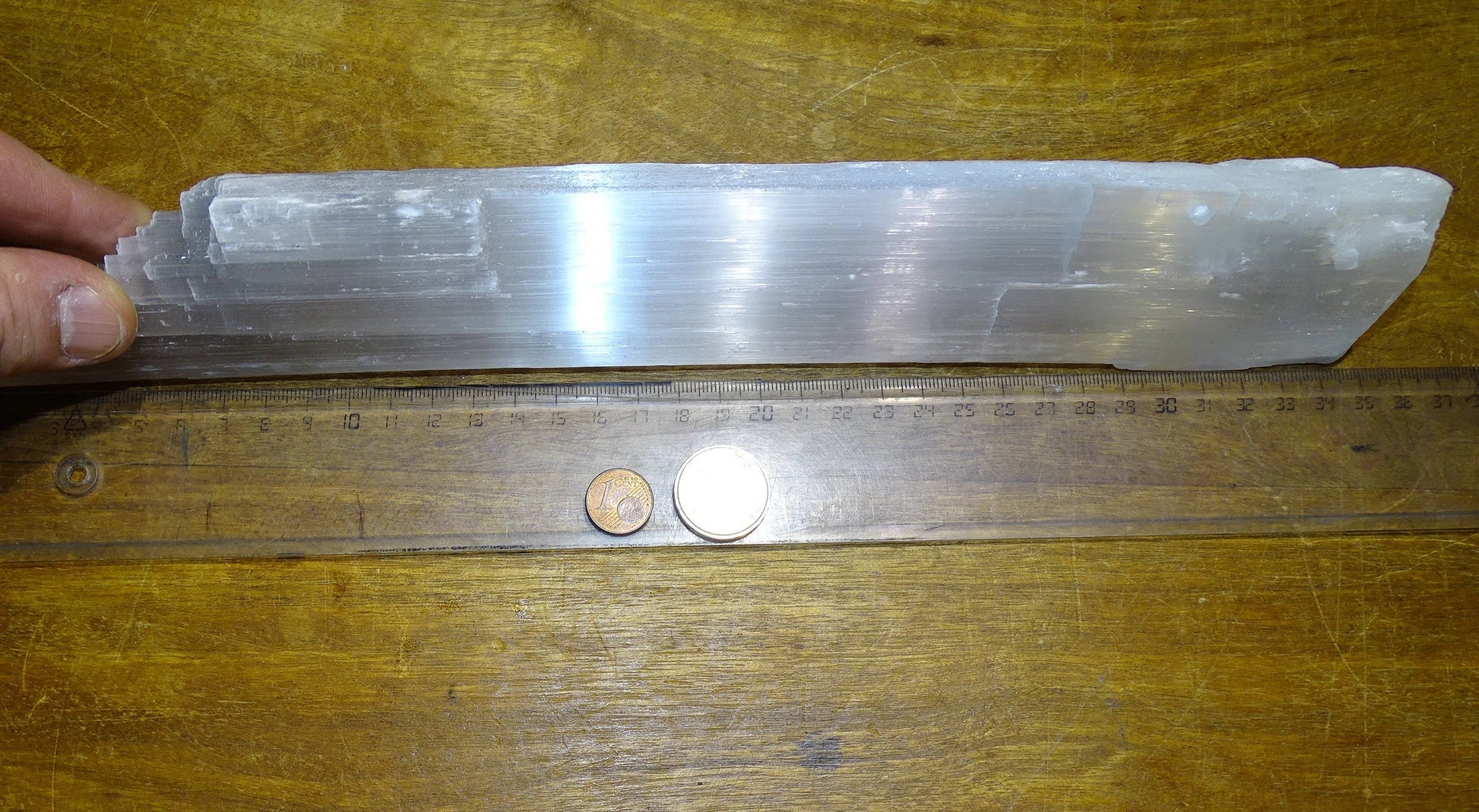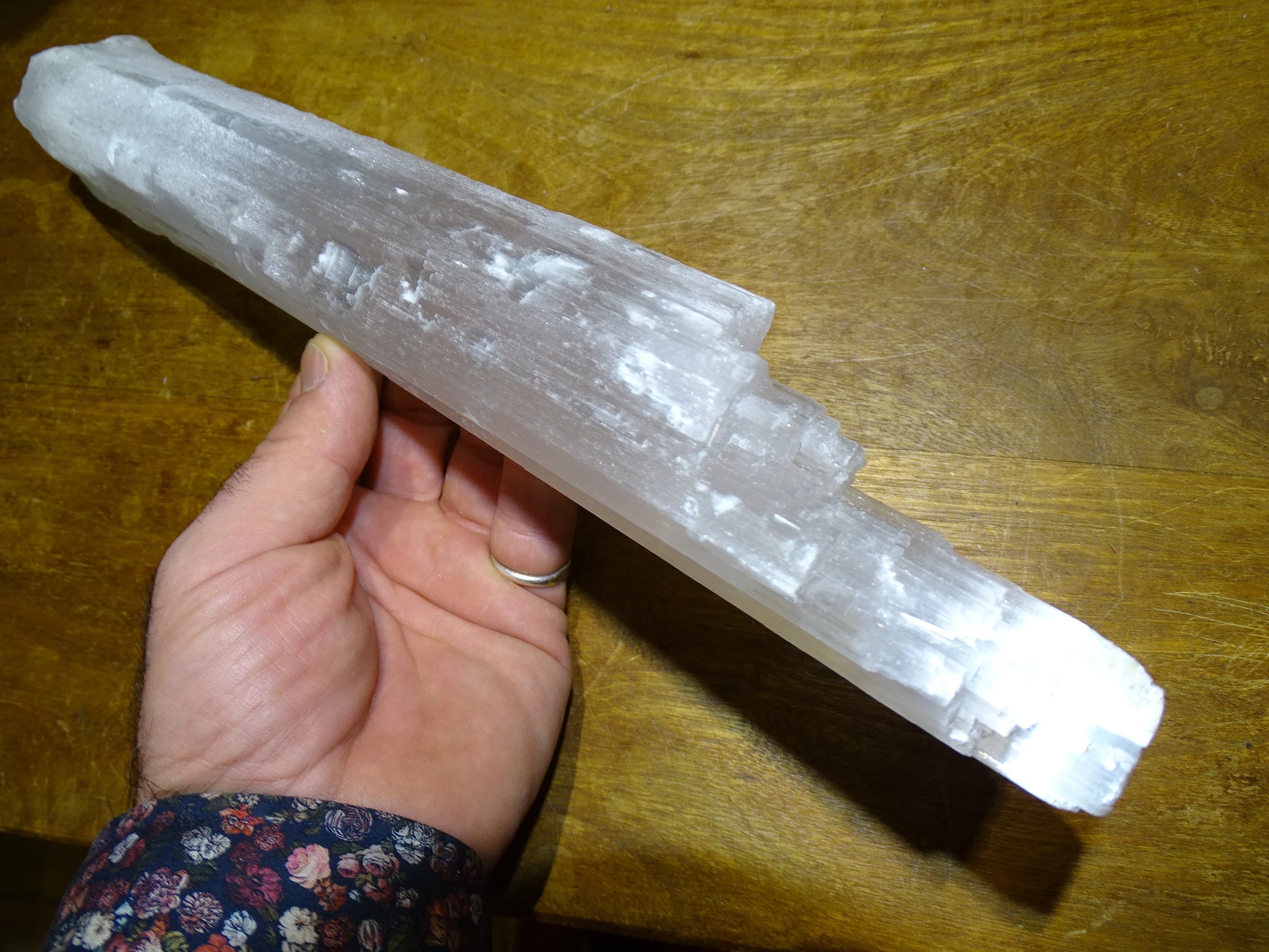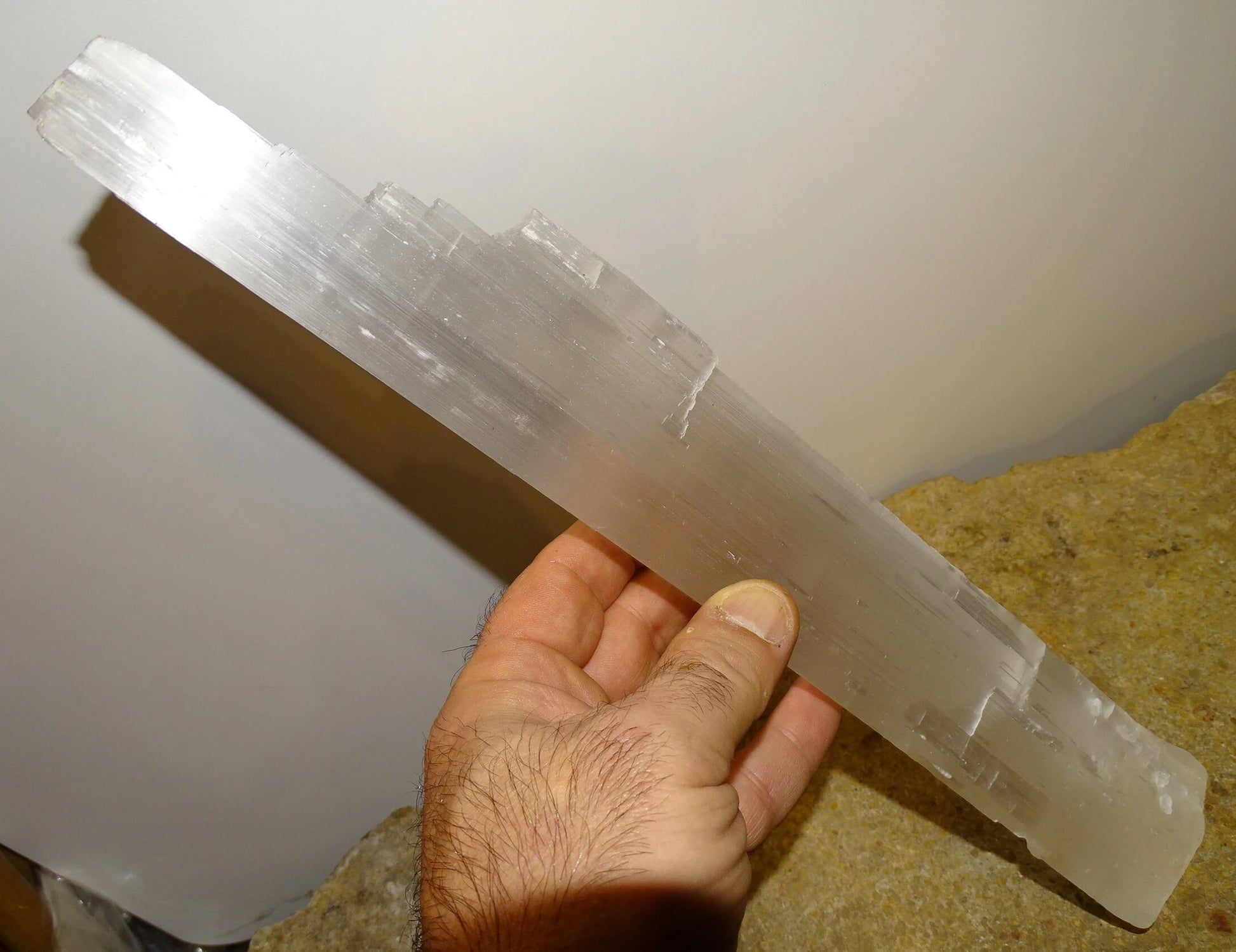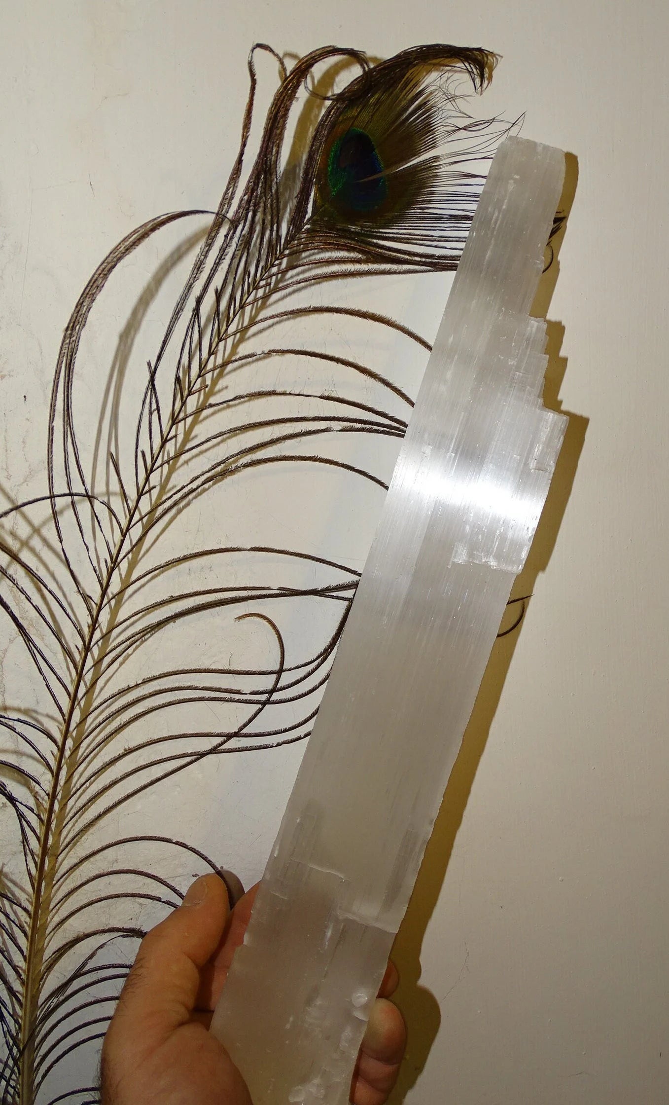 Sélénite, spécimen de taille XL de 34,5 cm x 4,7 x 3,6 - 840 grammes / Superbe pièce aux effets puissants !