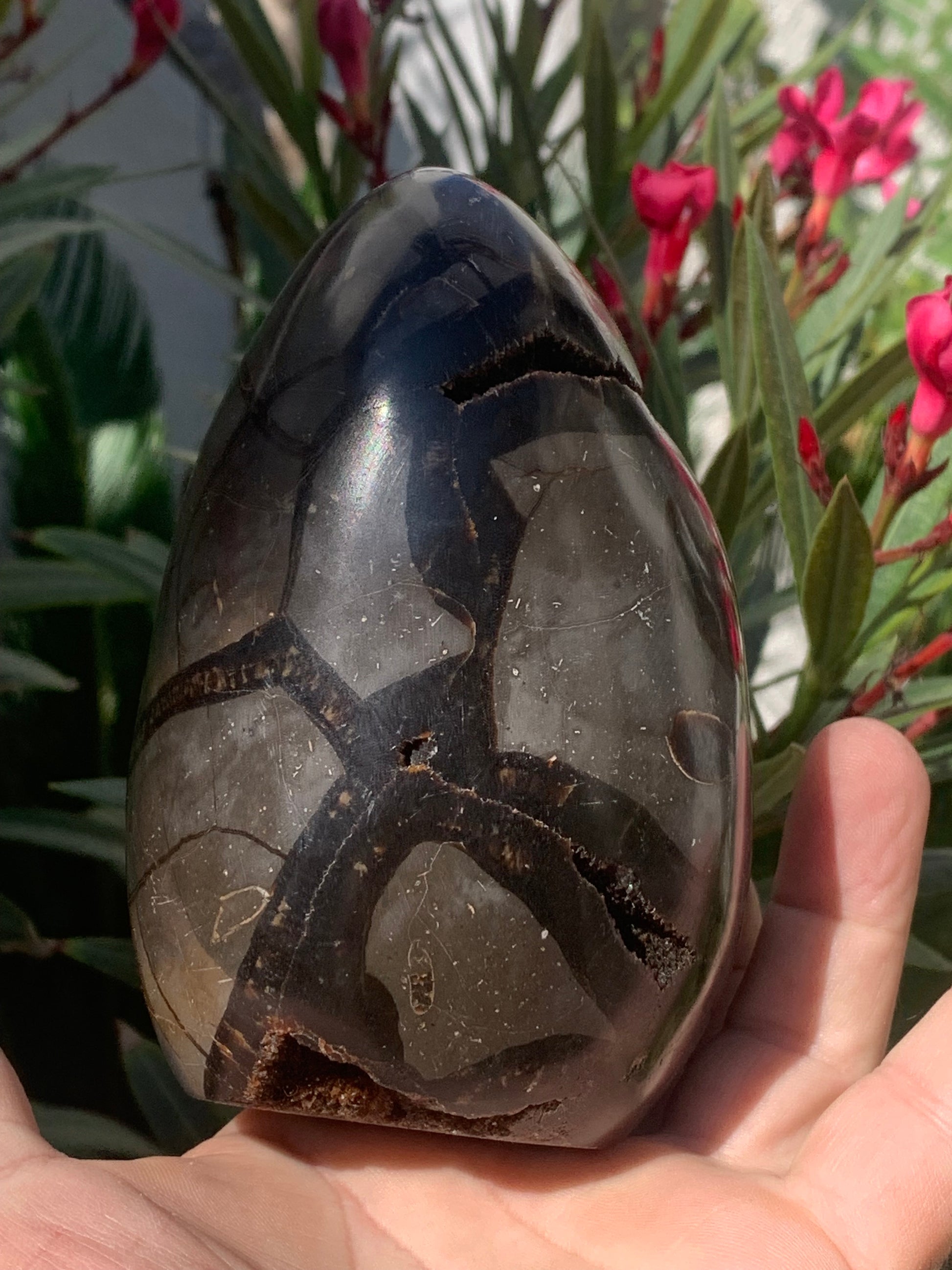 Petite histoire / Anecdote | Appelée « pierre des dragons » car ses motifs rappellent des écailles. Les Septarias se sont formées à partir de boues marines fossilisées. |