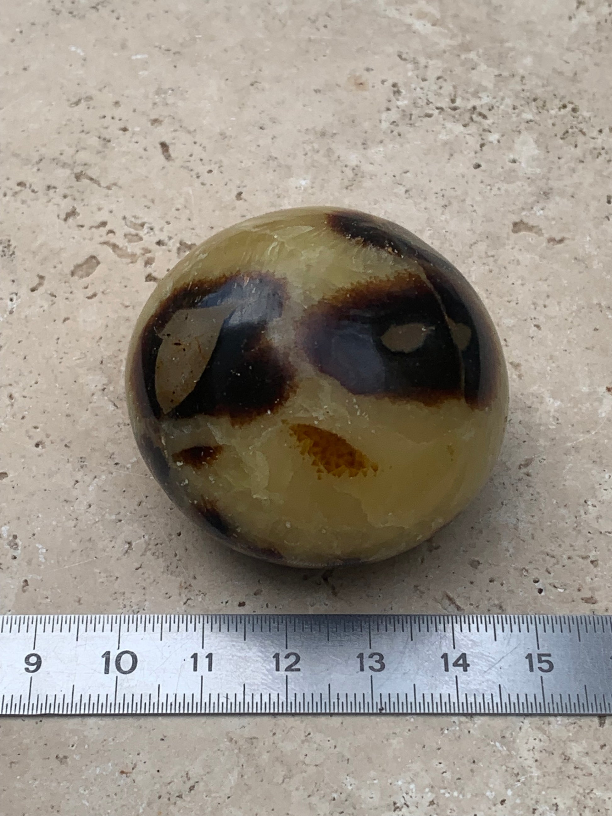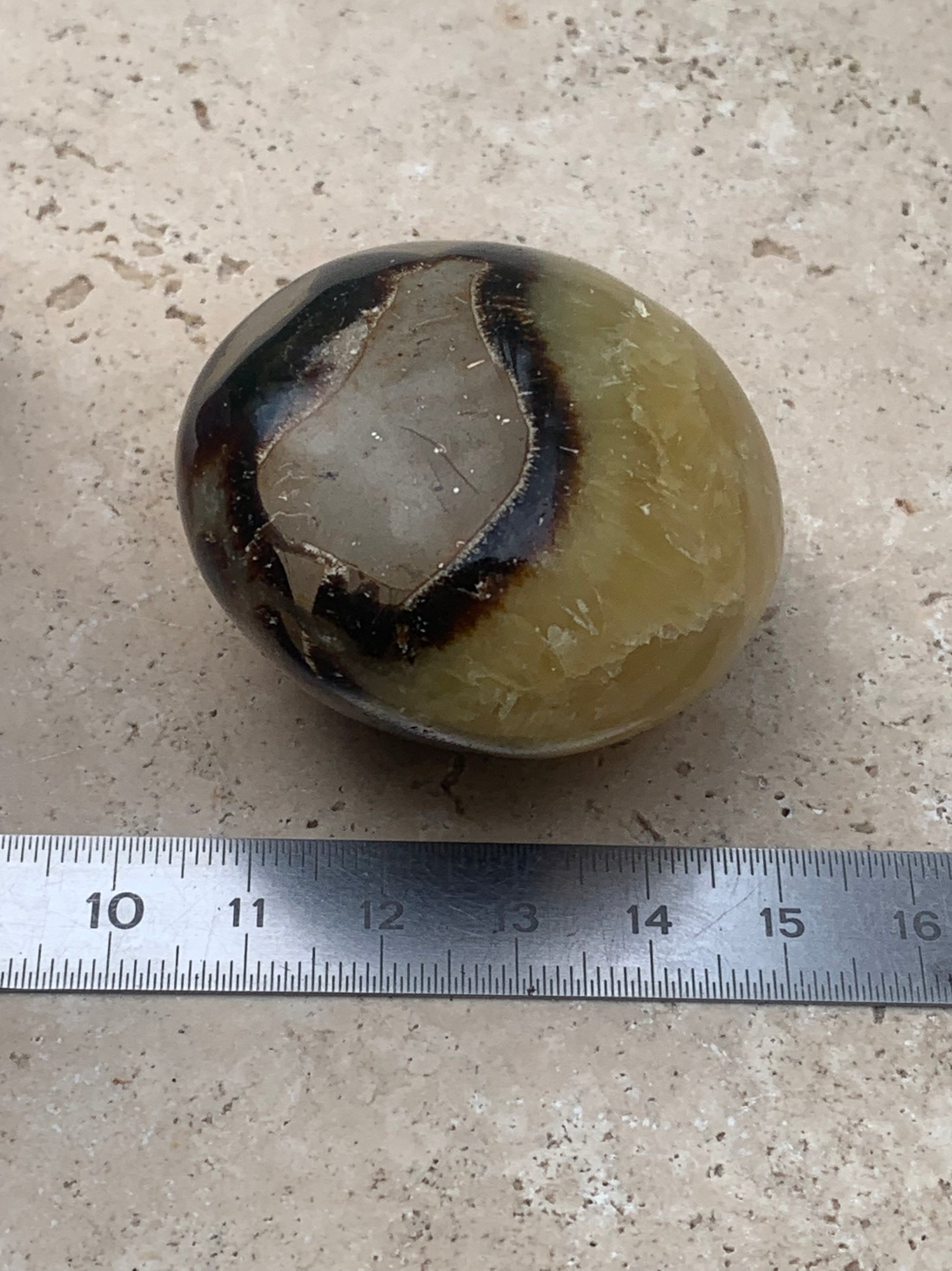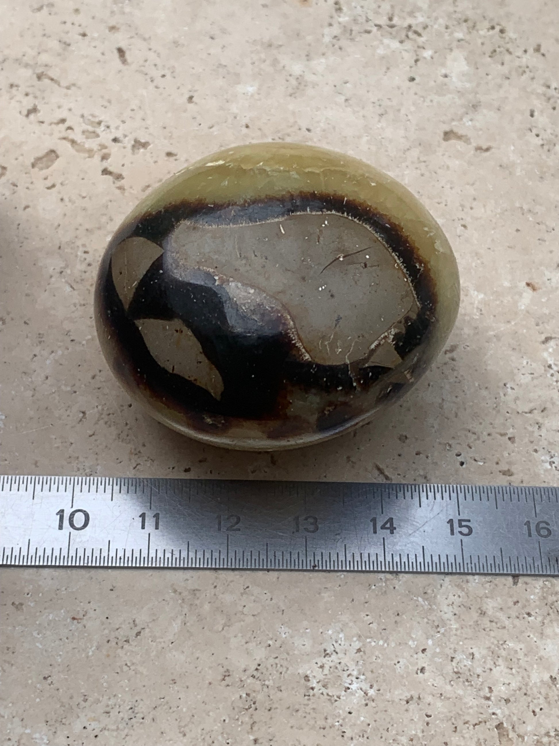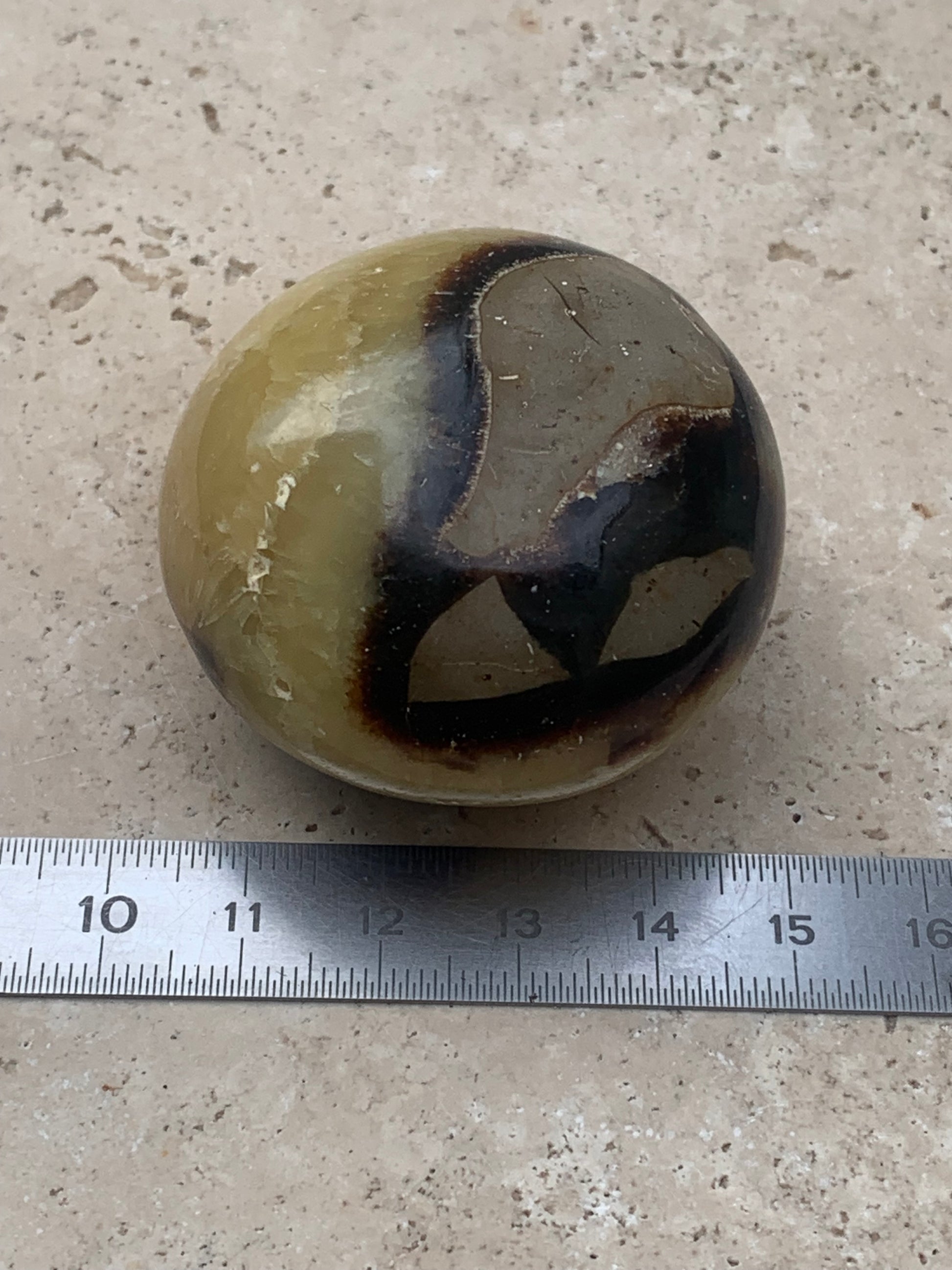 Septaria, spécimen roulée de 47mm de diamètre x 32 - 94,7 gr. Superbe galet rond pour vos collections, expositions...