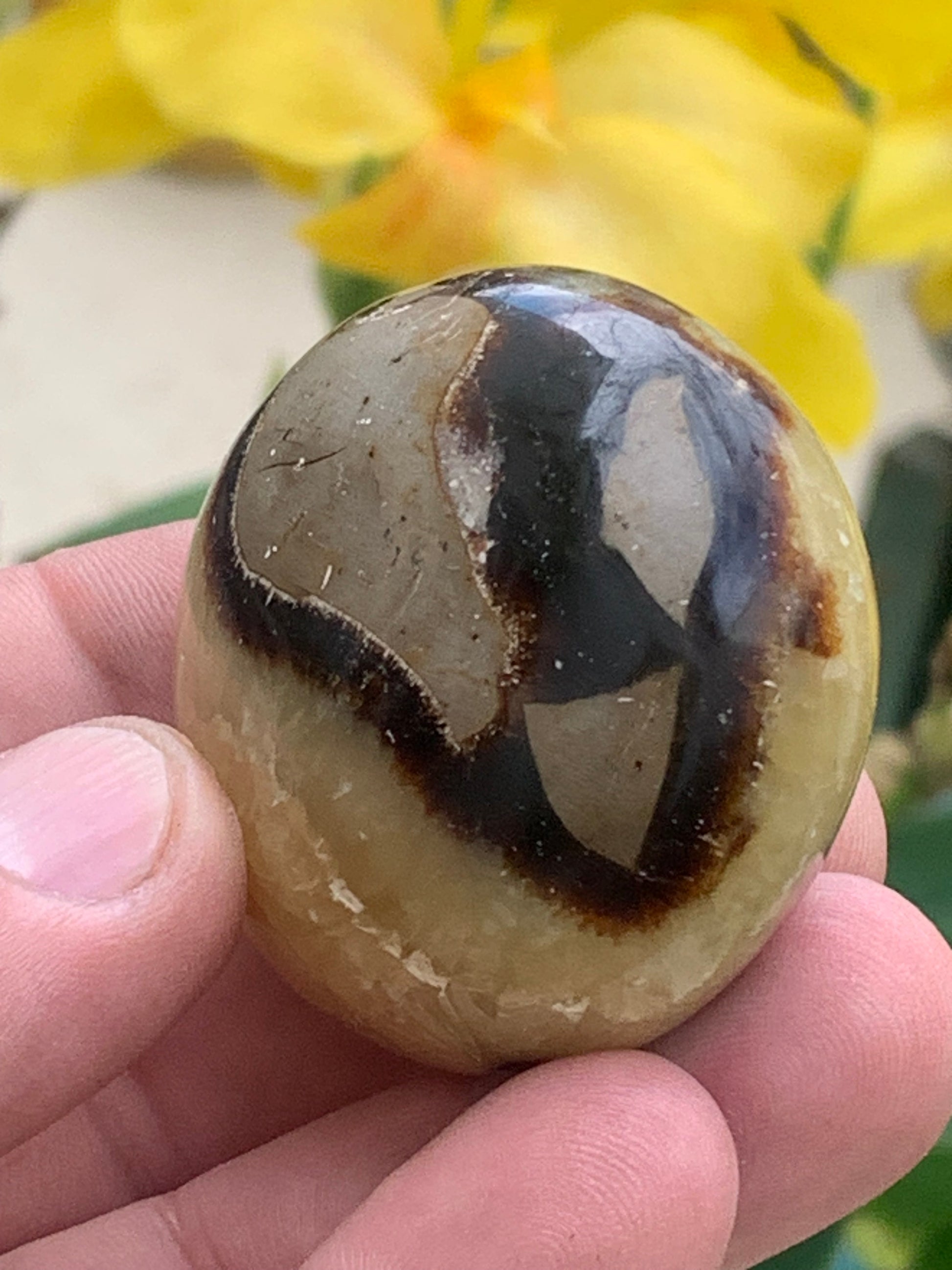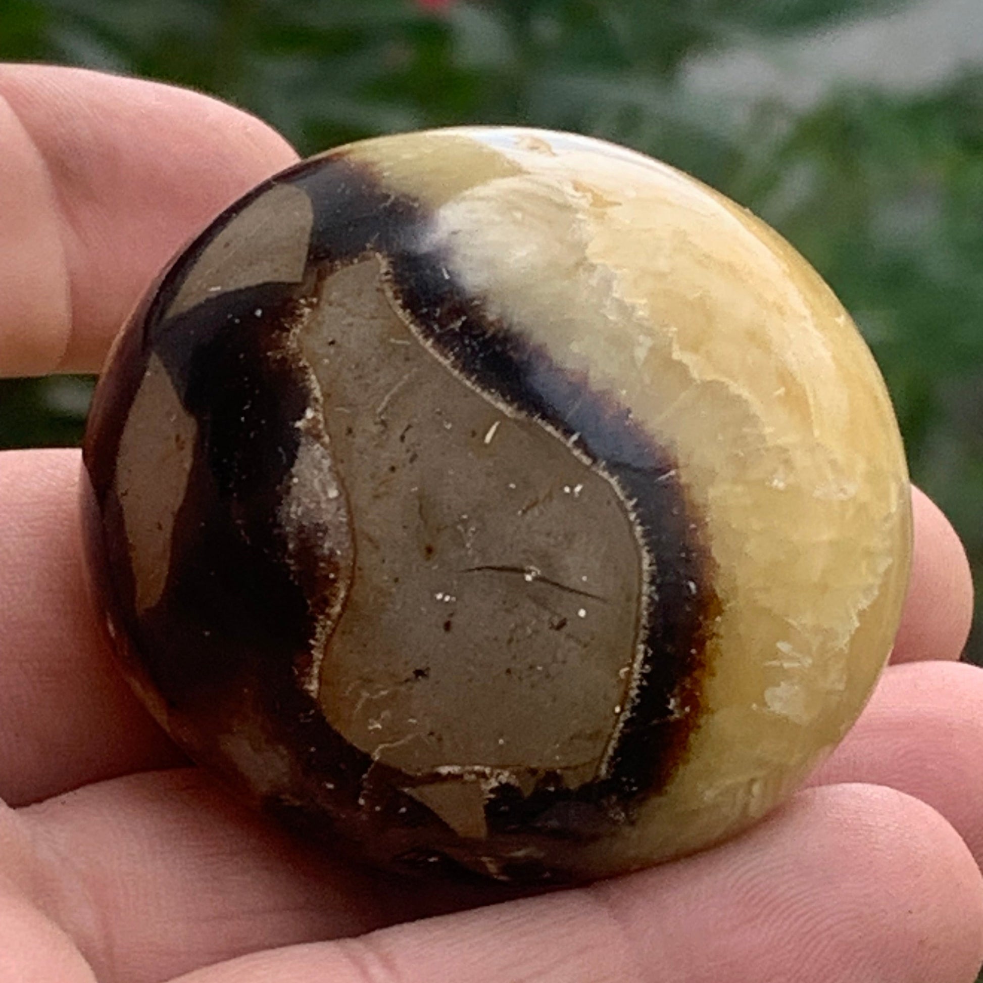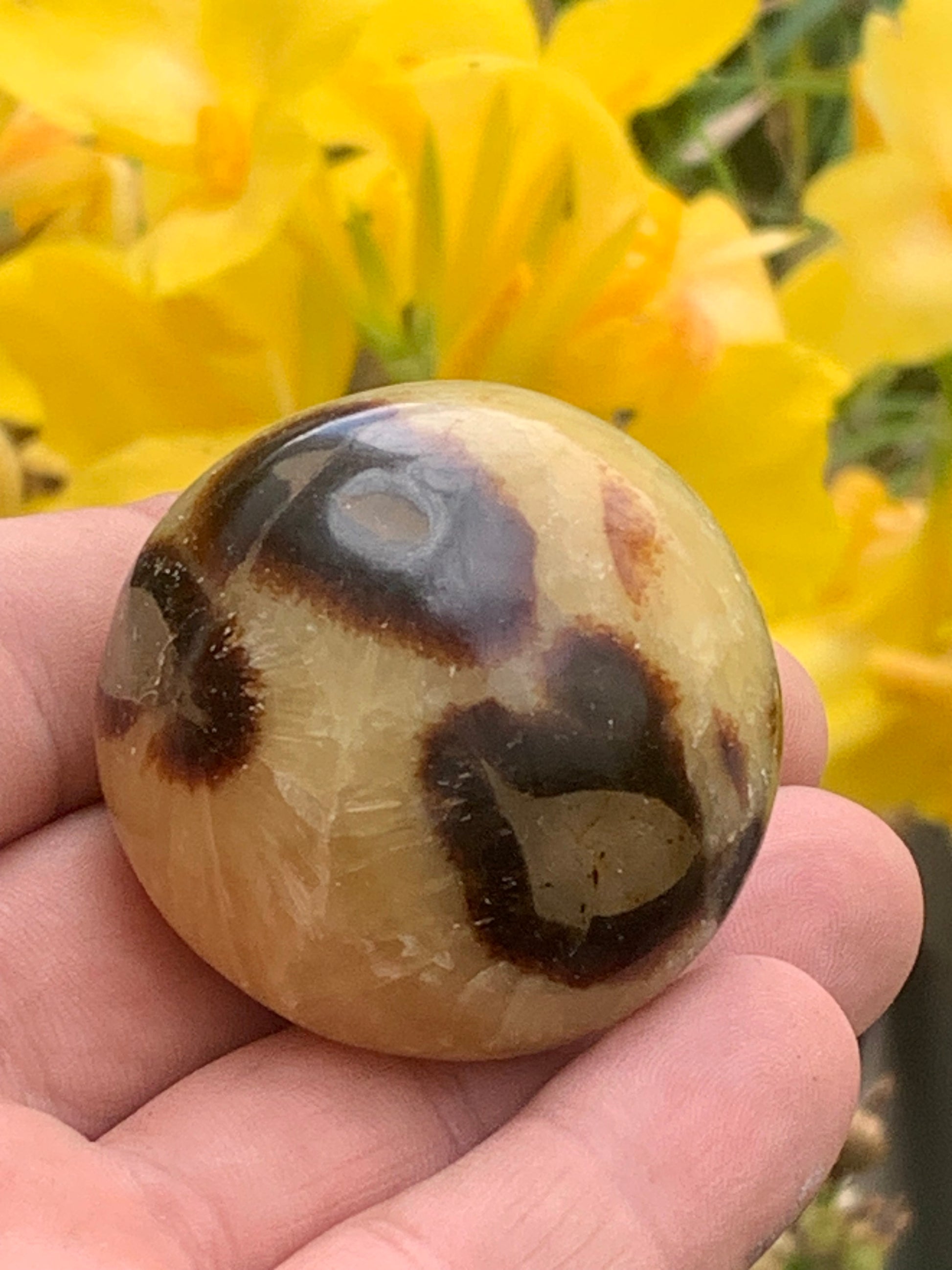 Septaria, spécimen roulée de 47mm de diamètre x 32 - 94,7 gr. Superbe galet rond pour vos collections, expositions...