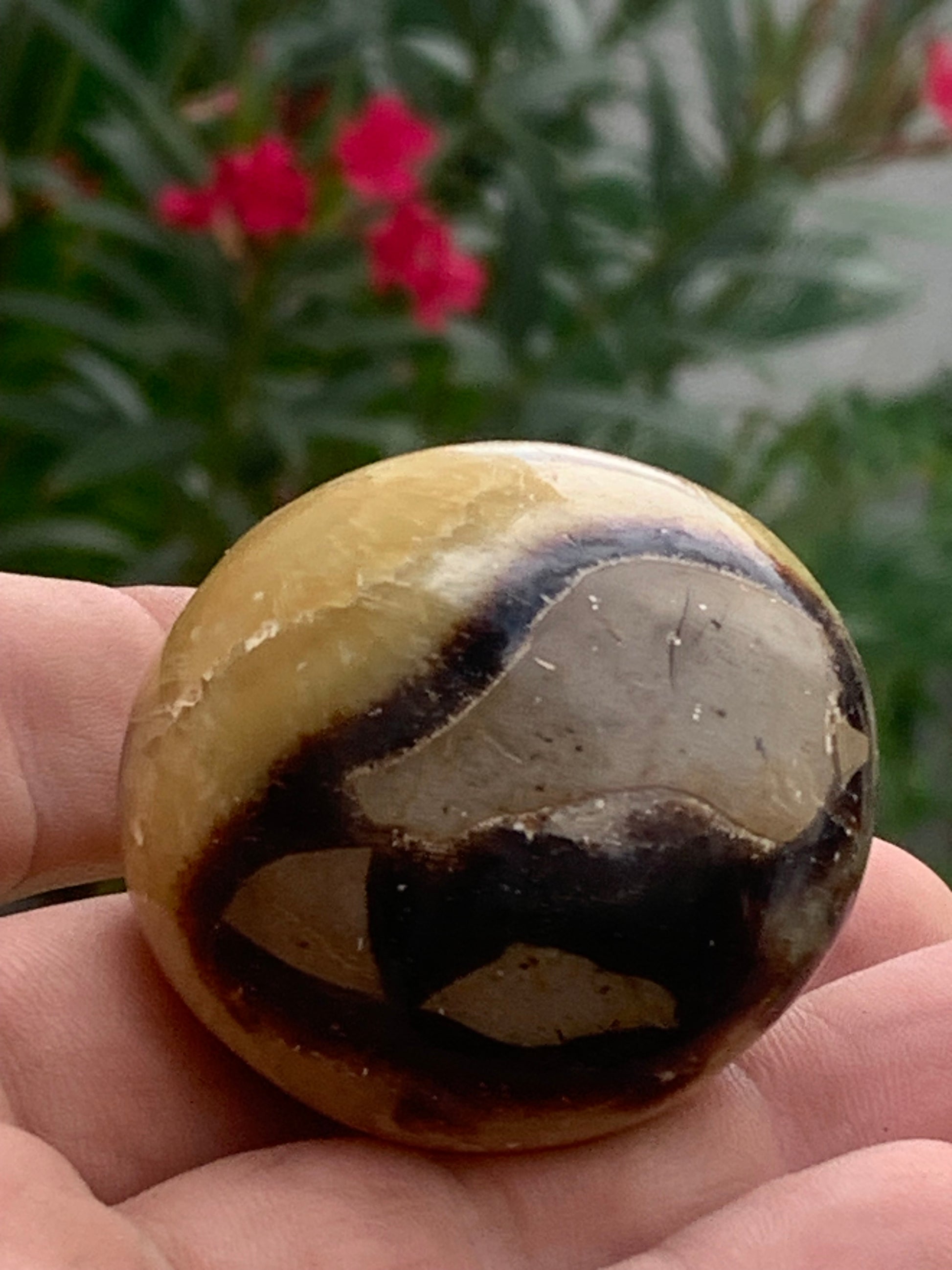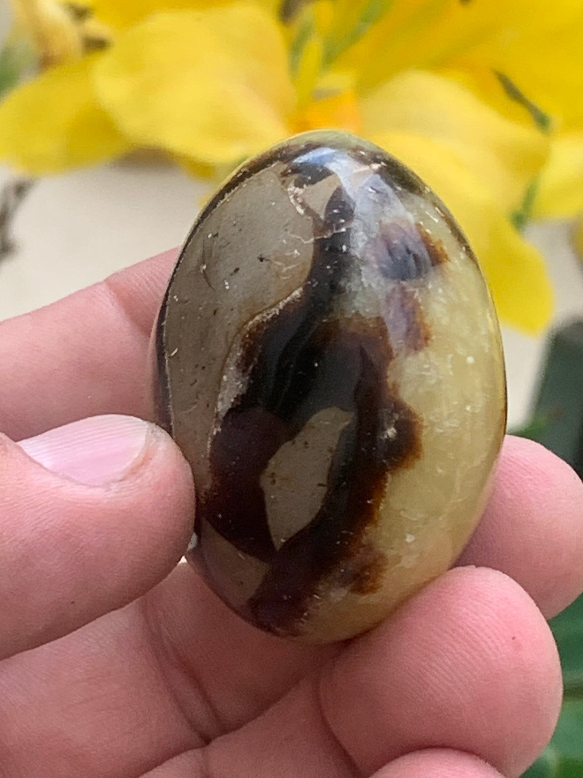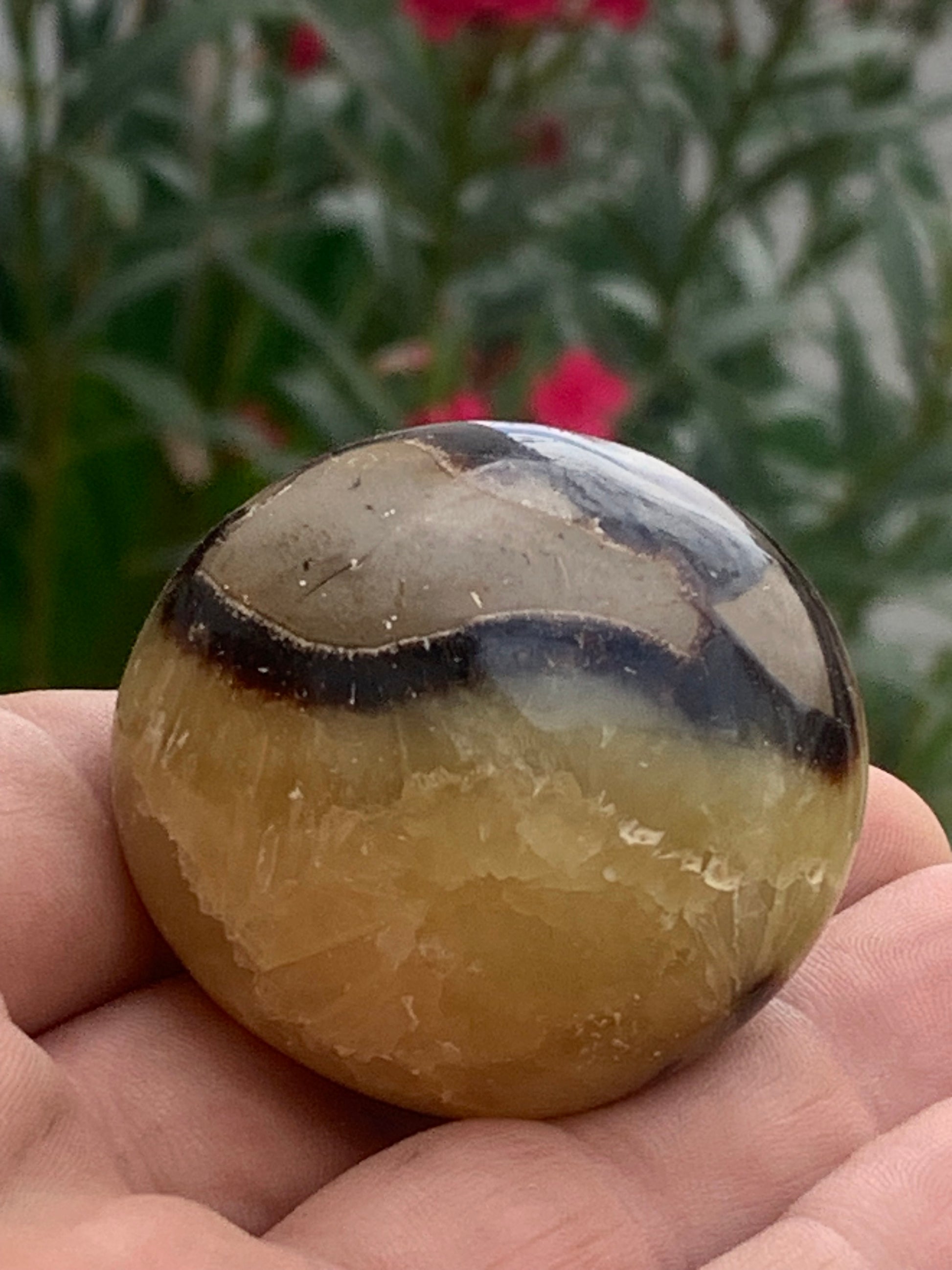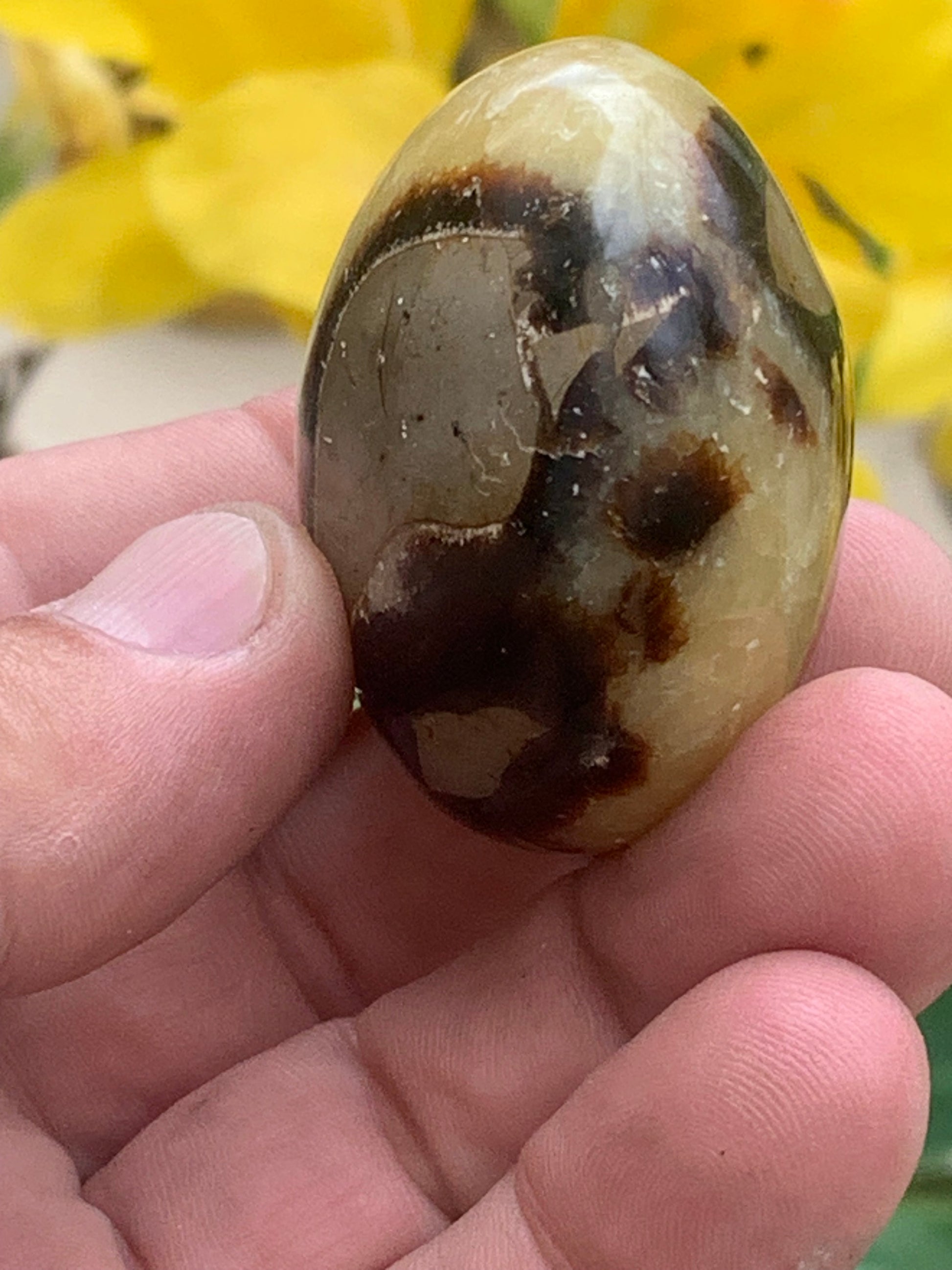 Septaria, spécimen roulée de 47mm de diamètre x 32 - 94,7 gr. Superbe galet rond pour vos collections, expositions...