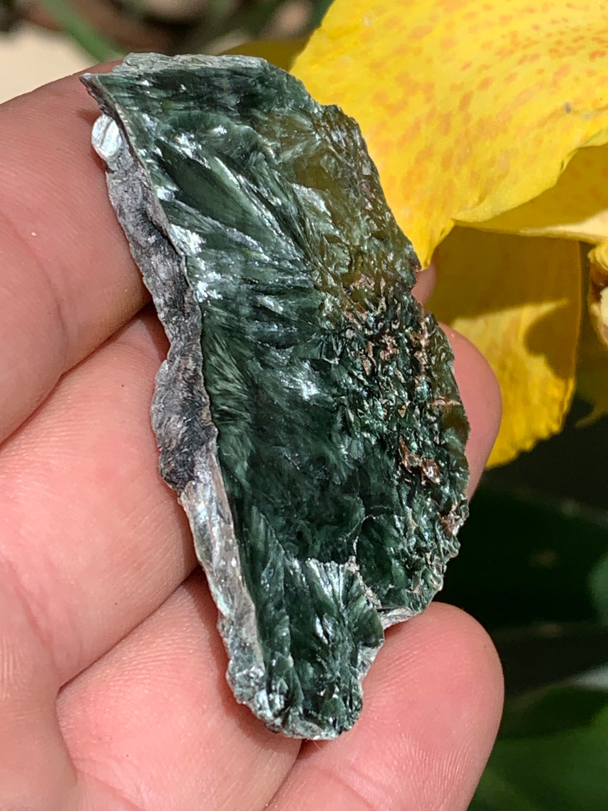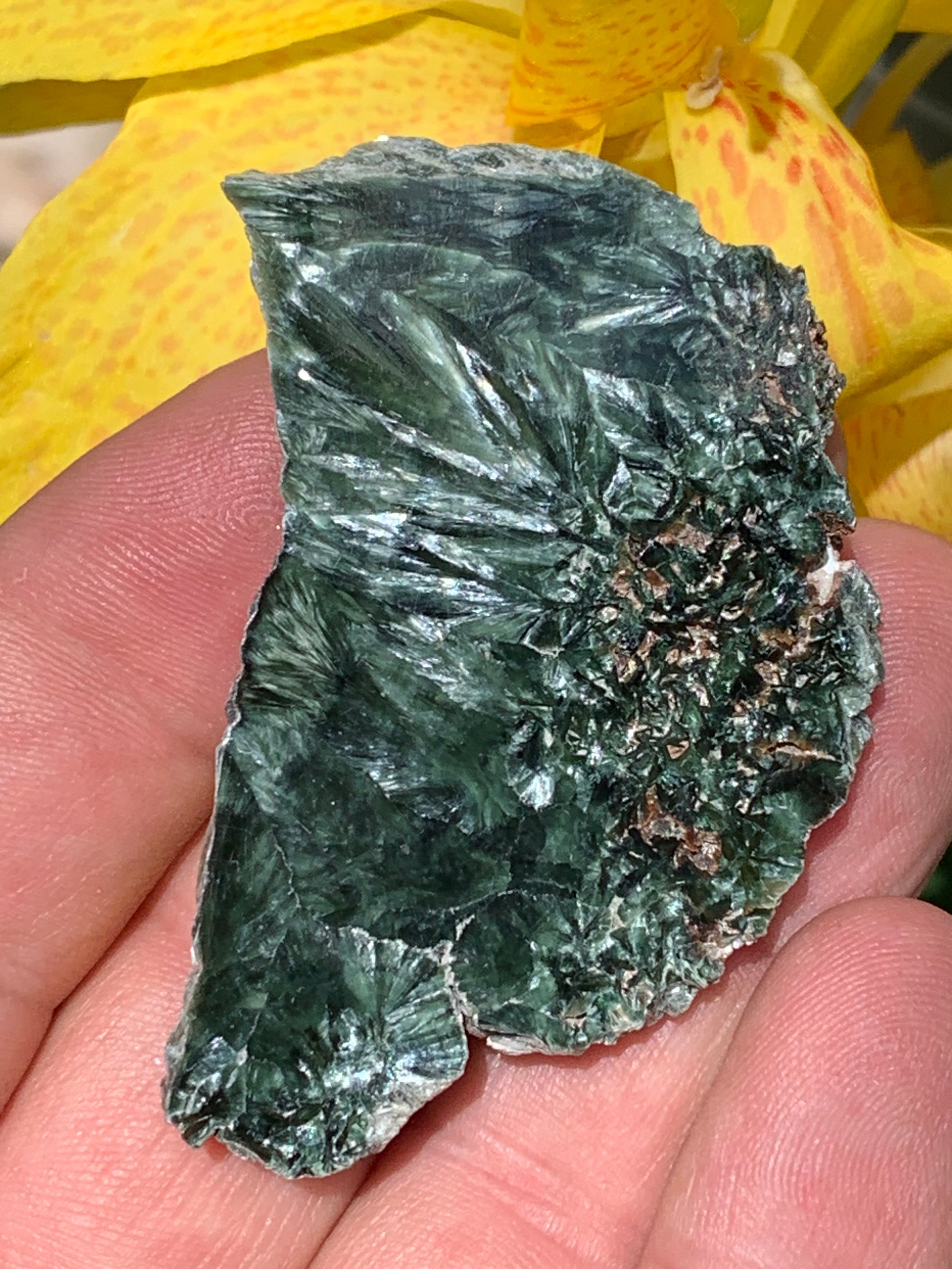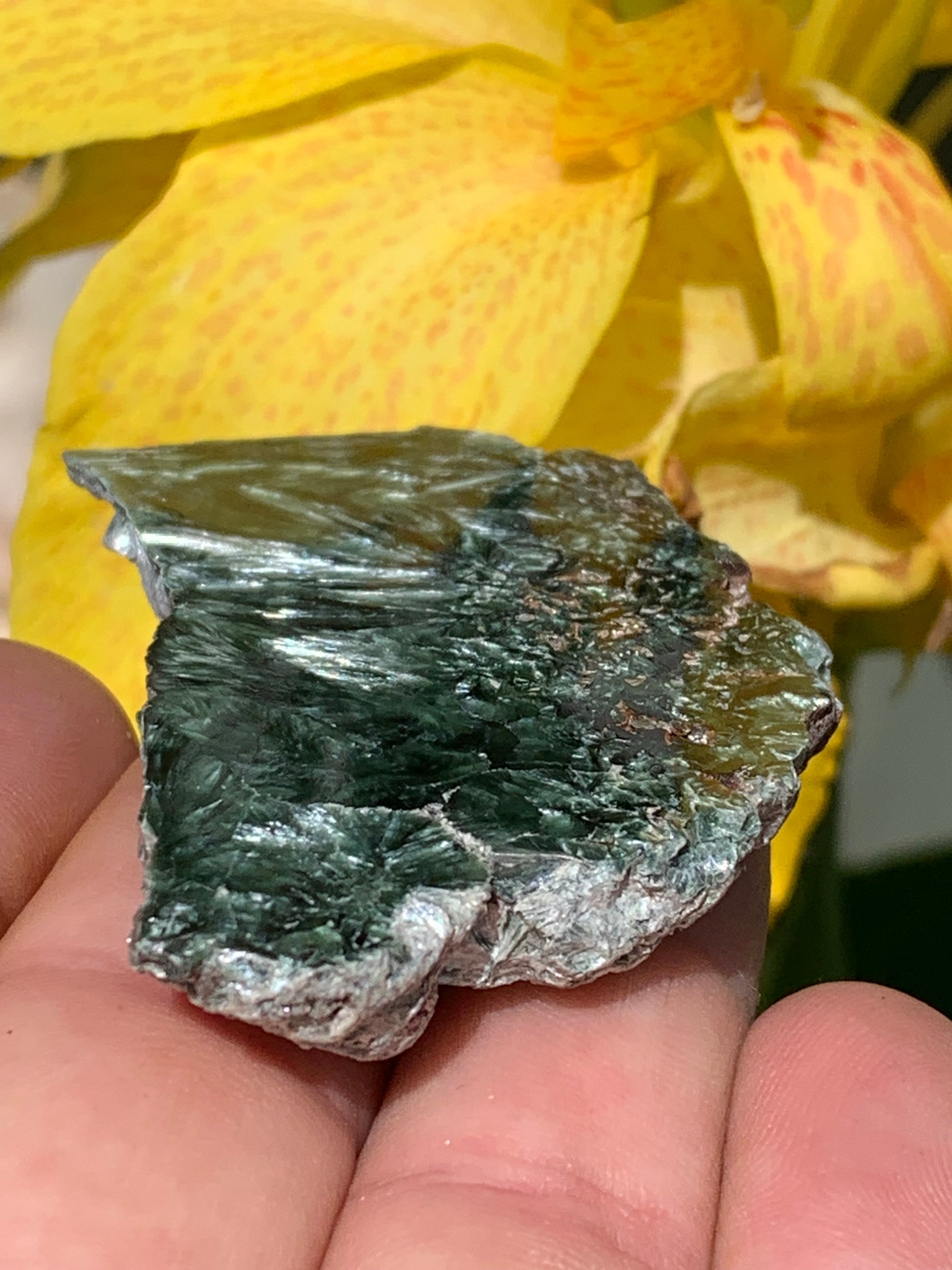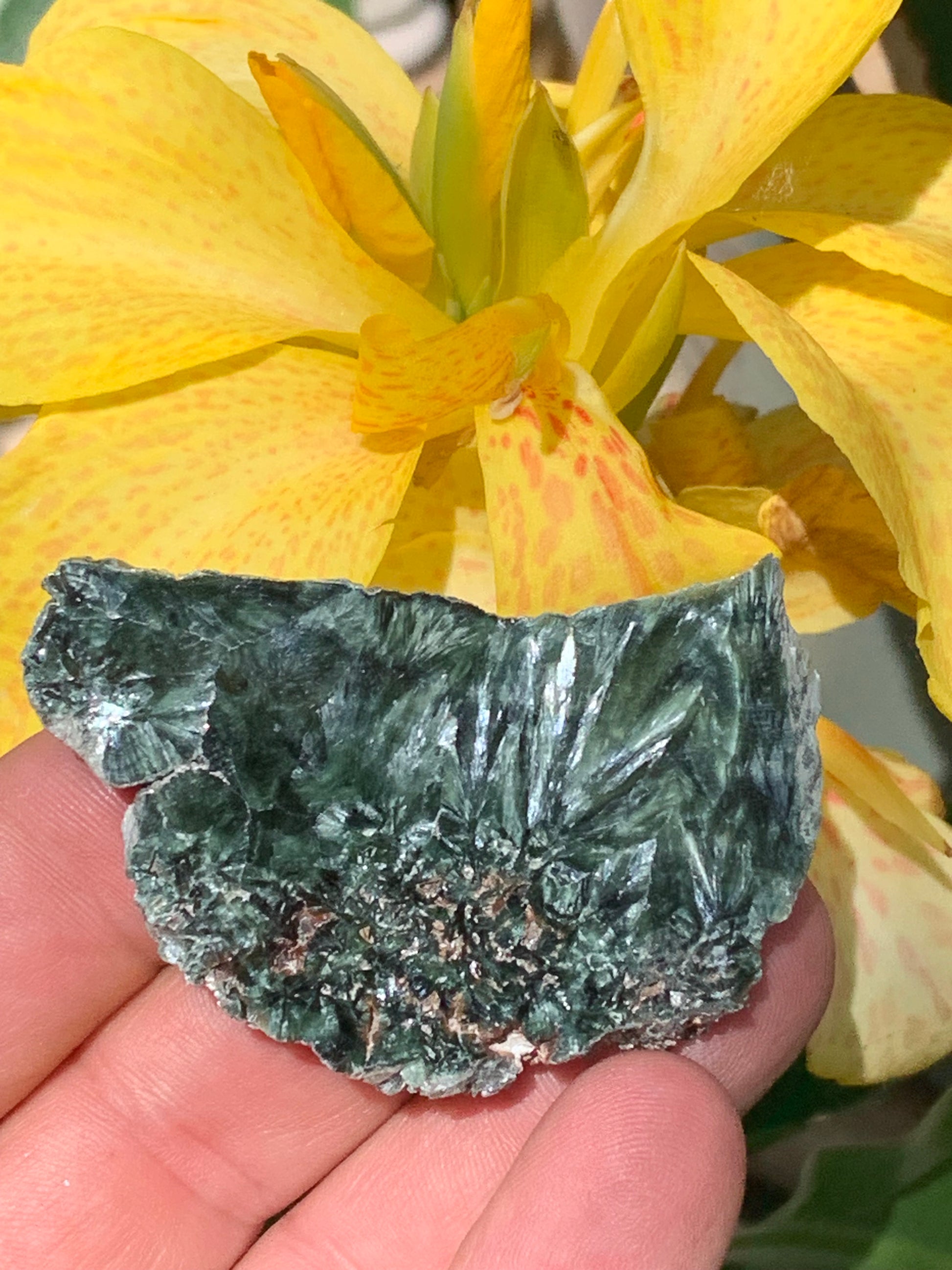 Petite histoire / particularité | La Séraphinite, nommée d’après les Séraphins à cause de ses motifs plumeux, est exclusivement trouvée en Sibérie. Elle est très prisée en lithothérapie pour élever la conscience spirituelle, renforcer la connexion avec les guides et stimuler l’énergie du cœur. |