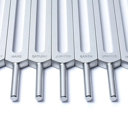 Chaque diapason est réglé pour correspondre à la fréquence de chaque planète, Soleil et Lune. Chaque diapason peut apporter des avantages de différentes manières. Leur potentiel de guérison est incroyable, non seulement pour les humains, mais pour toutes les formes de vie.