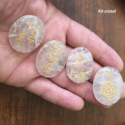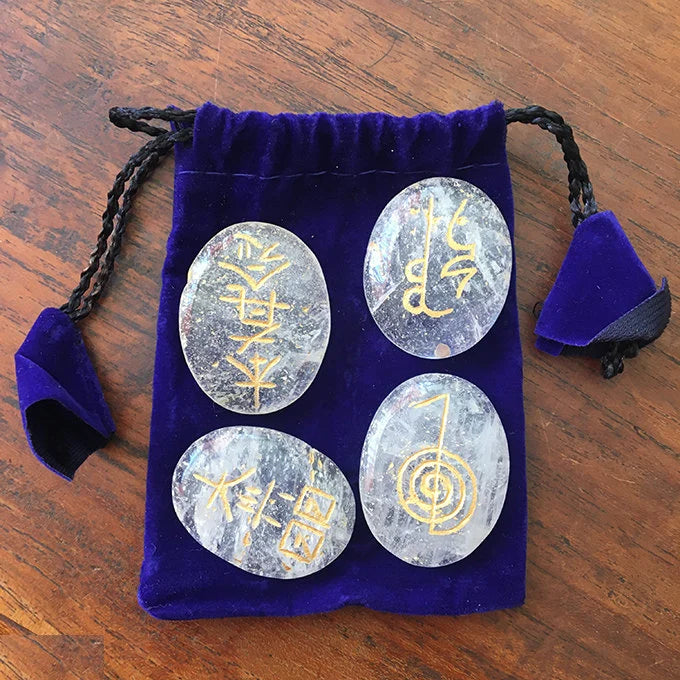 🕯️ Apportez harmonie et énergie à votre quotidien avec ce magnifique set de 4 pierres naturelles gravées des symboles Reiki en doré. Idéales pour la lithothérapie, les séances de méditation, ou simplement comme objet spirituel de décoration.